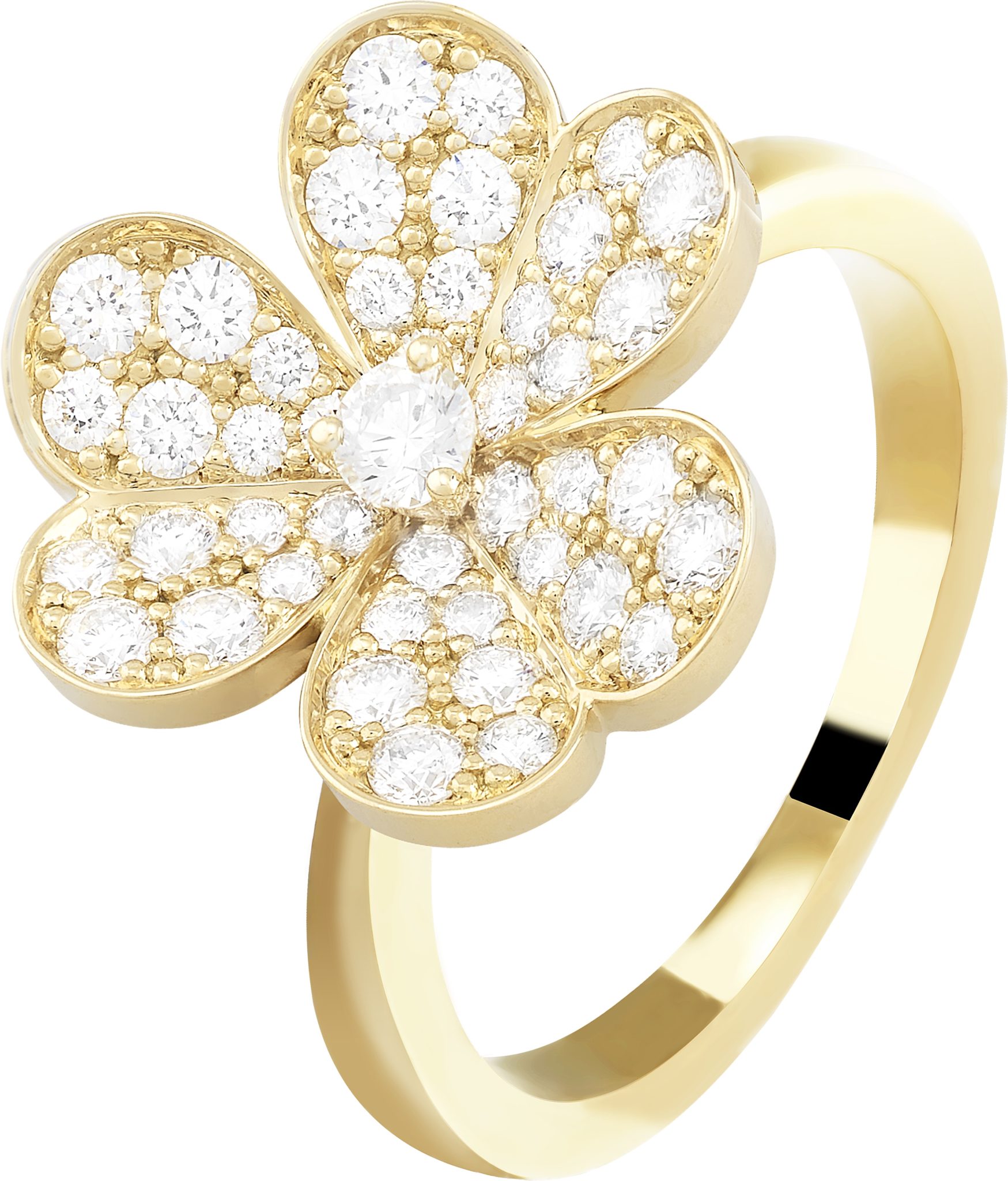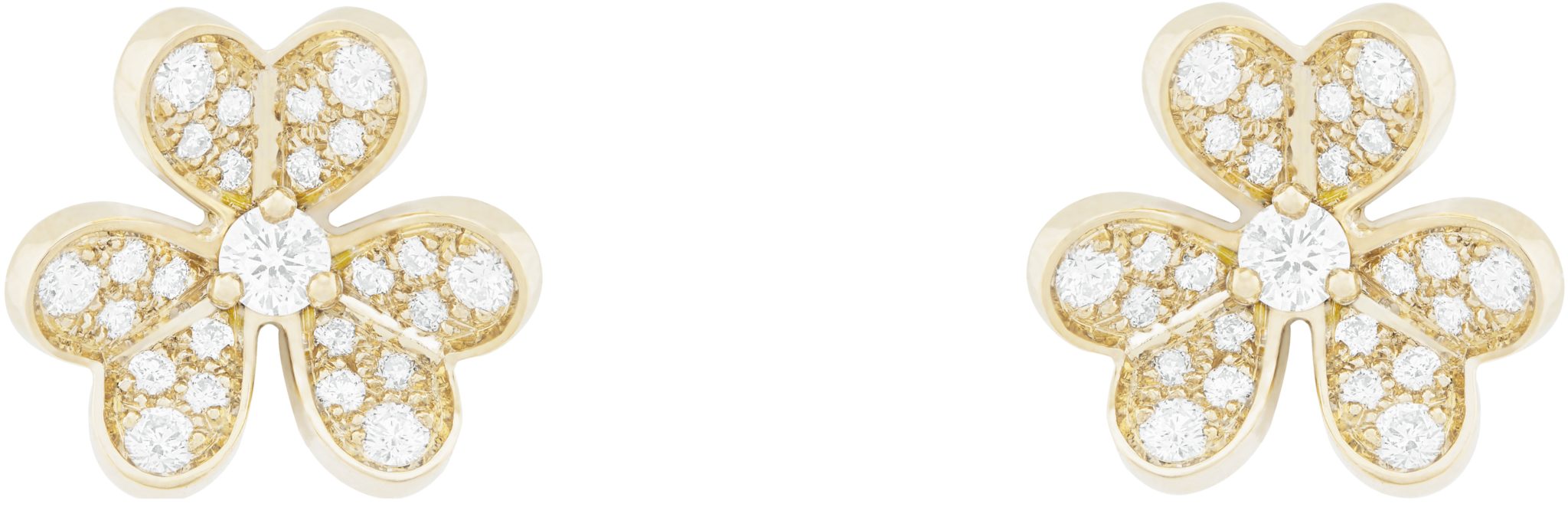 Van Cleef & Arpels celebrates the coming of spring with a bloom of graphic flowers, seemingly quivering in the breeze. Blending miniature motifs and generous flowers, mirror polish and dazzling pavement, nine never-before-seen creations in yellow gold enhance the Frivole™ collection. The shimmering radiance of their corollas brings sunshine to the skin, in honor of this season so dear to the House.