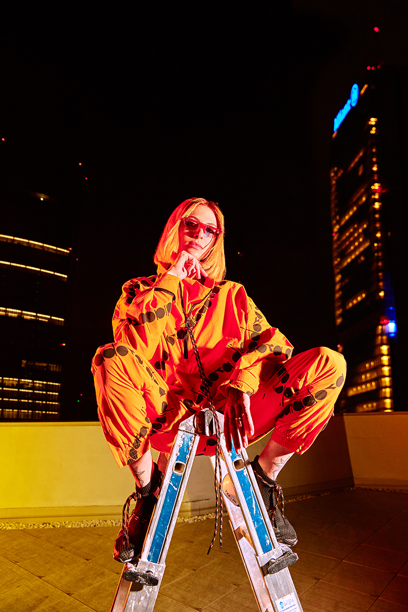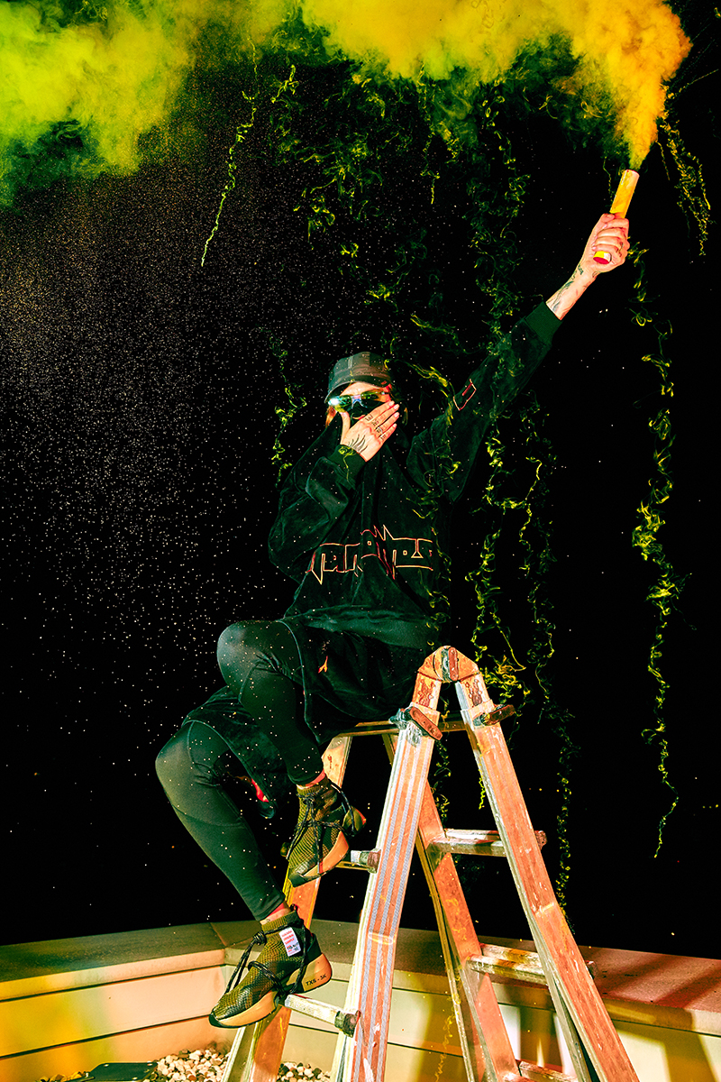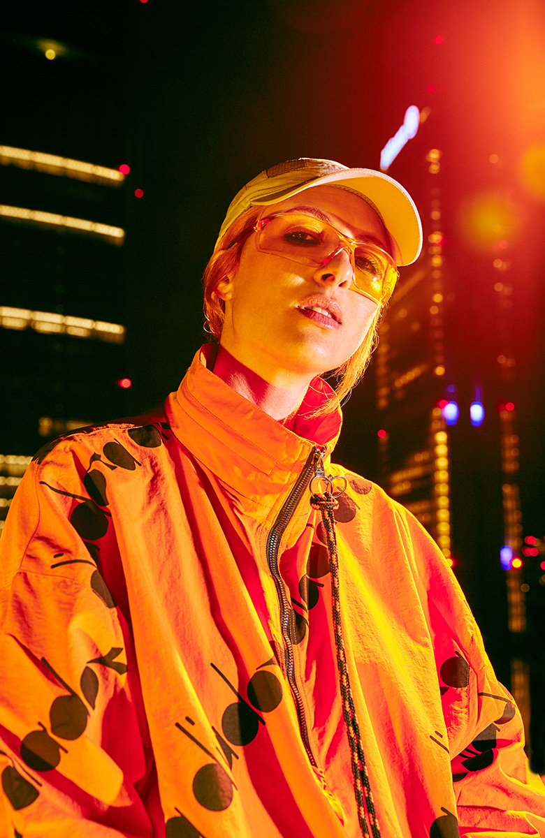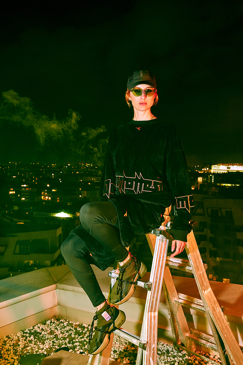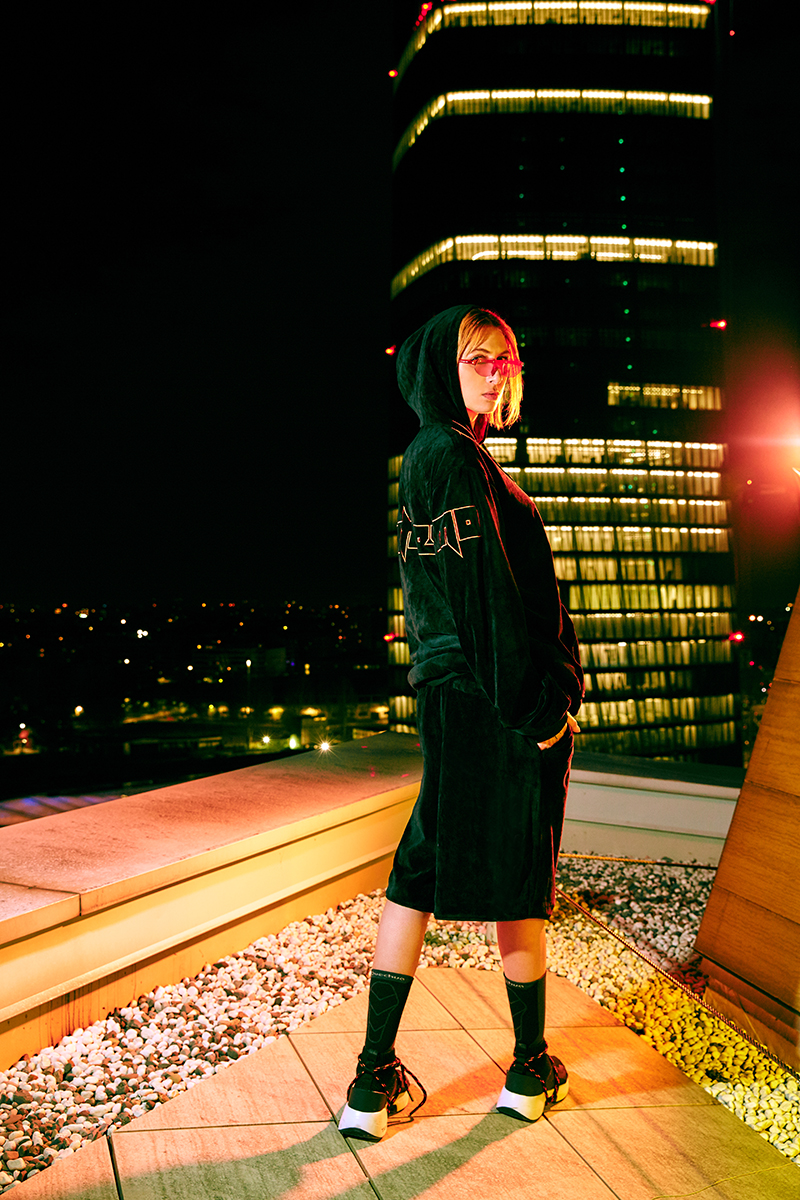 The unisex collection, worn by Italian artist Ema Stockholm, draws its inspiration from the best of 90’s streetwear: oversized tracksuits, hoodies, all-over logos, technical materials and sneakers.