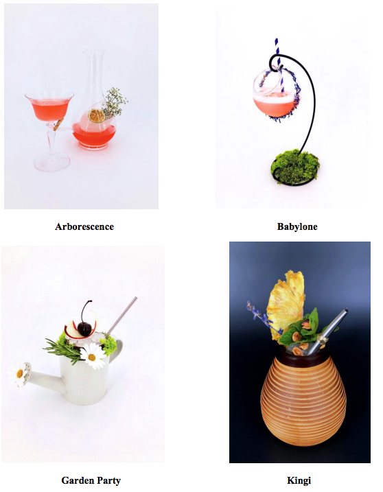 On the menu of this new and innovative collection: Garden Party and its calvados with rosemary, cherry, peach and rhubarb; Babylon, a clever blend of jasmine-infused pisco, homemade combawa syrup, yuzu and fresh grapes; theArborescence, a blend of gin, kumquat, bergamot, sparkling sake and absinthe; the Kingi, a rum blend with anisette, lime, lavender bitter and orgeat; and the Régalia, a harmony of pepper- and tonka-bean-infused vodka, hysteria liqueur and vanilla syrup.