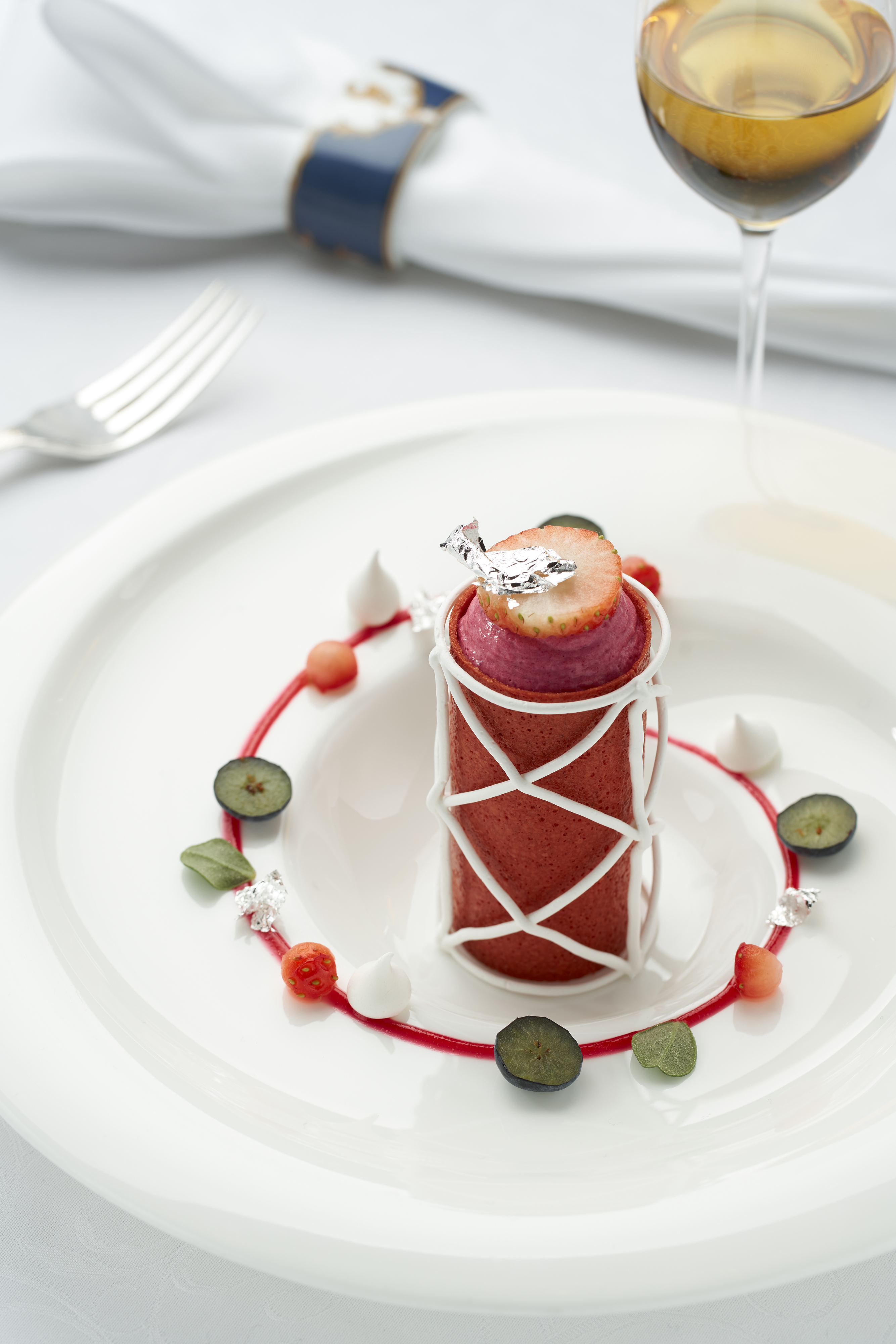 The Tubemeringuéwith strawberries, a light red fruit cream and a herb sorbet;