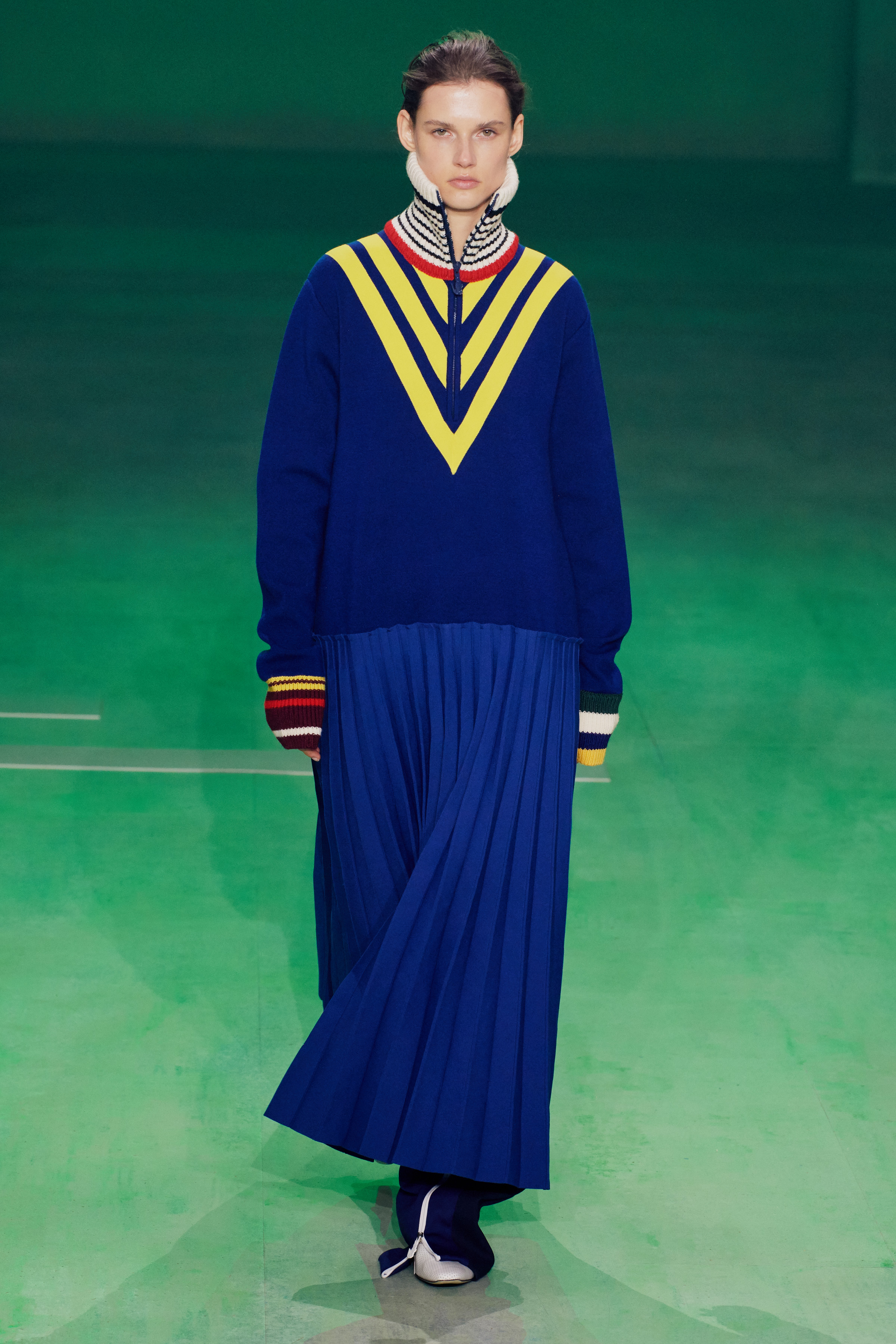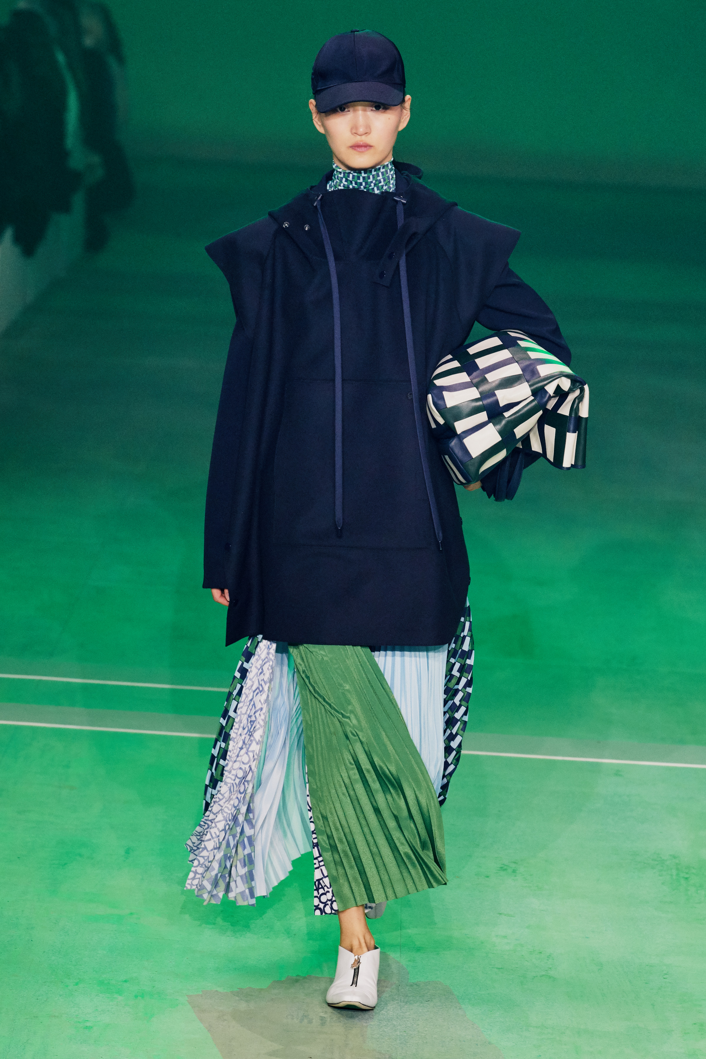 As both champion and inventor, René carved out a prodigious legacy far beyond the court. His pioneering spirit and innate personal style form the building blocks of this wardrobe: garments engineered for performance and imbued with desire. Approaching Lacoste as a wellspring of iconography, the Autumn Winter 2019 collection revisits the bygone elegance of sport and its relevance in contemporary society. Movement of the body and movement on the body are at the forefront of research and development into shape and fabrication – unlocking pragmatic solutions for dressing that surpass their apparent simplicity.