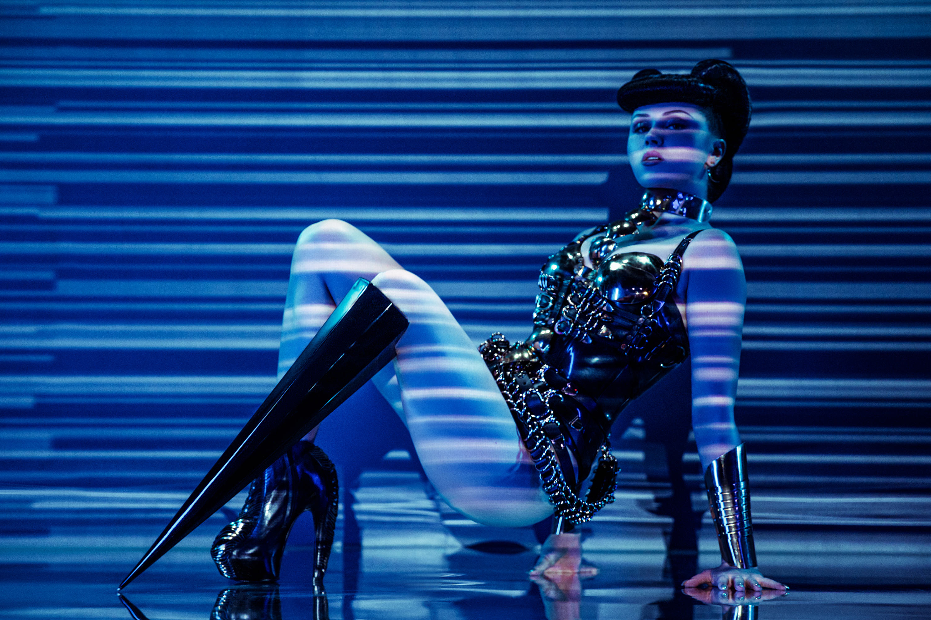 Today, she is the first bionic Guest Star in the history of the famous Parisian cabaret. An icon of a new genre, both different and astonishing, she was chosen by Andrée Deissenberg, Crazy Horse’s General Manager of Creation and Development and a woman of challenges, to embody on this mythical stage the woman of the future sublimated by technology.