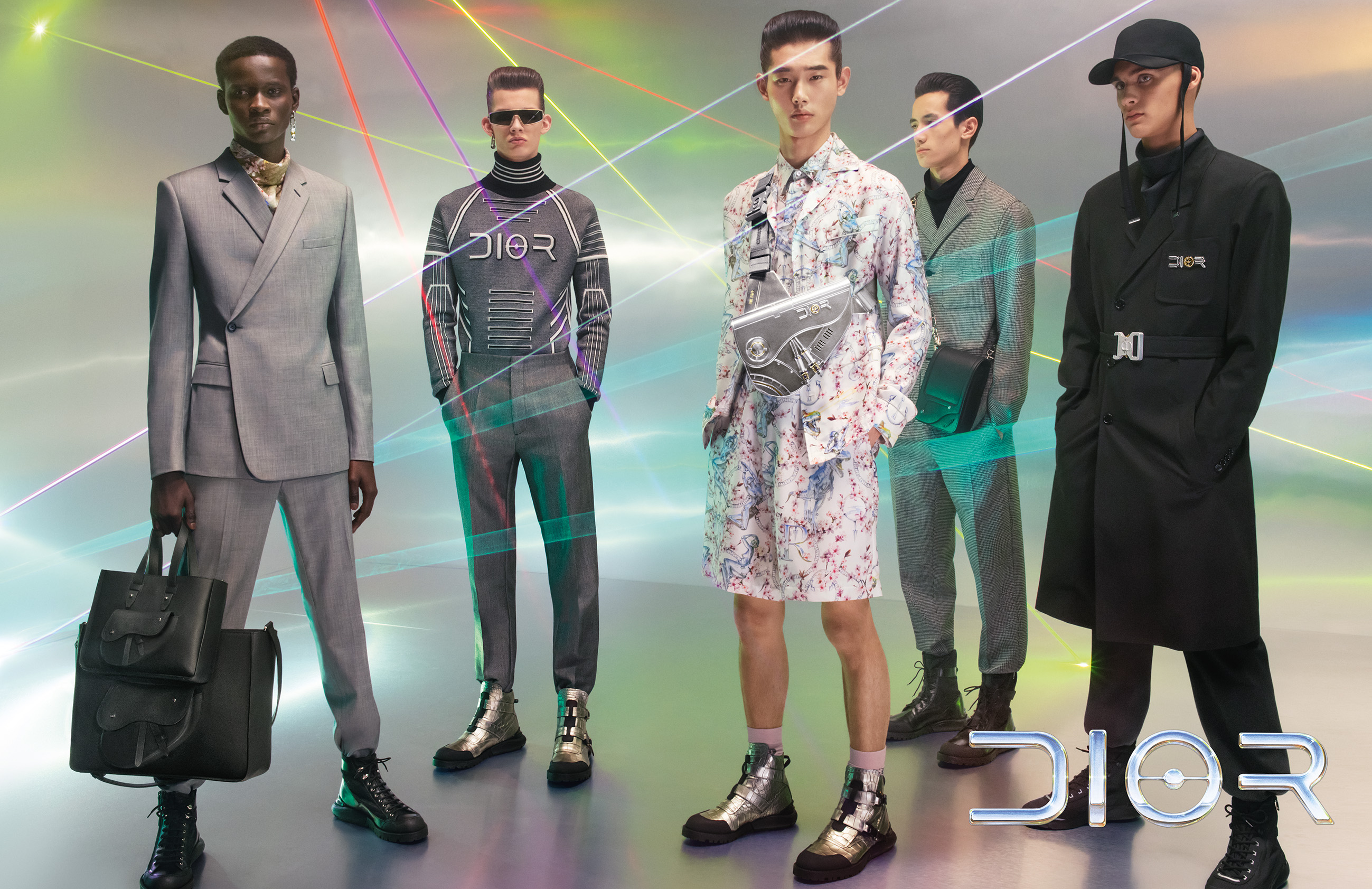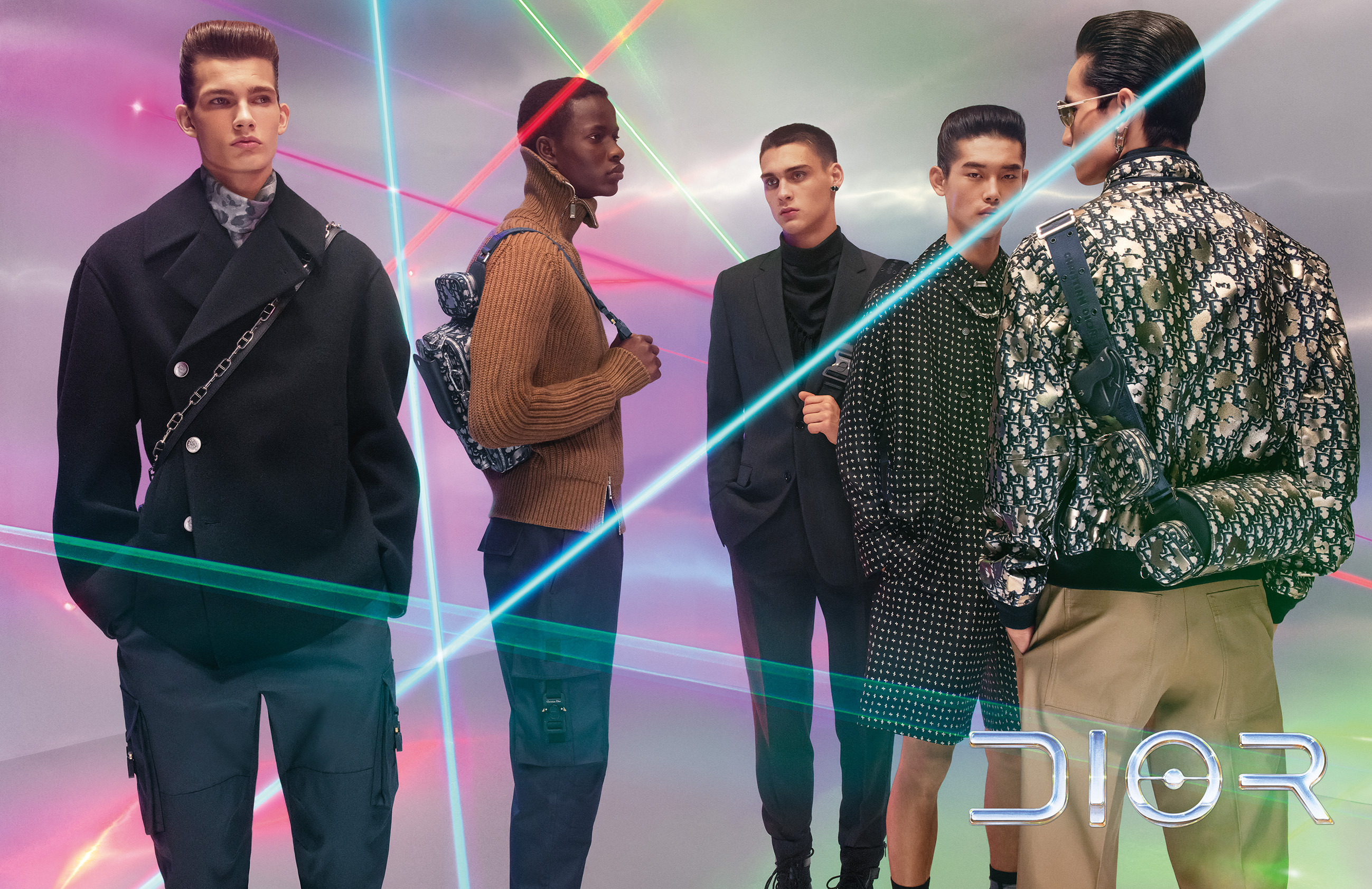 FOR THE NEW CAMPAIGN FEATURING THE PRE-FALL 2019 COLLECTION IMAGINED BY KIM JONES, THE DIOR MAN IS REVEALED UNDER A CONSTELLATION OF LASERS, IN A SERIES OF SHOTS TAKEN BY STEVEN MEISEL. THE HOUSE LOGO, REVISITED BY HAJIME SORAYAMA, IS THE MAGNETIC SIGNATURE, THE JAPANESE ARTIST HAVING COLLABORATED WITH KIM JONES ON BOTH THE COLLECTION AND THE SHOW’S DECOR.