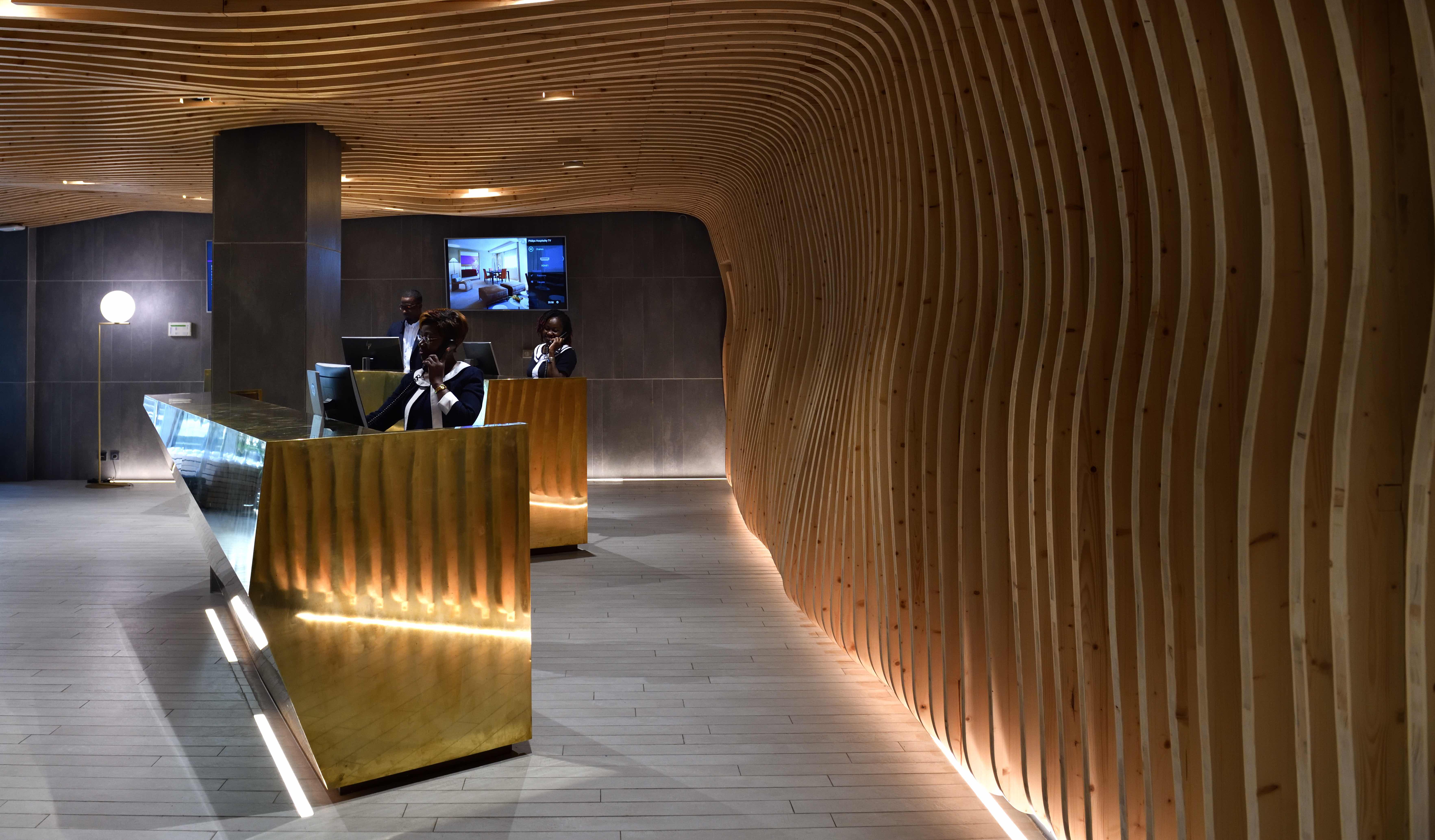 The Pullman Abidjan hotel has just celebrated its inauguration after two years of work and a complete makeover by Leach Rhodes Walker Architects (London). Located in the central Plateau business district, with a breathtaking view over the Ebrié Lagoon and Cocody Bay, the five-star Pullman Abidjan luxury hotel is the symbol of the Ivorian capital’s hotel revival.