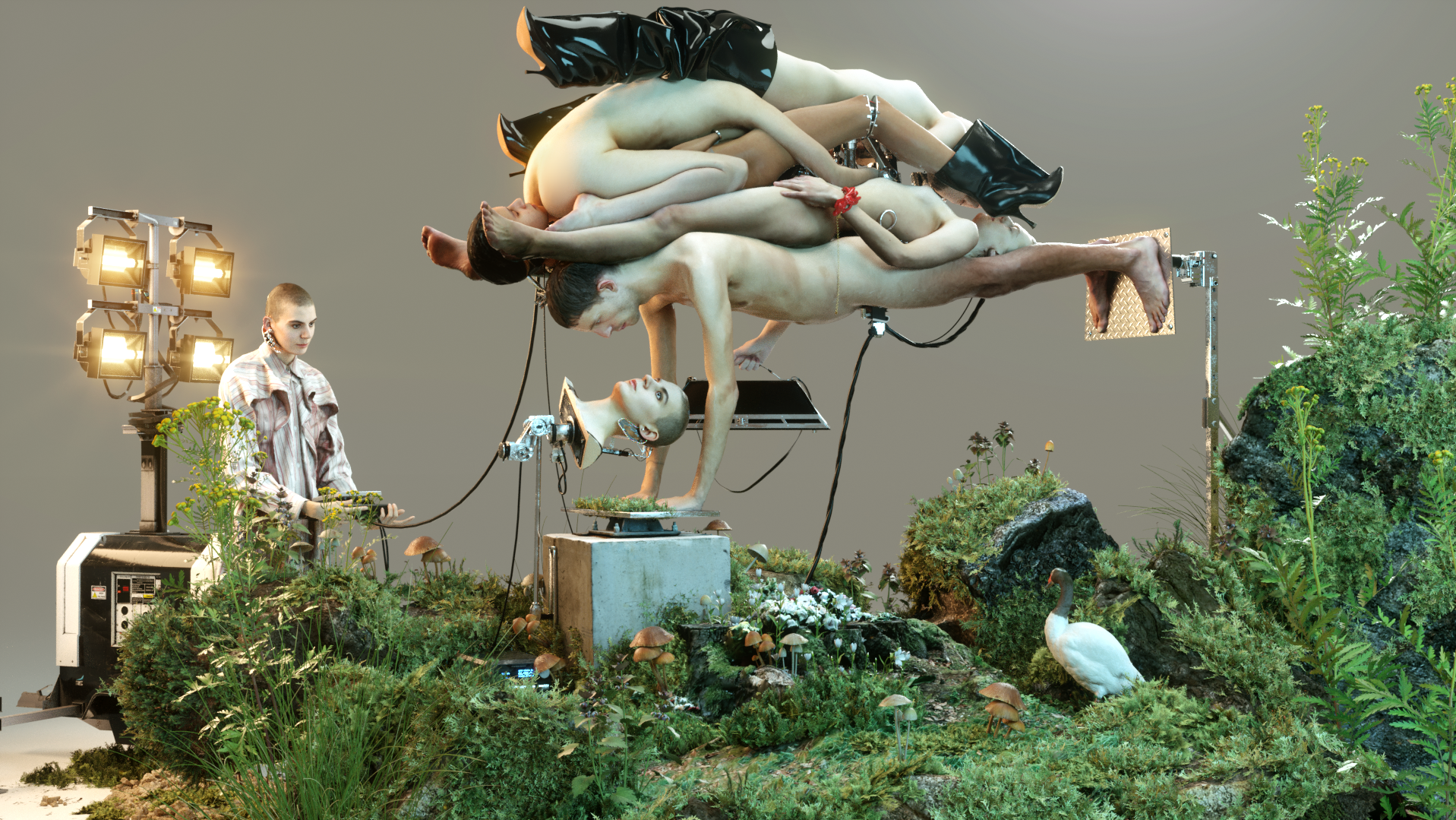 Frederik Heyman’s work is directly inspired by the Kamasutra jewelry in the Y/PROJECT AH19 collection. This season’s accessories campaign explores our desire to overcome our humanity by featuring digital characters whose movements are produced mechanically.