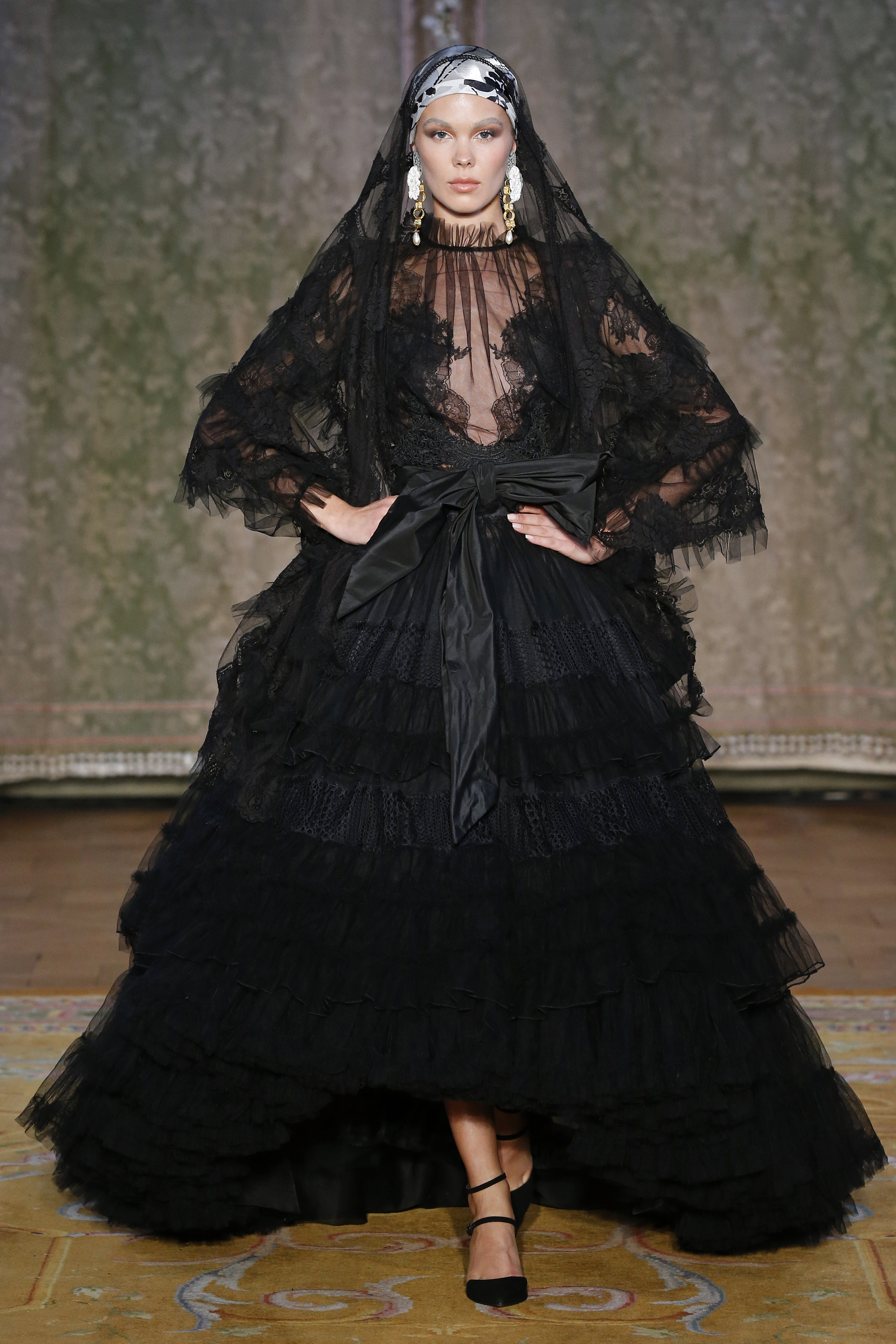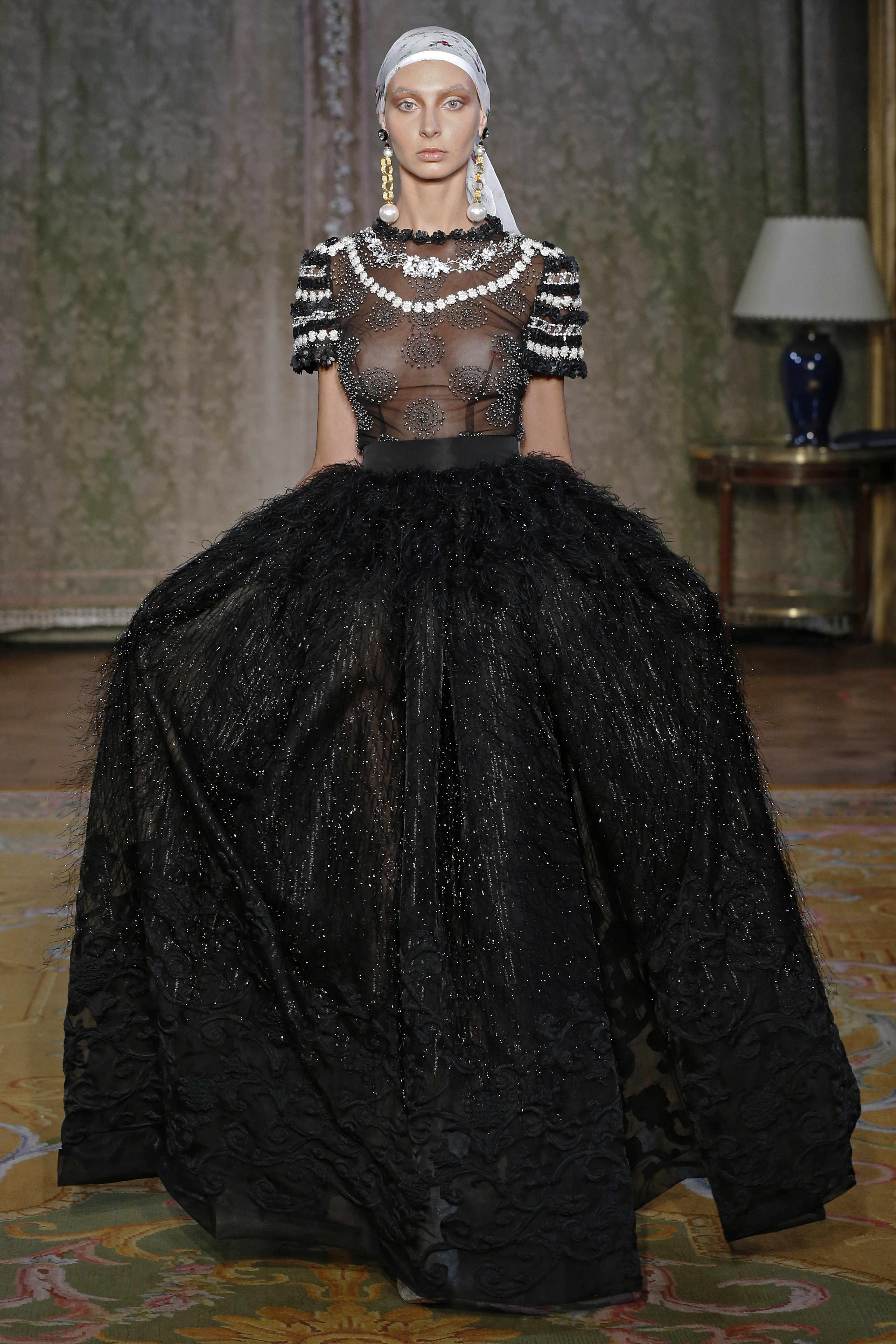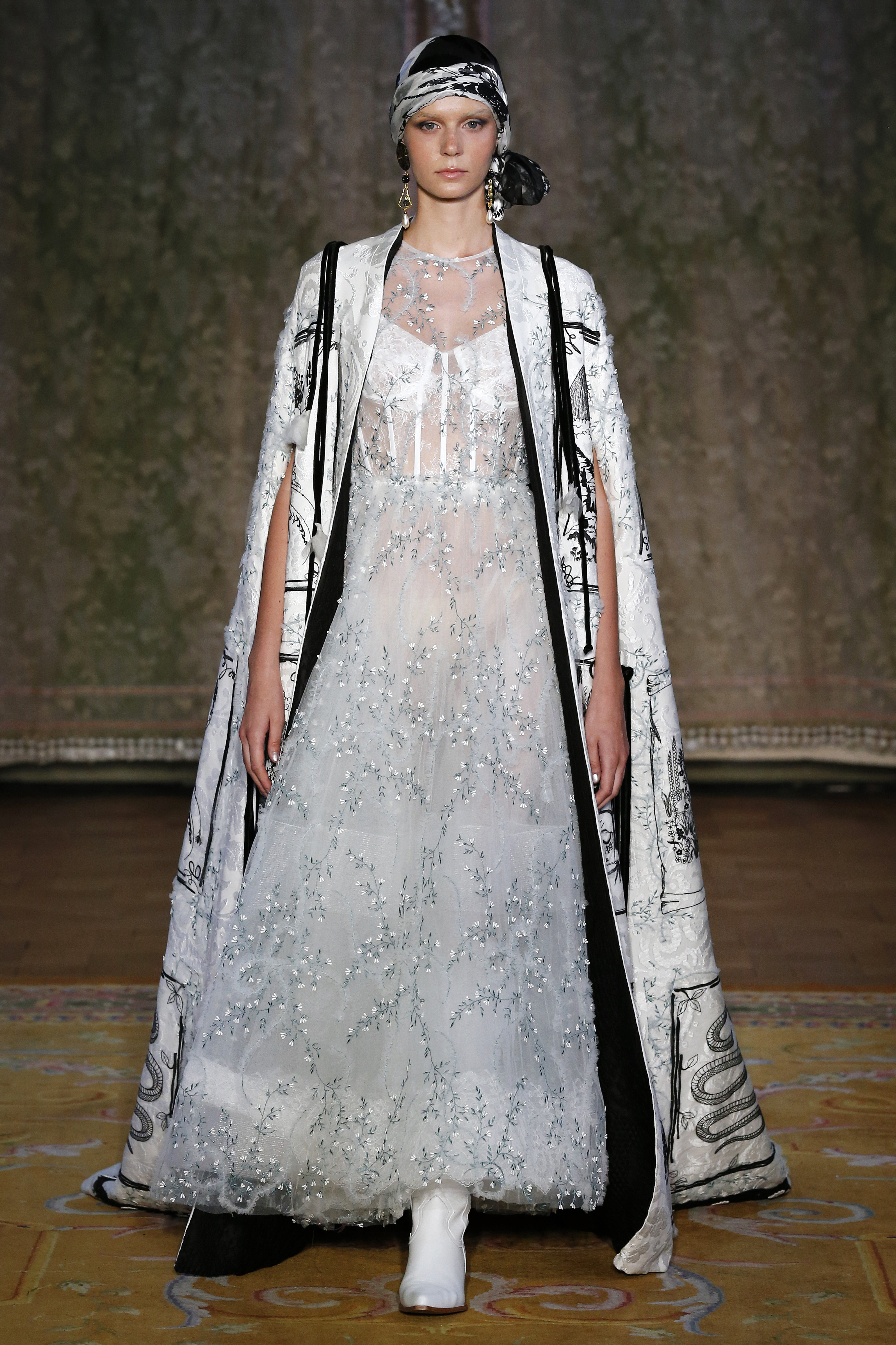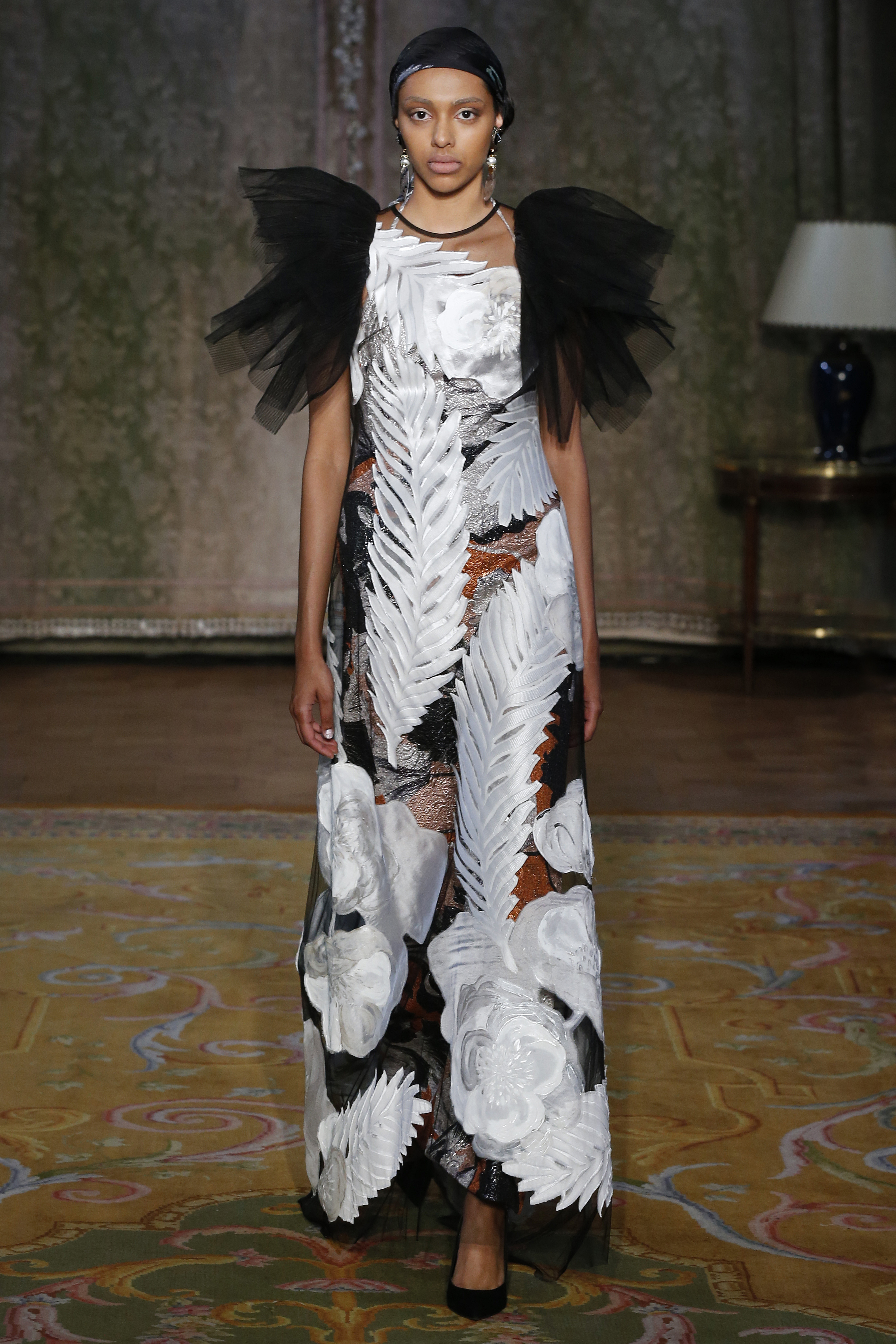 The Couture FW19 collection presents a hidden, dark, darkly romantic spring with a Gothic touch. Inspired by the stories of Edgar Allan Poe and the illustrations by Harry Clarke and Aubrey Beardsley, the colorful characteristic of the brand gives way to a black and white that are fused and contrasted in forms that are reminiscent of the decorative arts of the late nineteenth century and early twentieth.