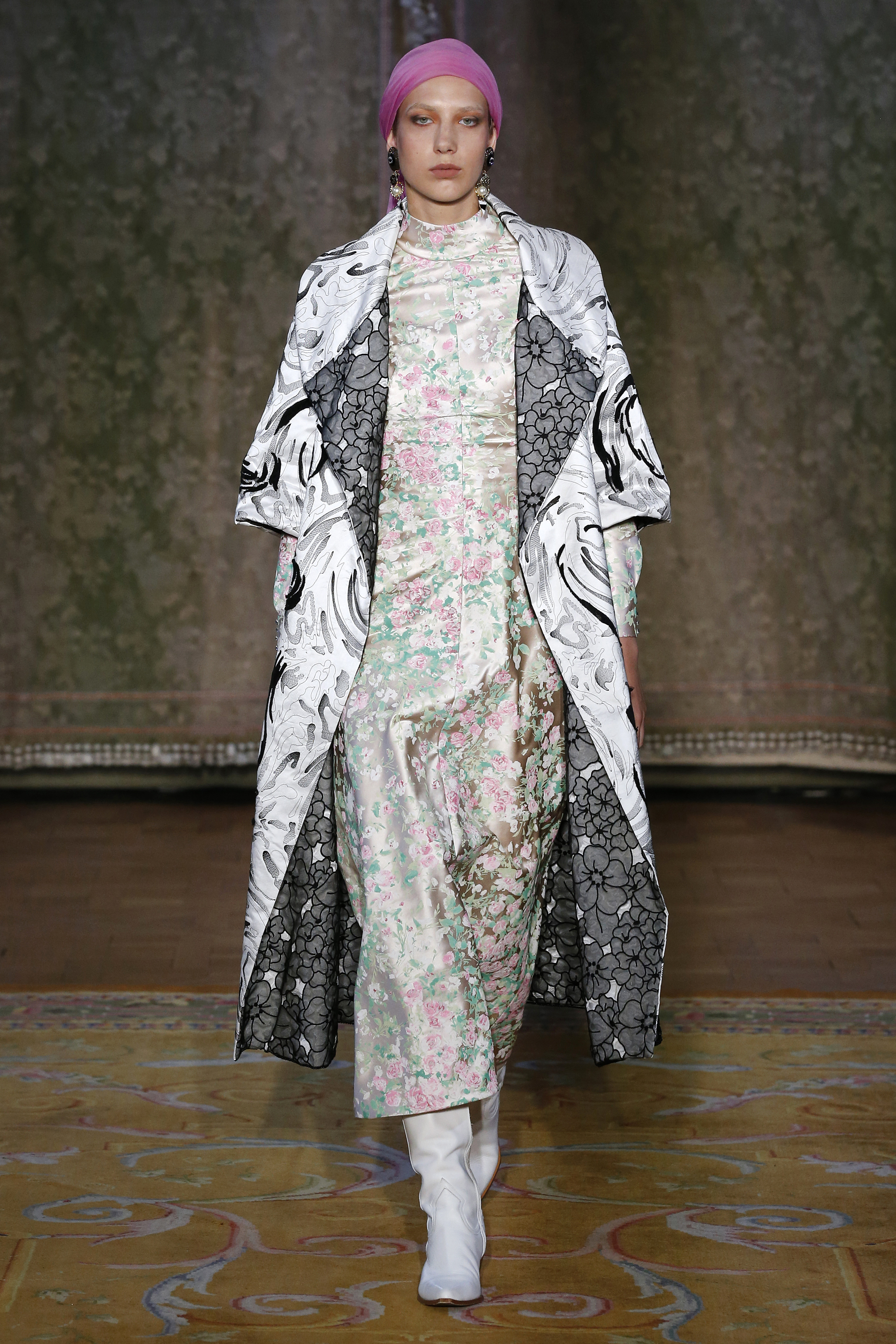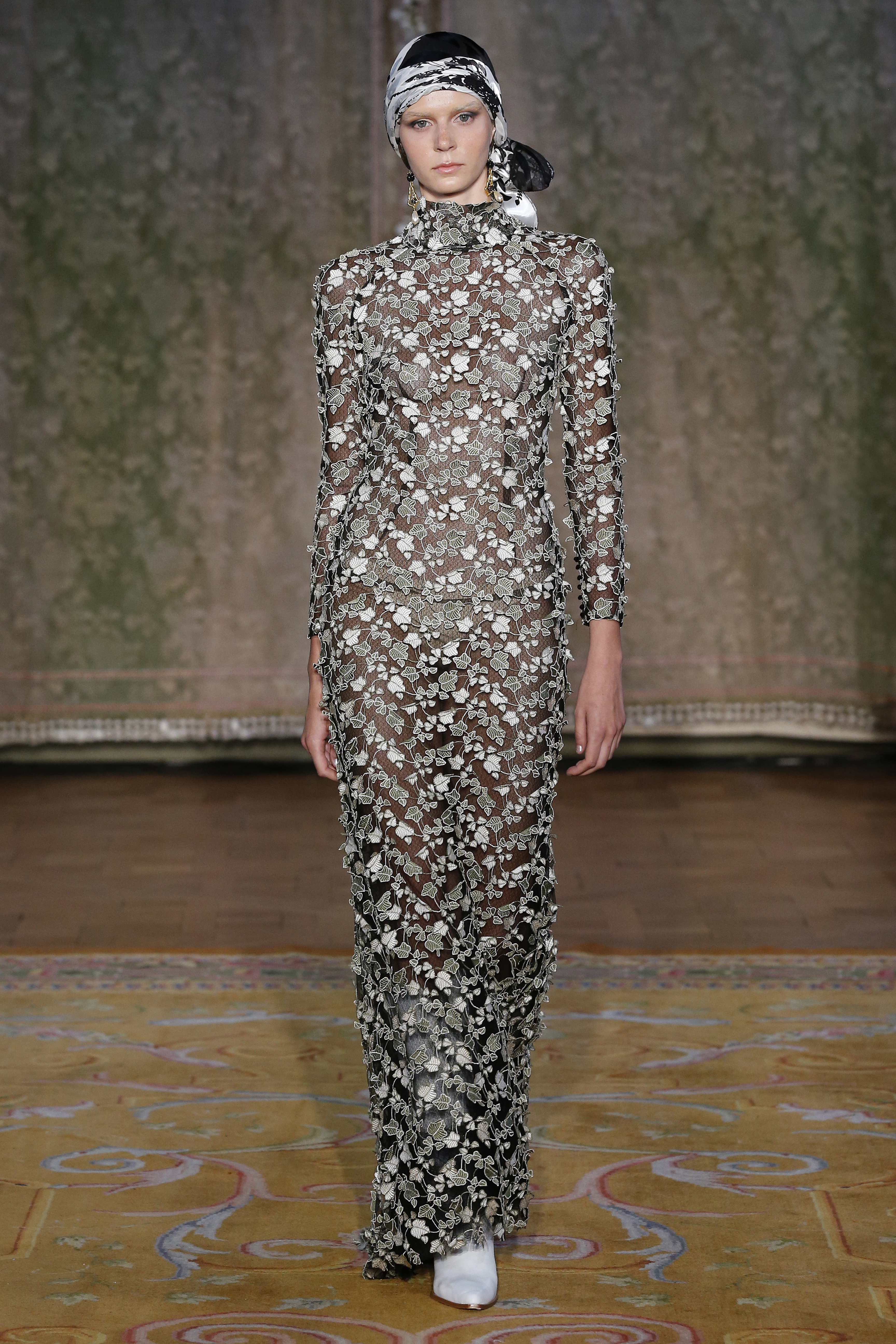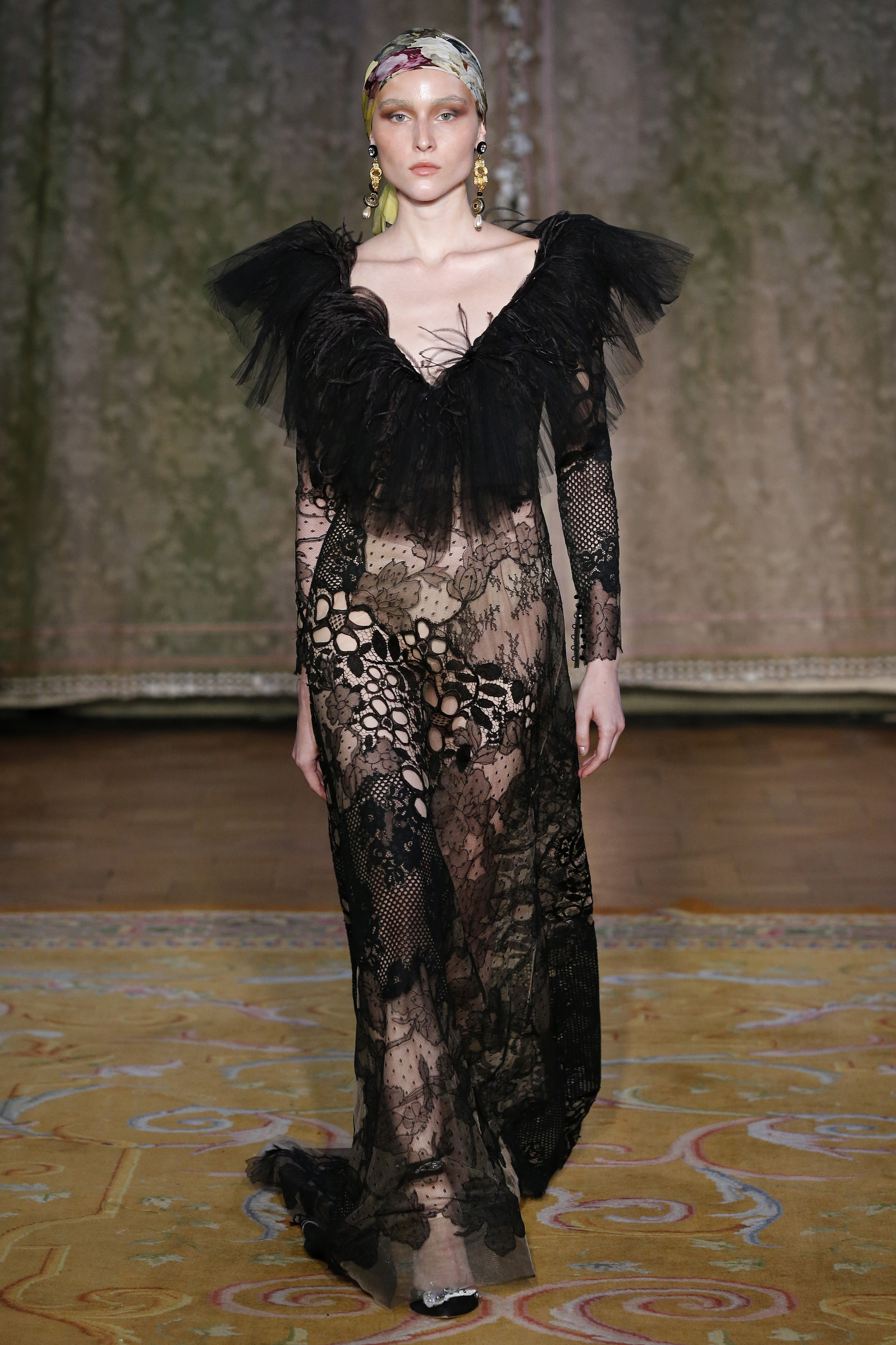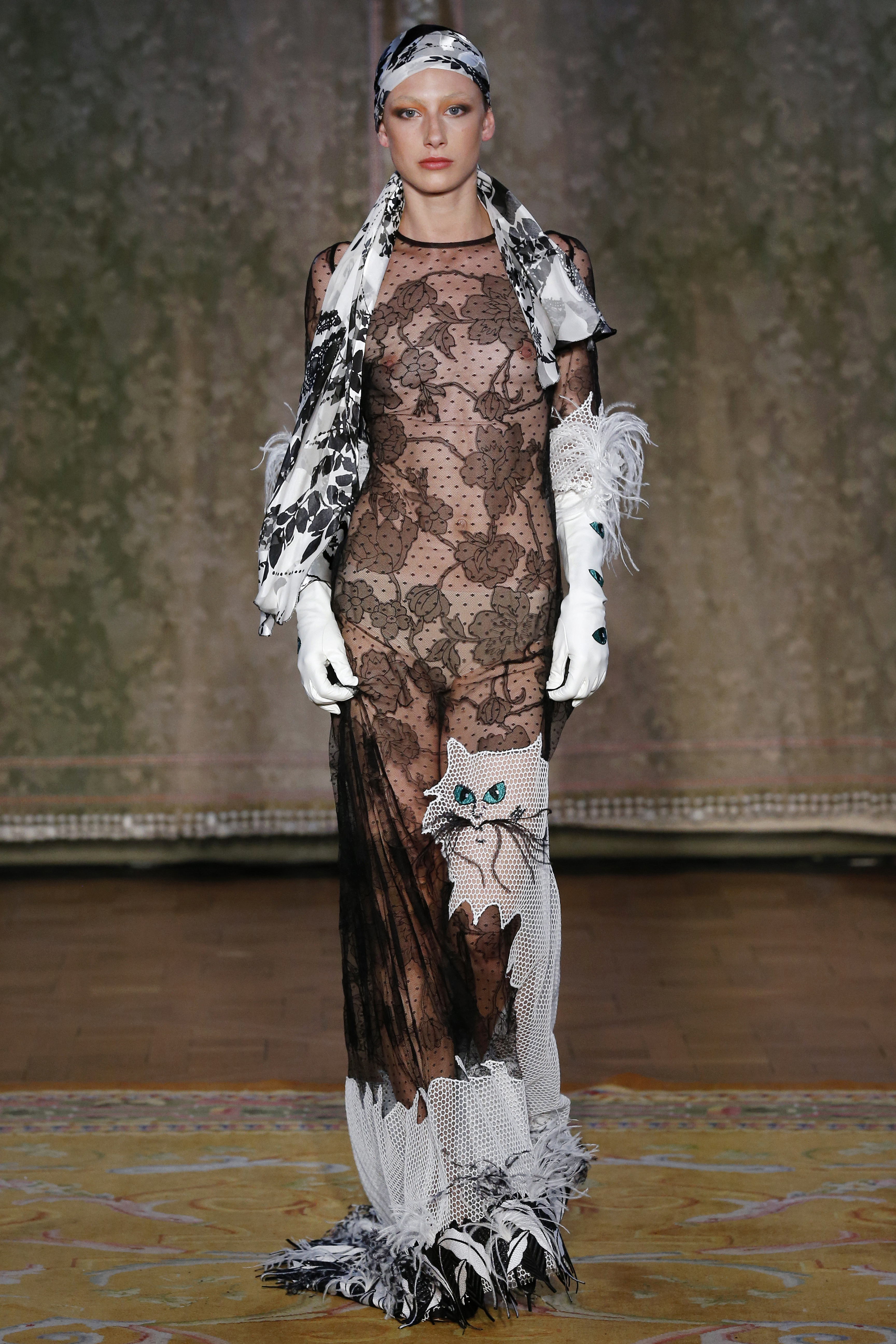 The Couture FW19 collection presents a hidden, dark, darkly romantic spring with a Gothic touch. Inspired by the stories of Edgar Allan Poe and the illustrations by Harry Clarke and Aubrey Beardsley, the colorful characteristic of the brand gives way to a black and white that are fused and contrasted in forms that are reminiscent of the decorative arts of the late nineteenth century and early twentieth.