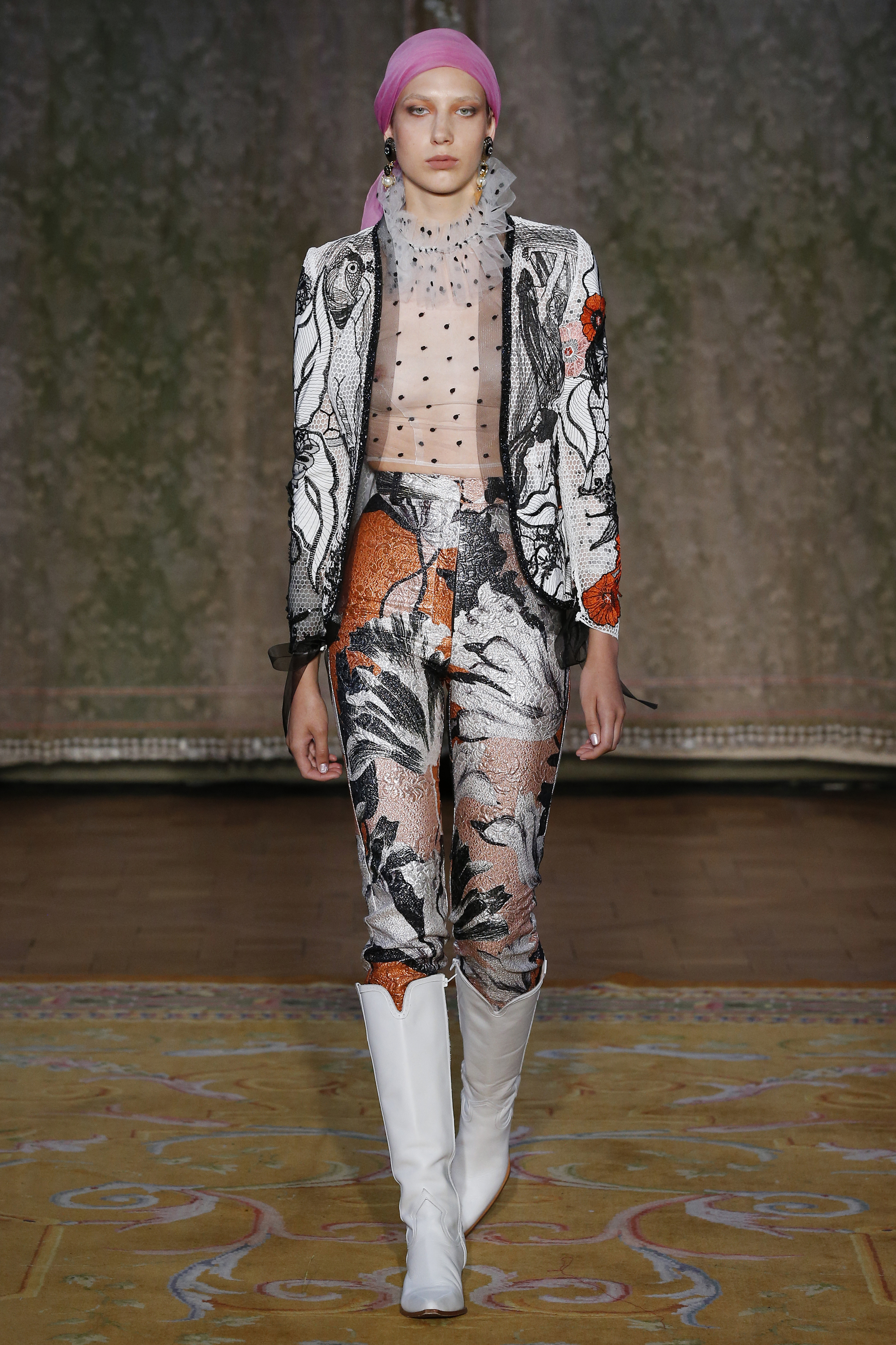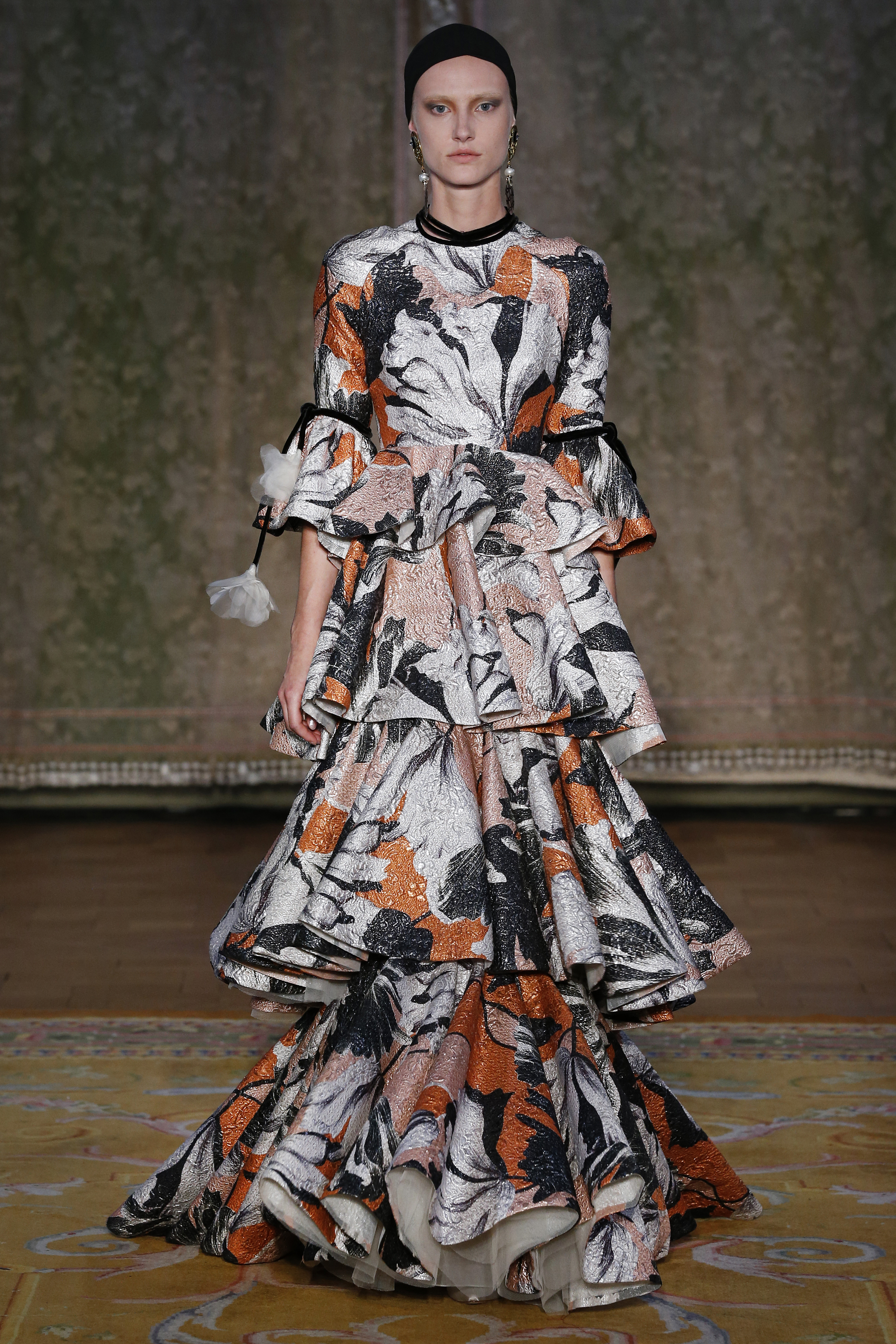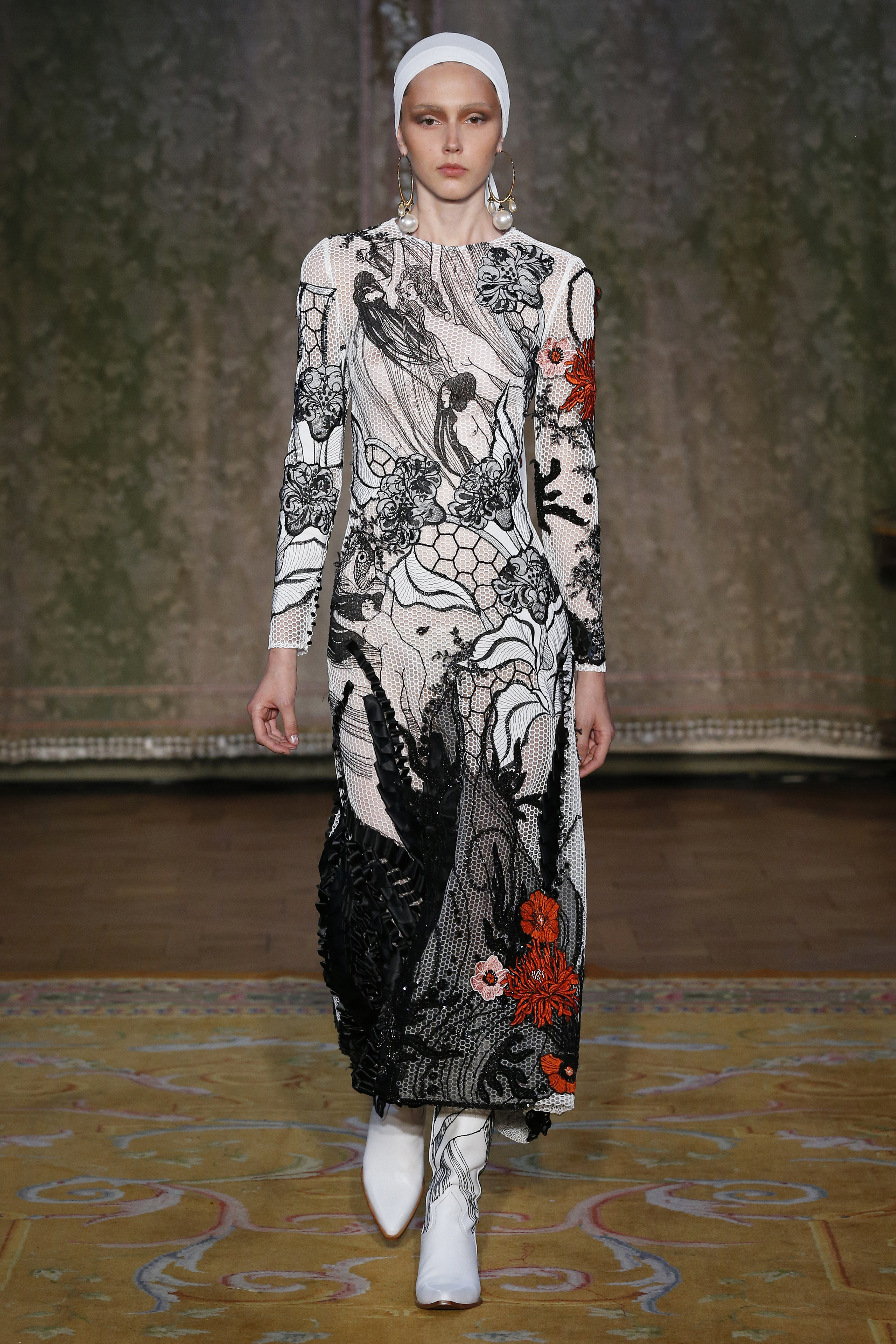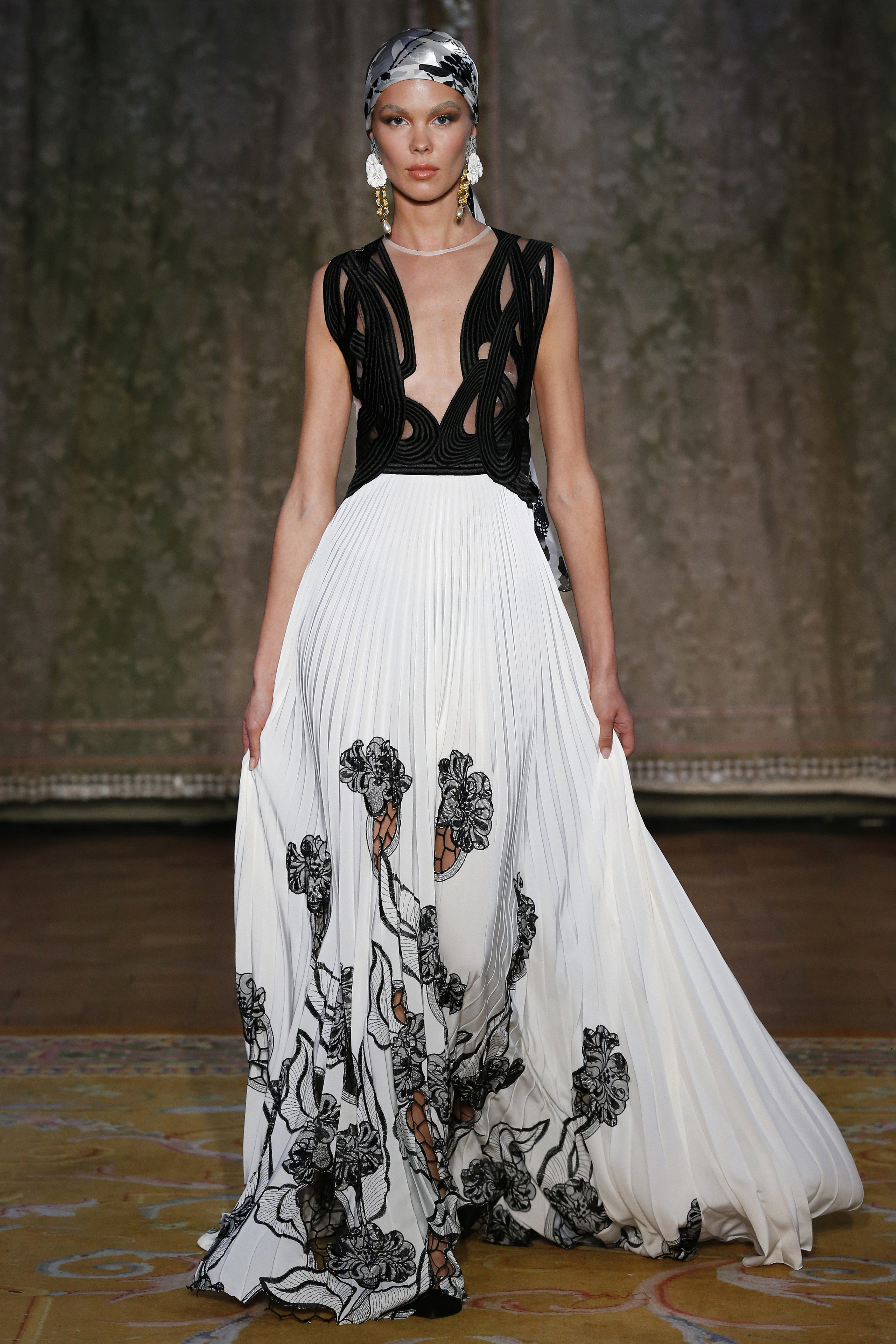The Couture FW19 collection presents a hidden, dark, darkly romantic spring with a Gothic touch. Inspired by the stories of Edgar Allan Poe and the illustrations by Harry Clarke and Aubrey Beardsley, the colorful characteristic of the brand gives way to a black and white that are fused and contrasted in forms that are reminiscent of the decorative arts of the late nineteenth century and early twentieth.