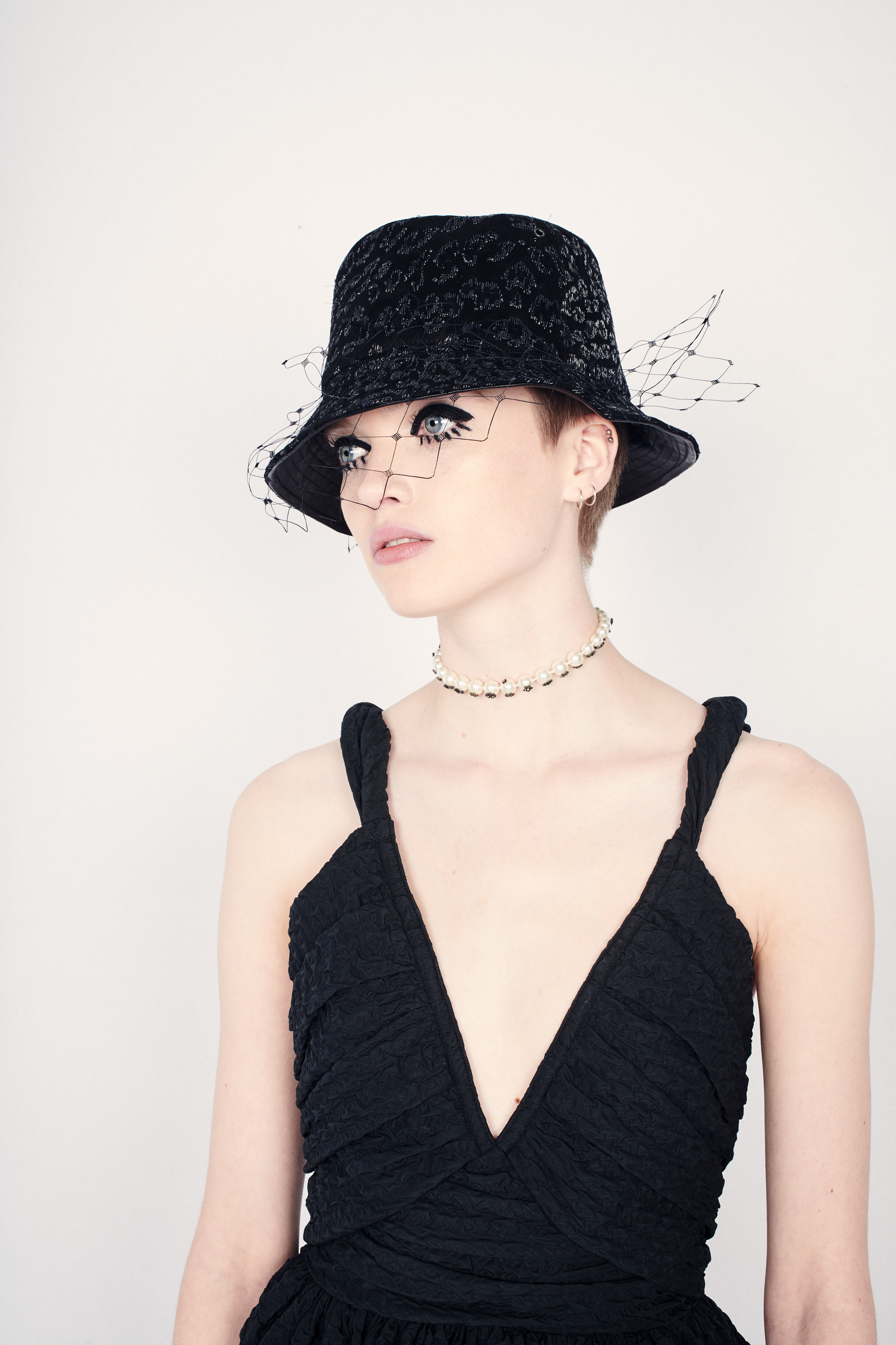 This season, pearl necklaces are boldly dressed up. Christened Teddy-D, and adorned with stars and clovers in black or multicolored crystals, Christian Dior’s signature symbols, they are worn on shirt collars or chokers. Each bead is strung one by one, by hand, using a traditional, artisanal technique. A sublime union of delicacy and insolence, these jewels evoke the rebellious attitude of the Teddy Girls, who hijacked Edwardian style in the 1950s, as well as the figure of Princess Margaret, whose personality combined classicism and subversion.