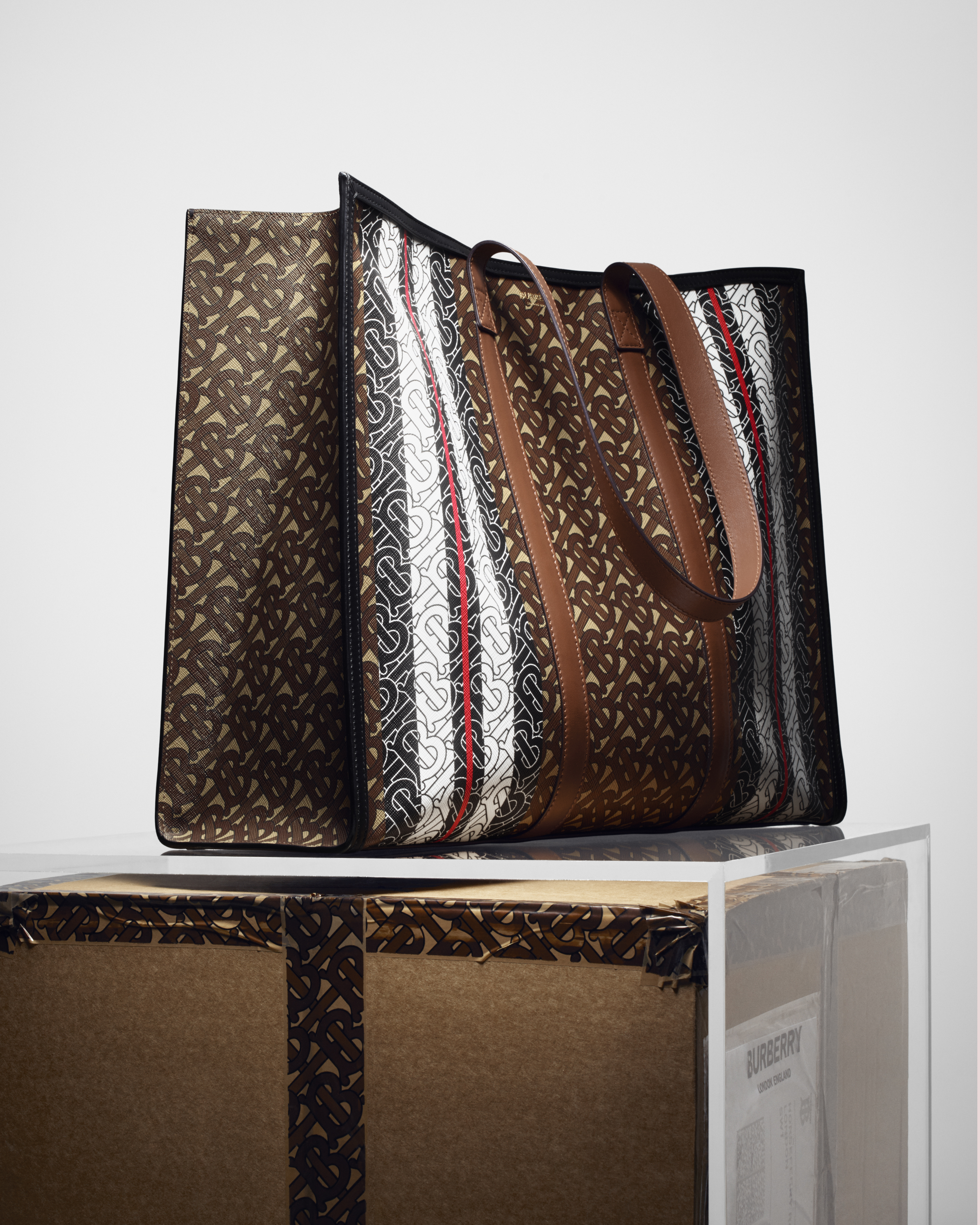 The Monogram collection pays tribute to Burberry’s heritage and founder through a new house code – the initials TB intertwined in the brand’s famous beige and brown tones.