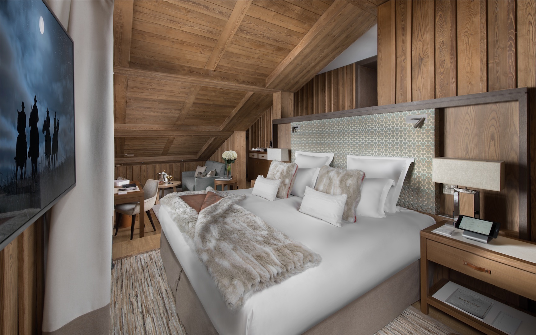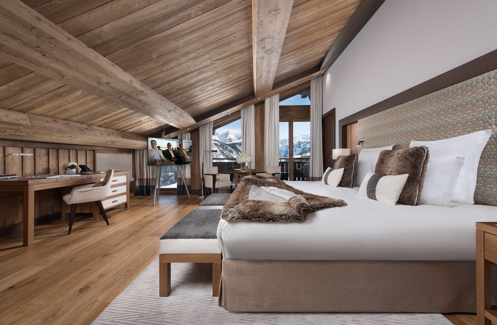 Less than four years after opening, L’Hôtel Barrière Les Neiges has just been awarded the coveted “Palace distinction”, joining the prestigious circle of French “Palaces”. The members of the Atout France jury were won over by the soul and cachet of one of Courchevel 1850’s oldest and most beautiful hotels. Reinvented and sublimated by Nathalie Ryan, this exceptional chalet is ideally located on the Bellecôte slope, just a stone’s throw from the Croisette.