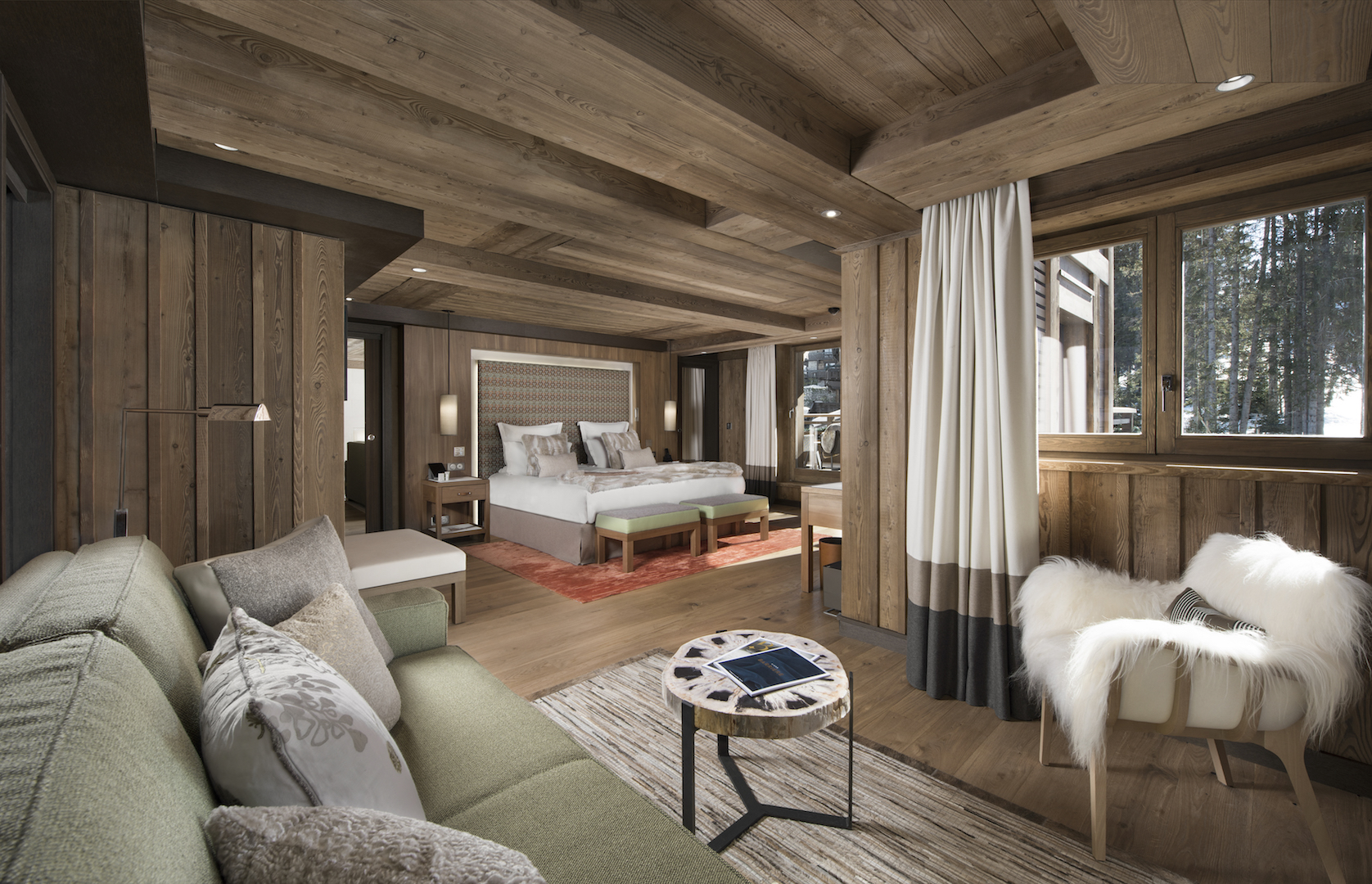 The 42 rooms and suites offer breathtaking views of the snow-capped mountains and the village of Courchevel 1850. Its two restaurants are among the resort’s finest gastronomic rendezvous, with the style and personal touch of two Michelin-starred chefs: “La brasserie Fouquet’s”, offers guests a menu of French gastronomy created in collaboration with 3-star chef Pierre Gagnaire.