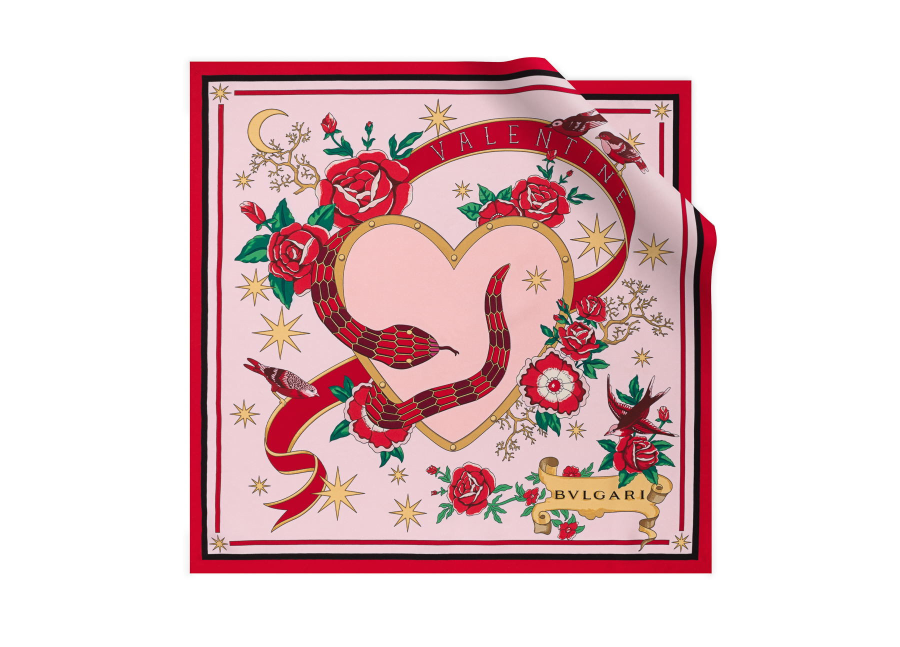 Cupid’s arrow also reaches for many irresistible gifts…whether it’s an ultra-trendy wallet or card holder or a “must-have” bracelet, on Valentine’s Day there are a multitude of ways to show your loved one just how much you cherish them. Finally, for a sweet and sensual touch, a limited edition silk scarf places the heart motif surrounded by the snake at the heart of a lush flower garden.