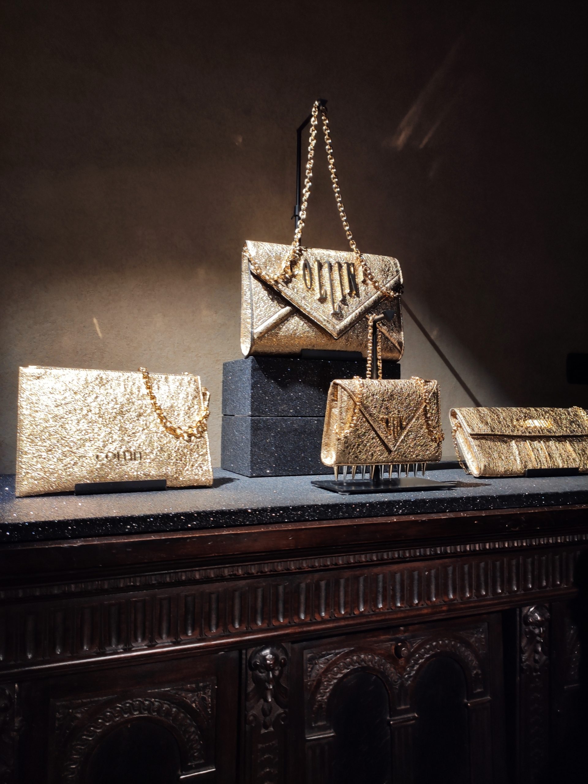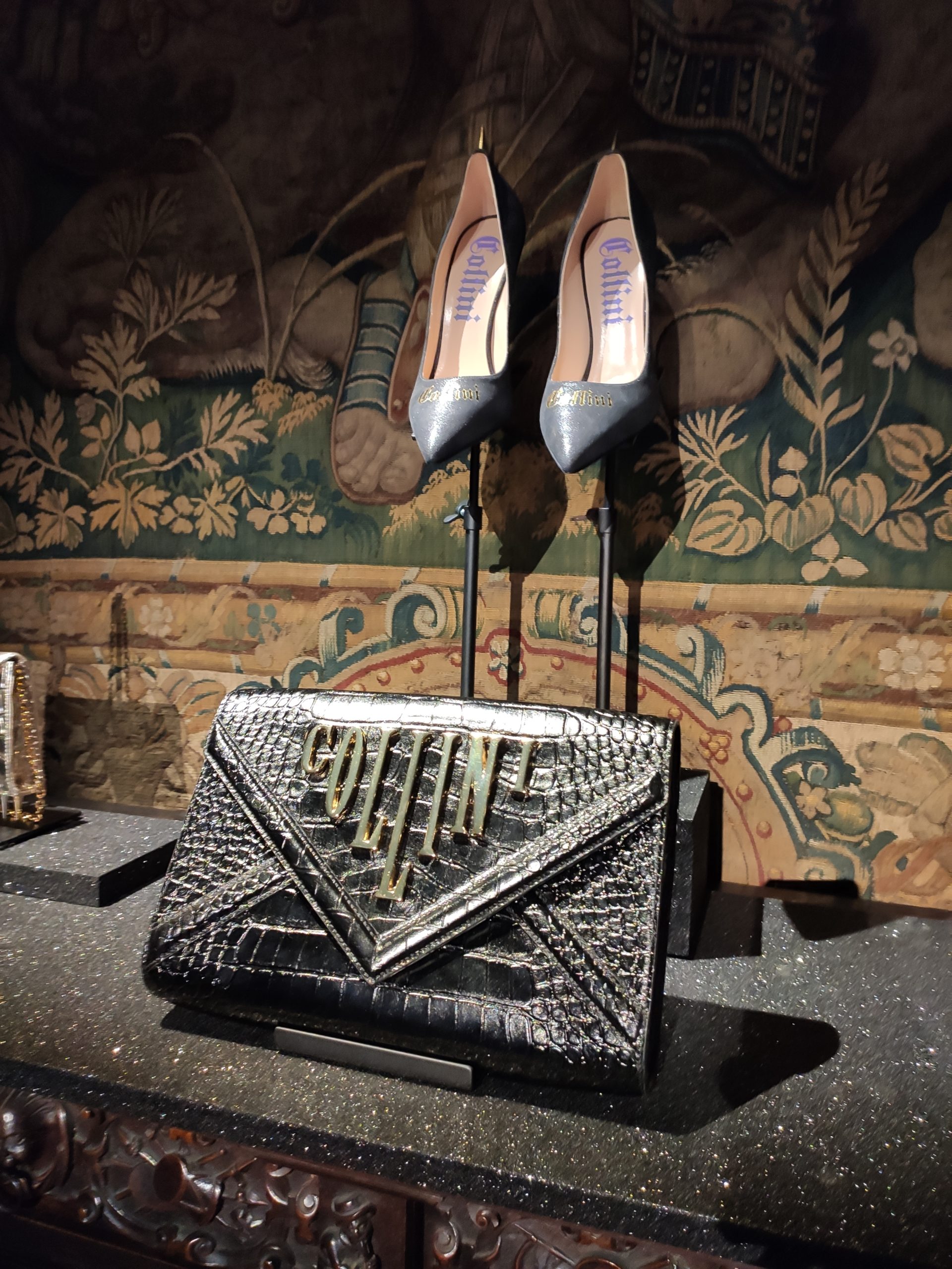 Footwear and accessories to make any enchantress proud: thigh high and ankle boots in towering spike or block heals, sensual pumps and spiked trainers realized in colorful metallic s, symbolic graphics or gothic Collini