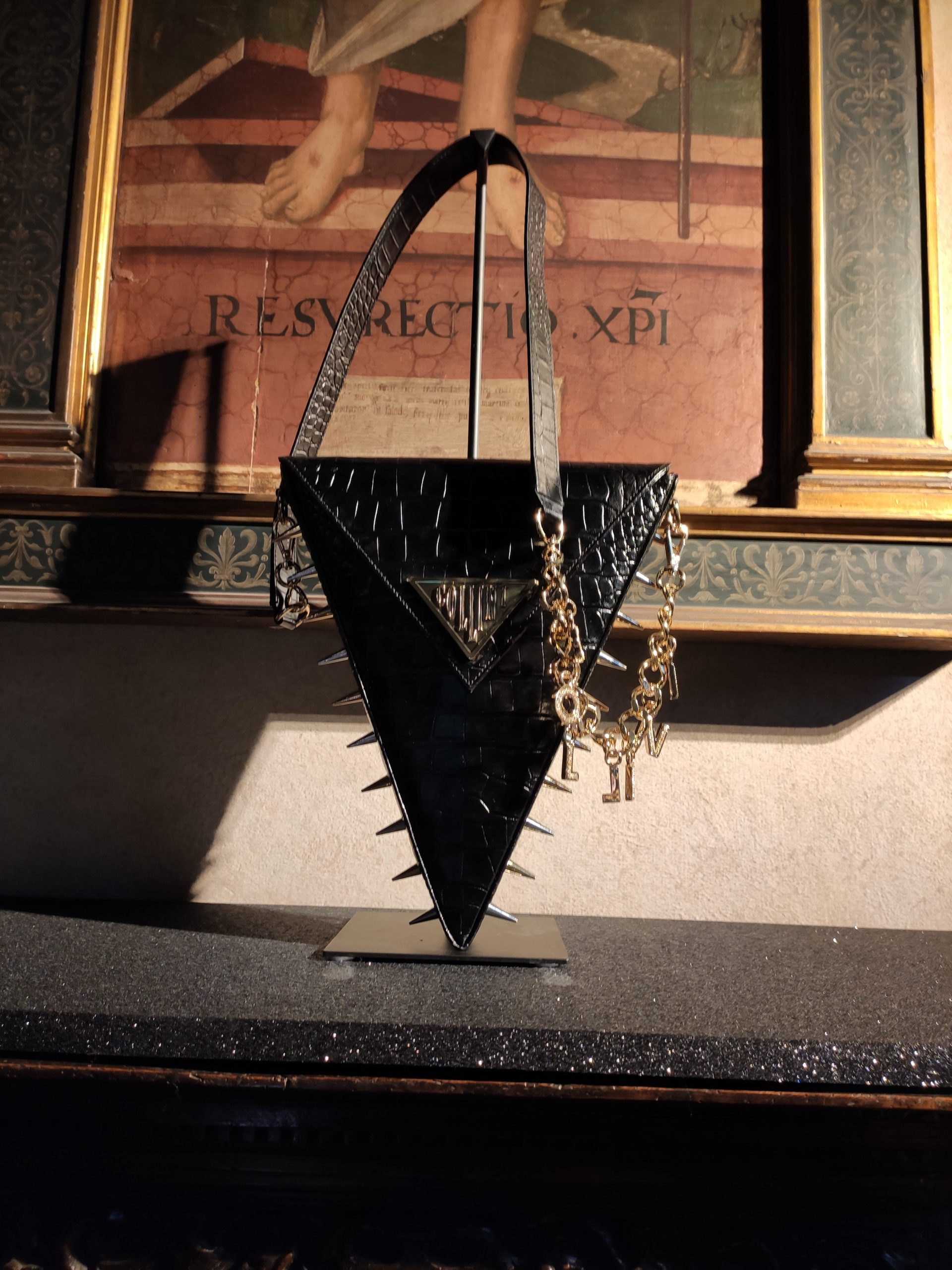logo print, as are clutches and satchel bags. And finally the maxi spiked killer bag to ward off the evil spirits
