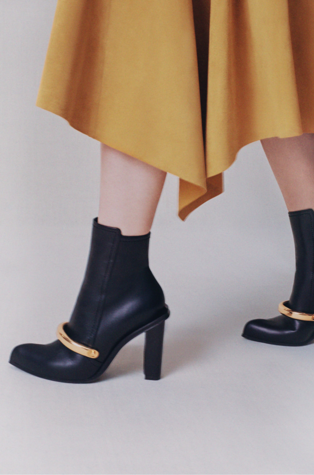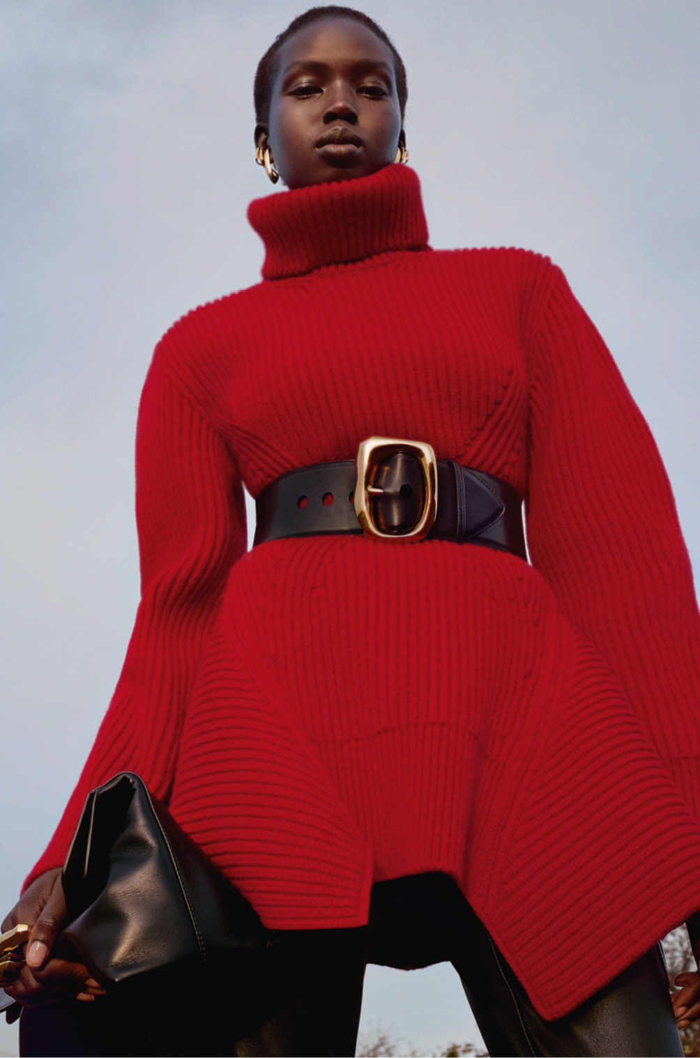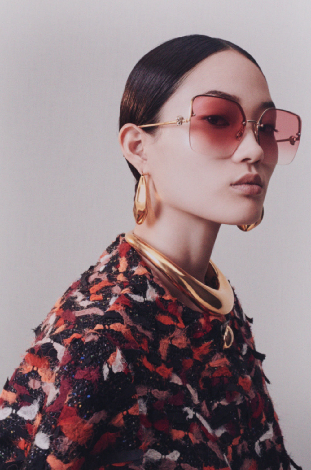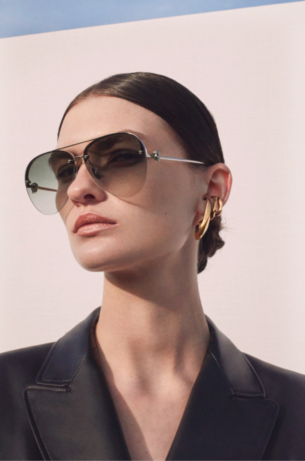 British art nouveau and craftsmanship, the understated elegance of modernism: sinuous iris, proud thistle and Glasgow rose. The windswept earth and landscapes of the North have been laid bare. The heart of the earth and the treasures hidden beneath its surface. Metallic minerals: rich seams of gold, silver and copper everywhere. Mineralogy: crystal, agate, flint, rock; opaque and sculptural on the outside, jewel-like and reflective on the inside. The juxtaposition between sobriety and seduction, the raw and the refined, the textured and the smooth, light and dark, all contrast with the handwriting of the House of Alexander McQueen.