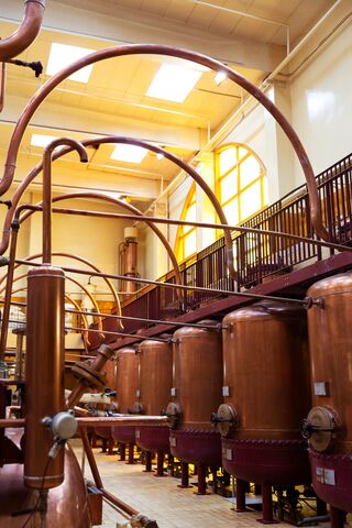 orange liqueur and its 19 majestic copper stills, is then revealed to the public, who discover the different stages of distillation specific to the House.