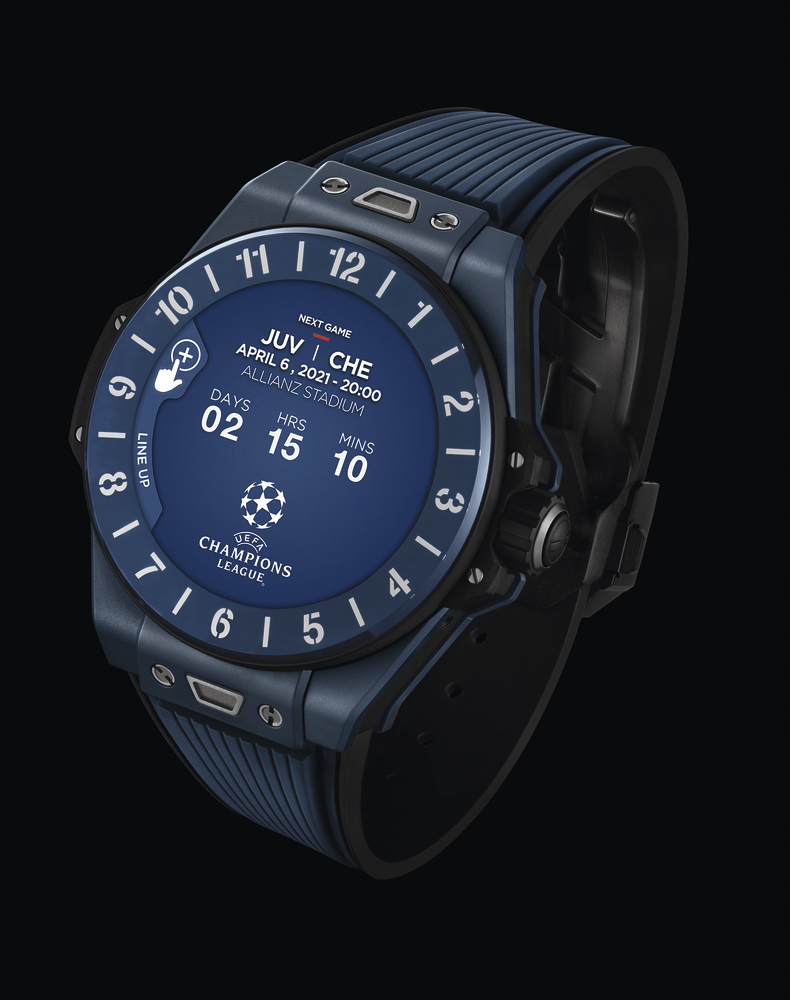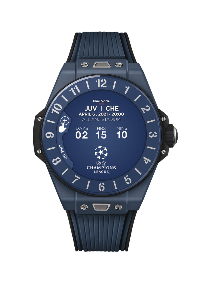 The new model is based on Hublot’s Big Bang e connected watch, launched earlier this year. A number of functions have been added to enhance the experience for UEFA Champions League fans. This limited edition of 500 features a lightweight ceramic case and rubber strap, both in the emblematic blue of the UEFA Champions League. Owners can choose from a range of dials, which can be downloaded from the Hublot Store. There will be digital and analog options in blue, and a singular colored dial that can be customized to match the colors of the participating teams. The watch runs on Google™’s Wear OS and features the new Hublot Loves Football UEFA Champions League app. Users will receive notifications to alert them to kick-off time (15 minutes before the start of the match), goals, penalties, substitutions, yellow and red cards and added time. The application will also show team compositions and video-assisted refereeing options. When the end of playing time is announced, the software starts counting down to the next match. And if two matches are taking place at the same time, users will be able to switch from one to the other with a simple tap on the screen. The application will also be available to current owners of the Hublot Big Bang e watch. Hublot will also equip UEFA Champions League referees with a special edition, which will not be offered commercially. Molded in an ultra-light composite for referees’ wearing comfort, the watch will be even lighter than the ceramic version. The watch will also feature additional technology to help referees, for example with the goal-line technology function, which signals when the ball has completely crossed the line. So, even in a crowded penalty area, the referee will have no doubt that a goal has been scored.