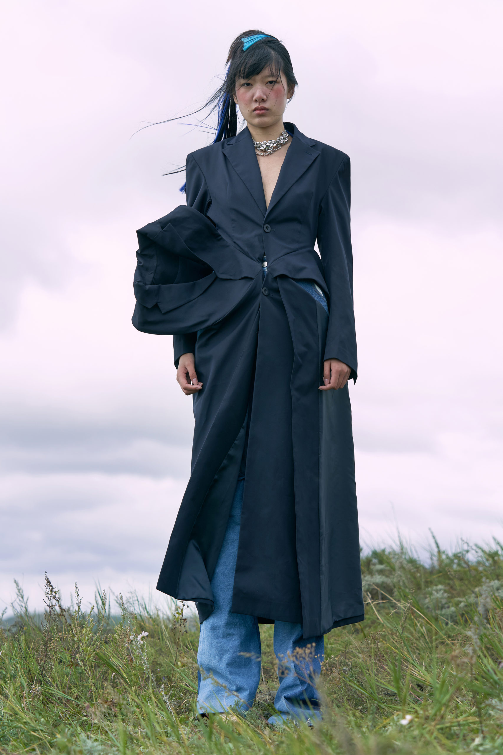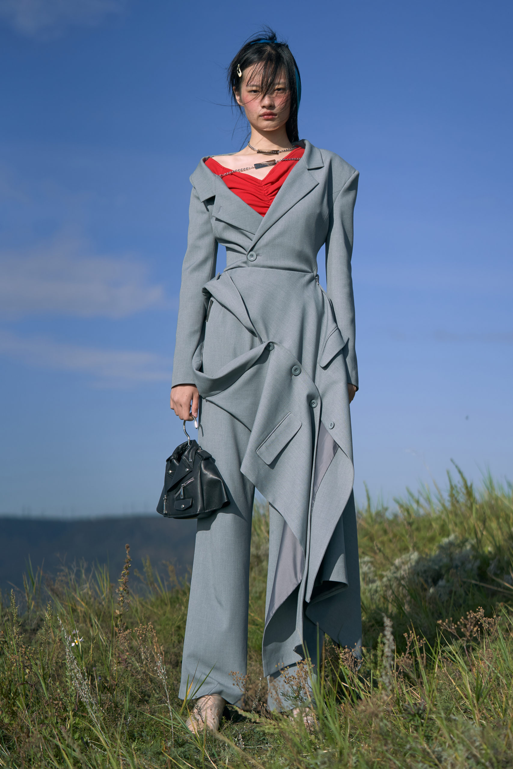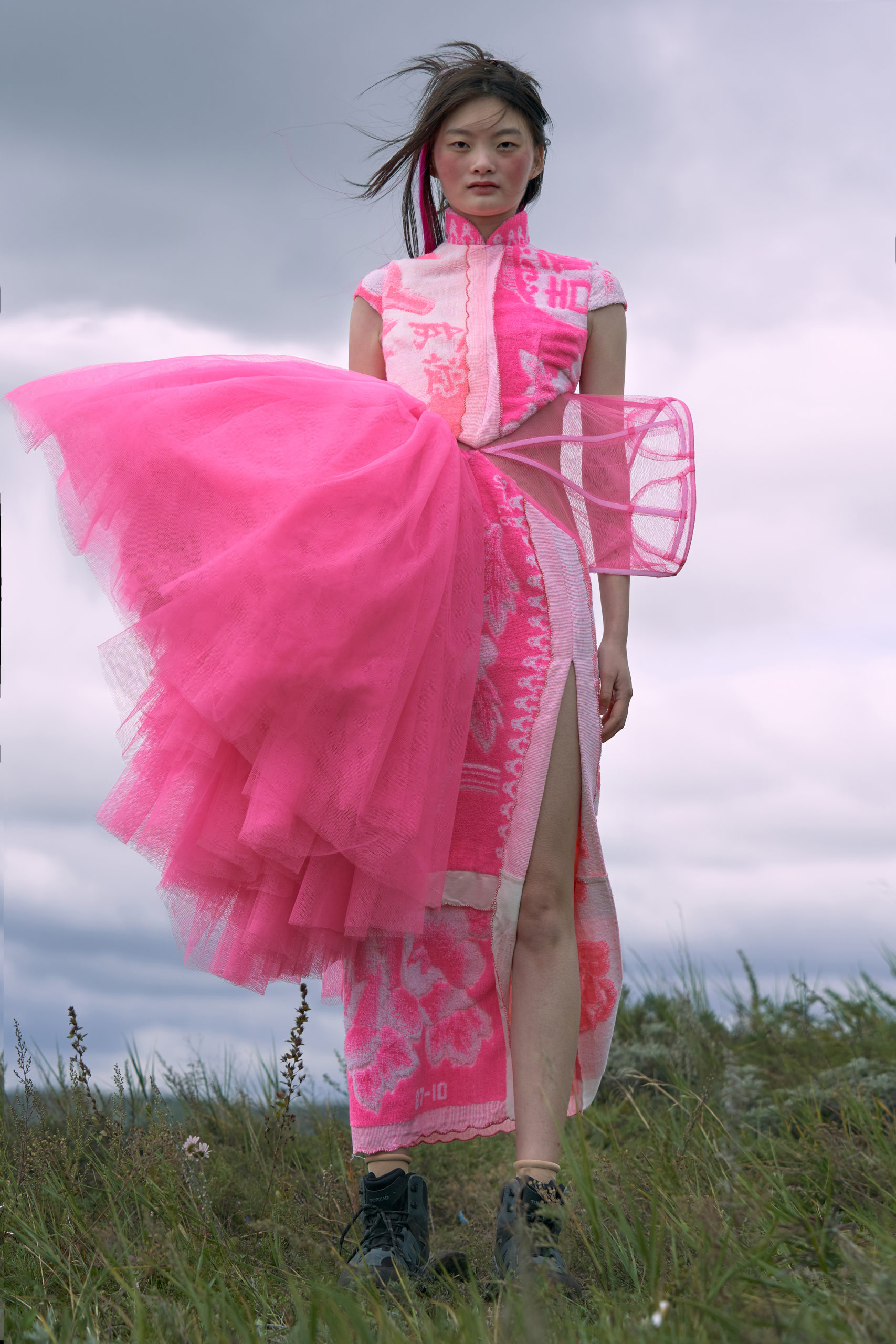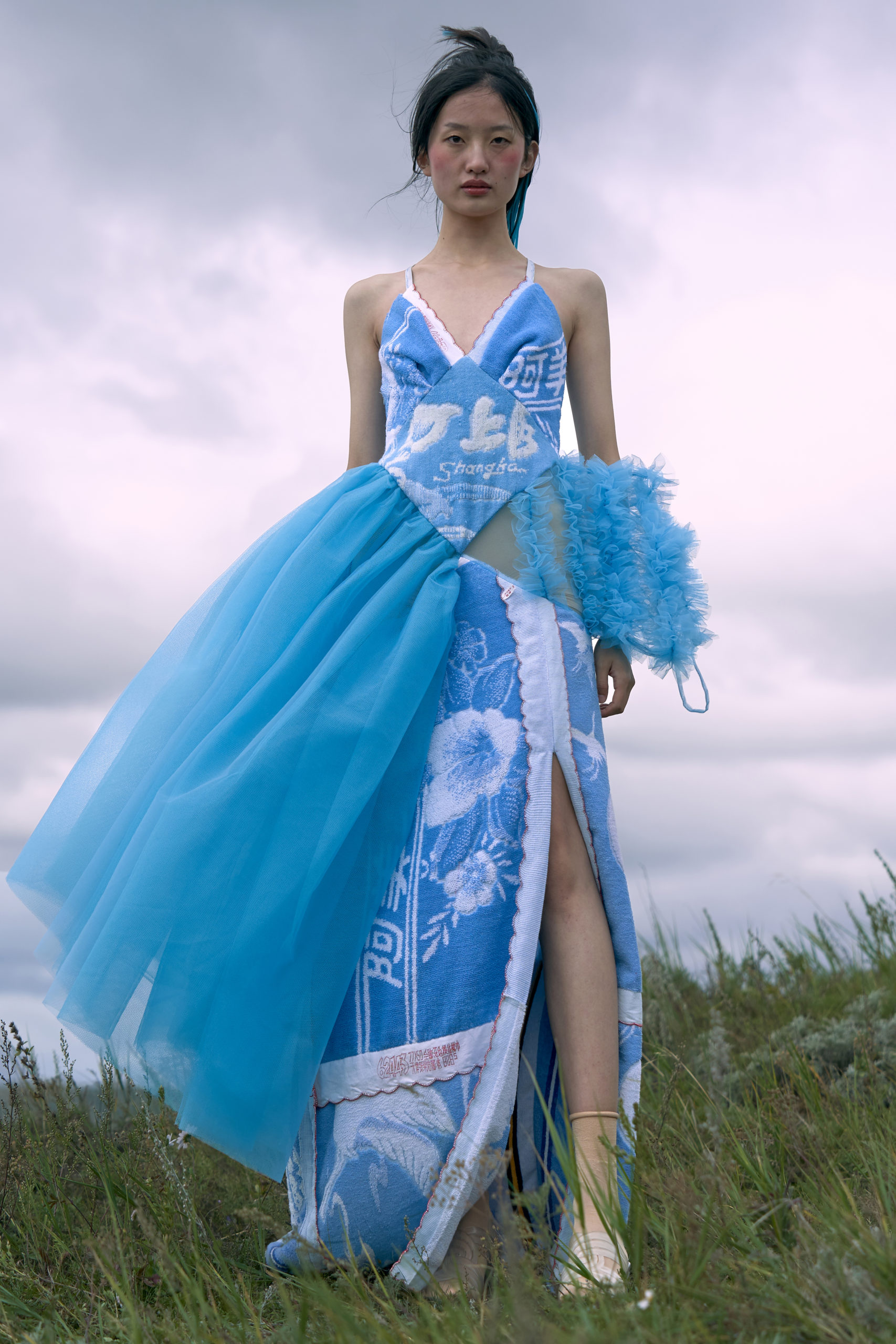LONDONFASHIONWEEK MARRKNULL SS2021 collection is inspired by Chinese 1980s movie “In the Wild Mountains” directed by Yan XueShu. The film tells about the struggles and choices of two families with different personalities in the mountains facing the torrent of the times under the background of rural reform in ShanXi Province, which is also the story of two women fighting for life.