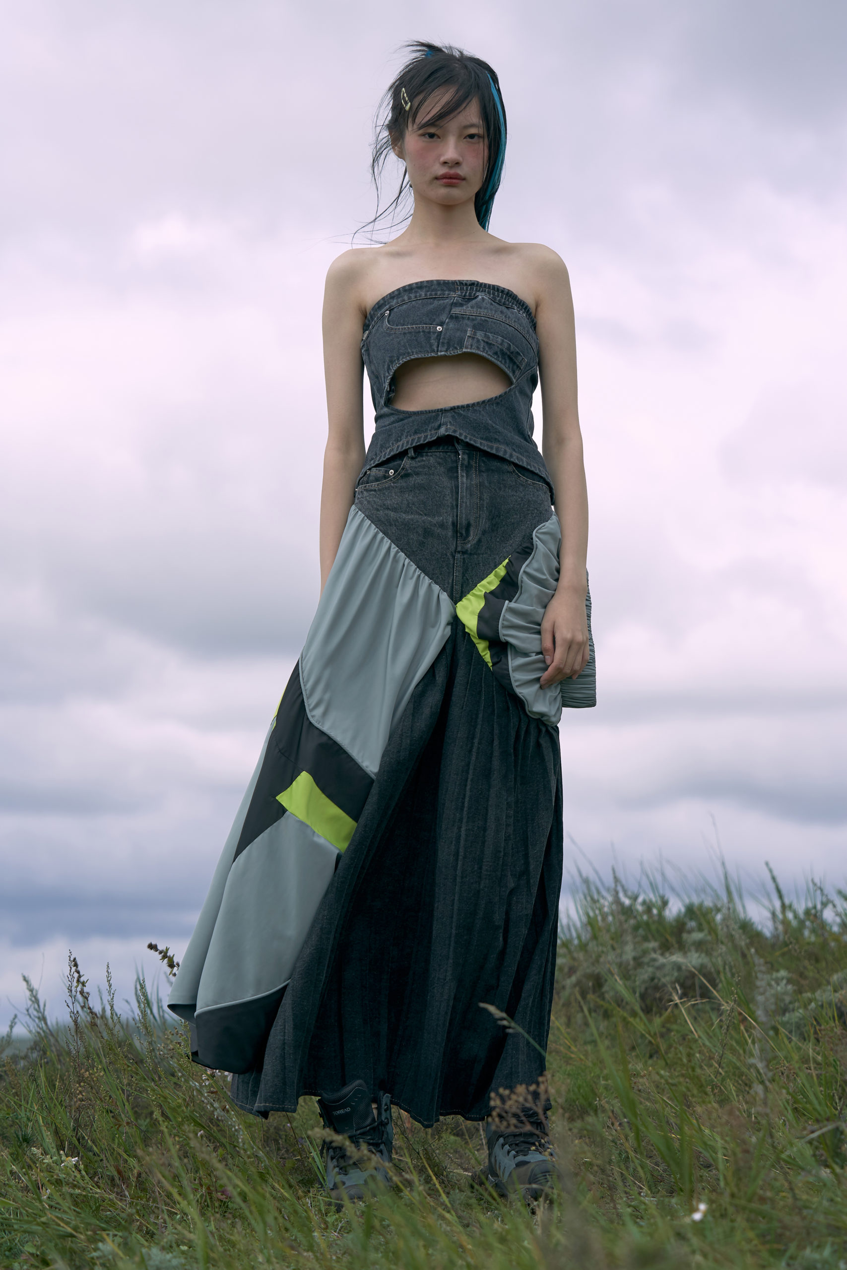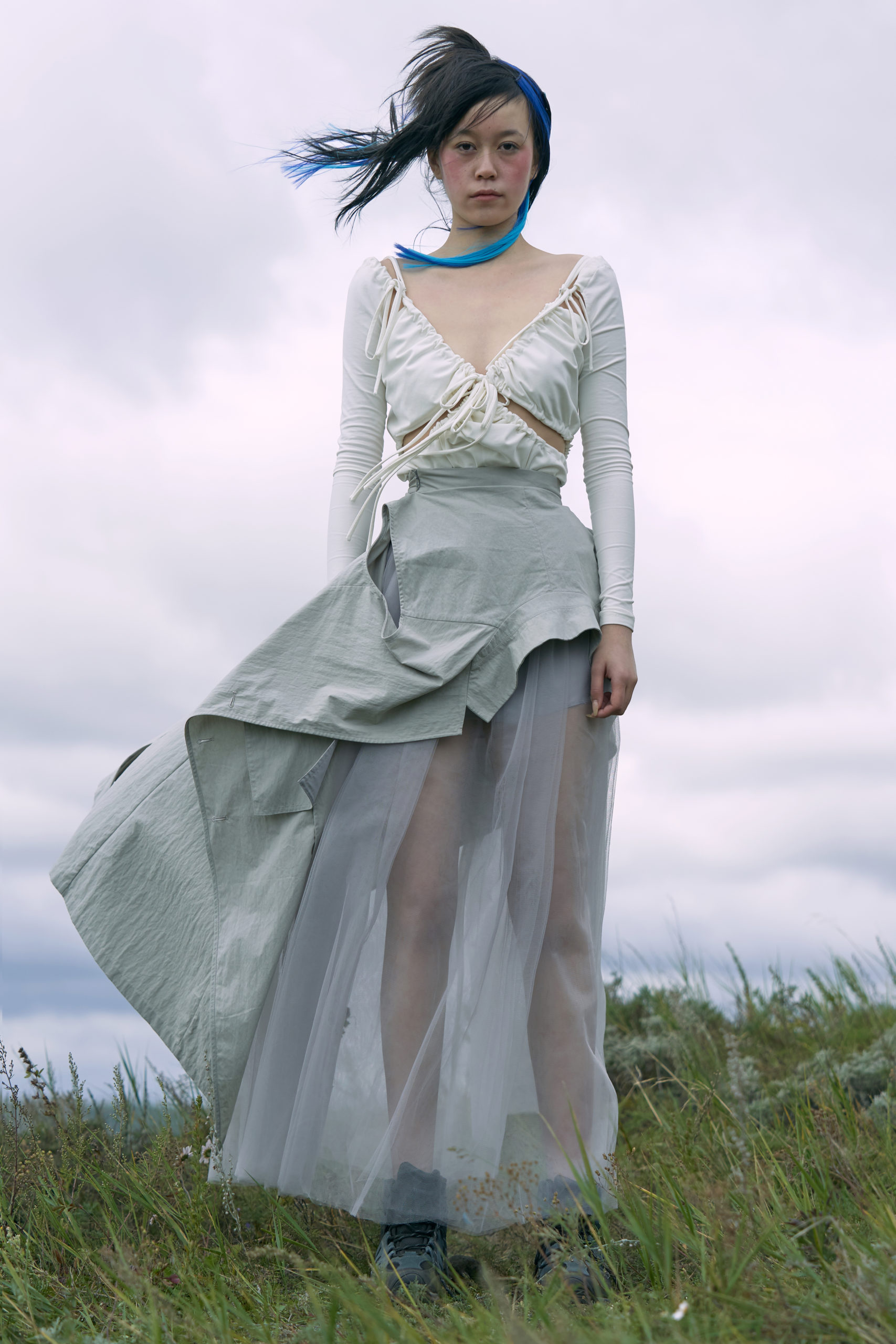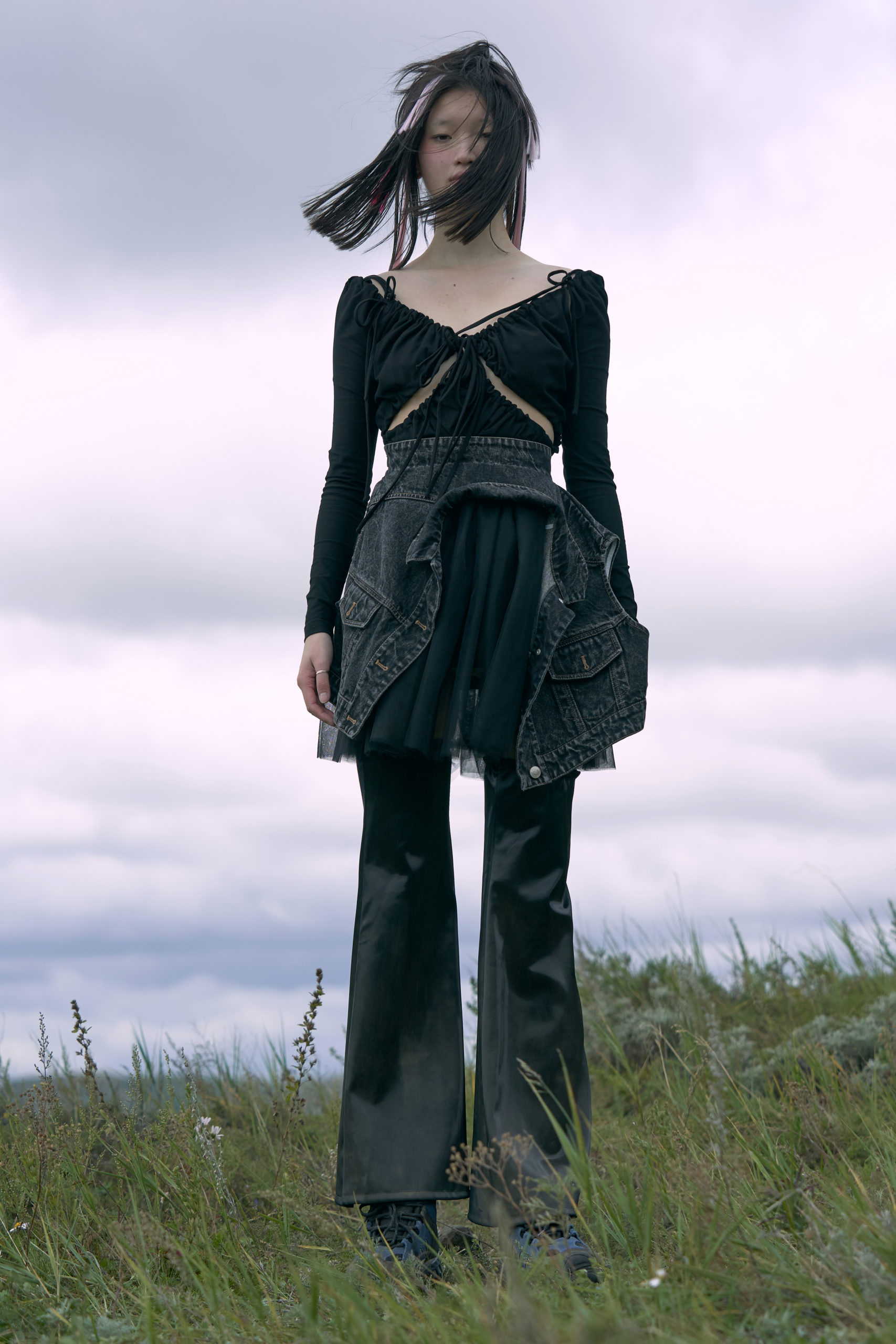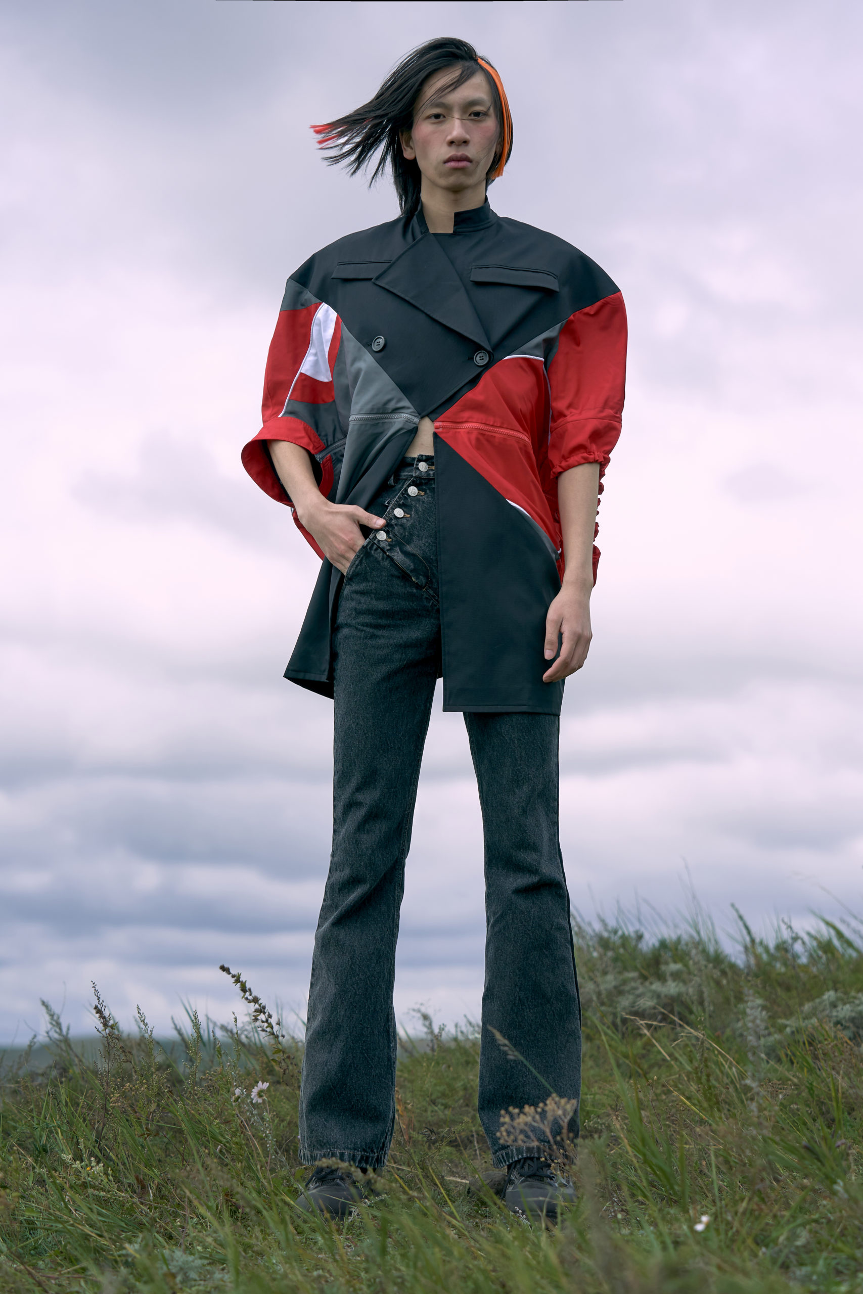LONDONFASHIONWEEK MARRKNULL SS2021 collection is inspired by Chinese 1980s movie “In the Wild Mountains” directed by Yan XueShu. The film tells about the struggles and choices of two families with different personalities in the mountains facing the torrent of the times under the background of rural reform in ShanXi Province, which is also the story of two women fighting for life.