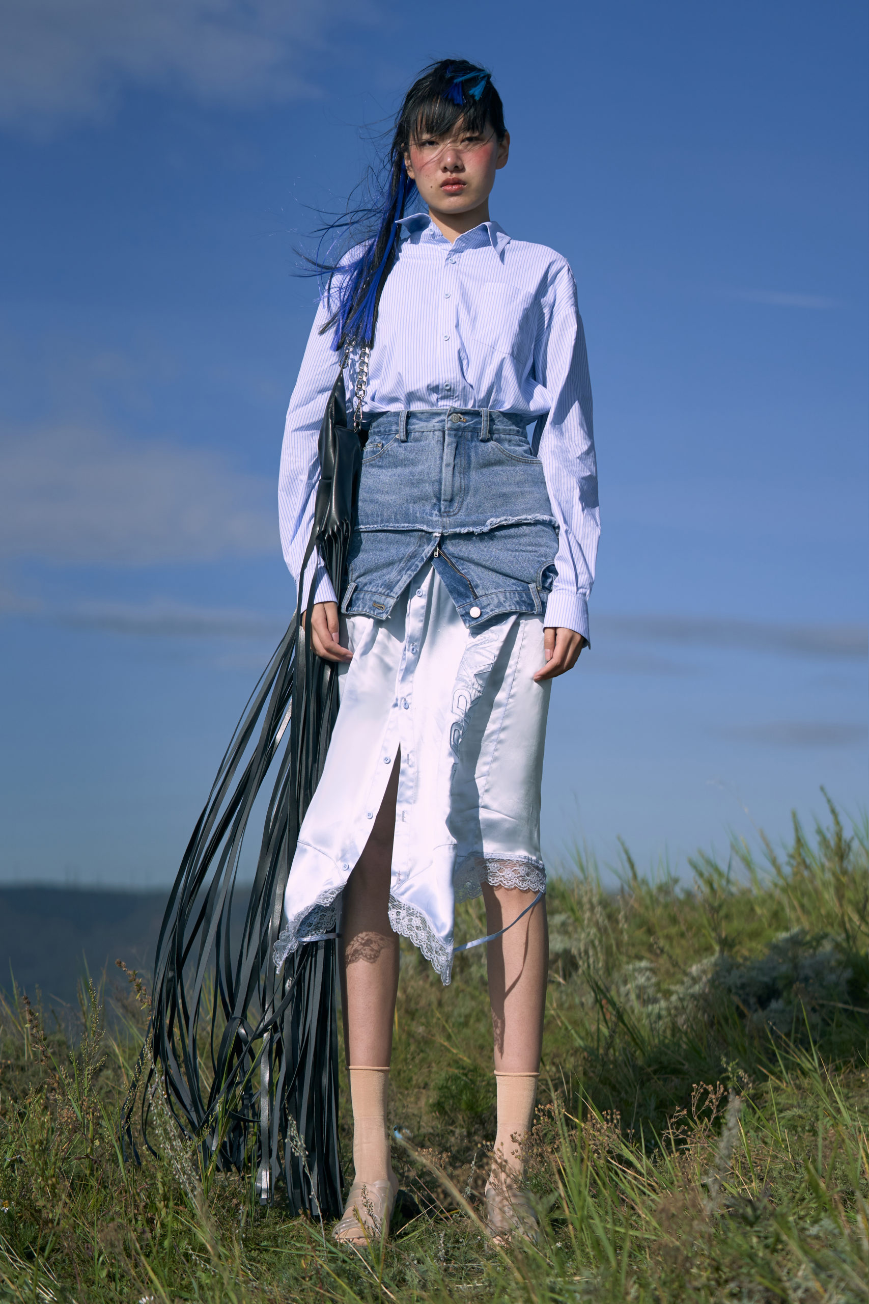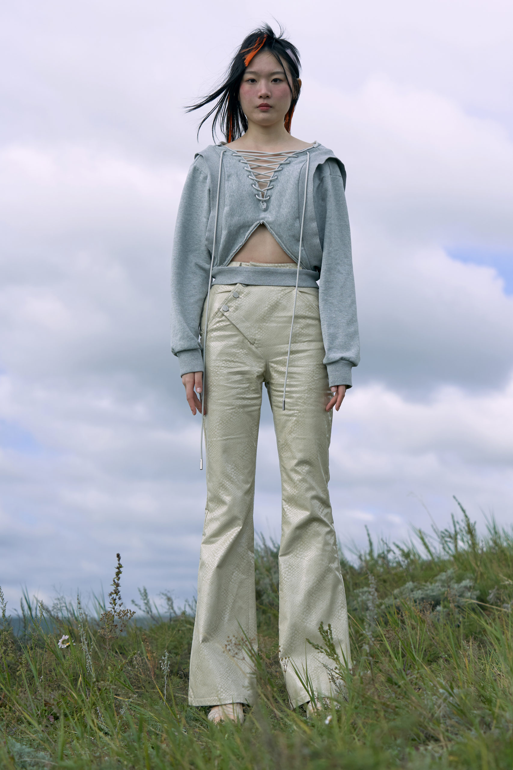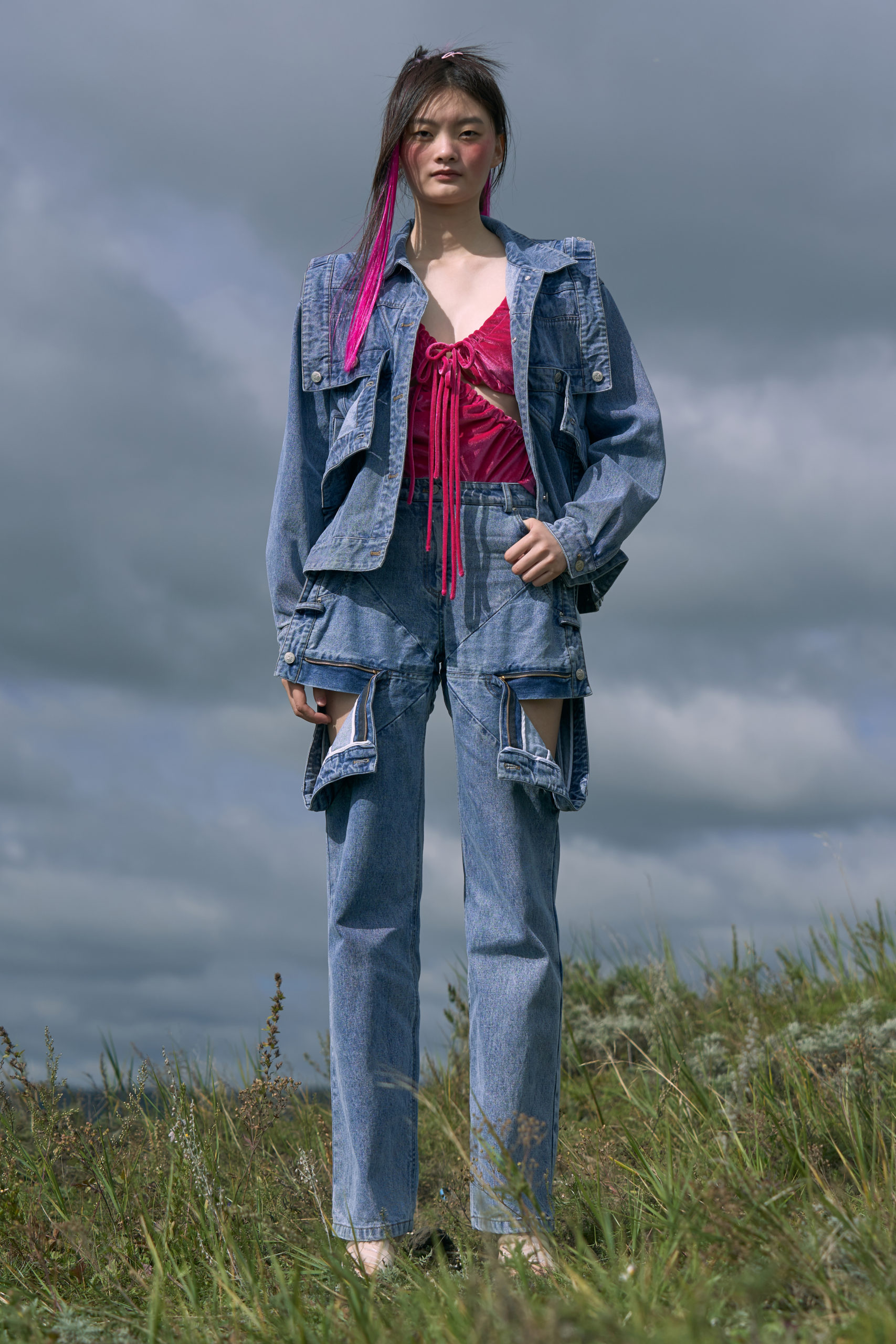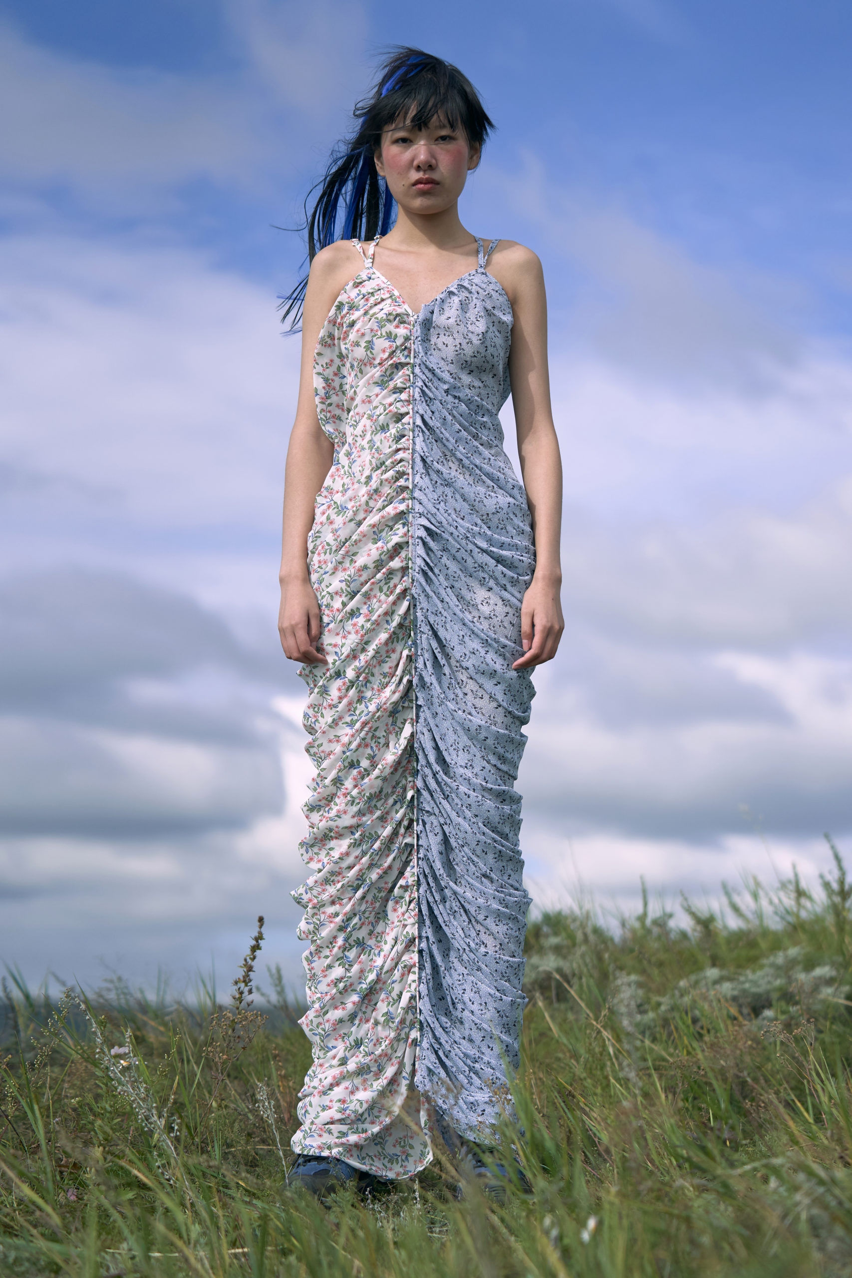 LONDONFASHIONWEEK MARRKNULL SS2021 collection is inspired by Chinese 1980s movie “In the Wild Mountains” directed by Yan XueShu. The film tells about the struggles and choices of two families with different personalities in the mountains facing the torrent of the times under the background of rural reform in ShanXi Province, which is also the story of two women fighting for life.