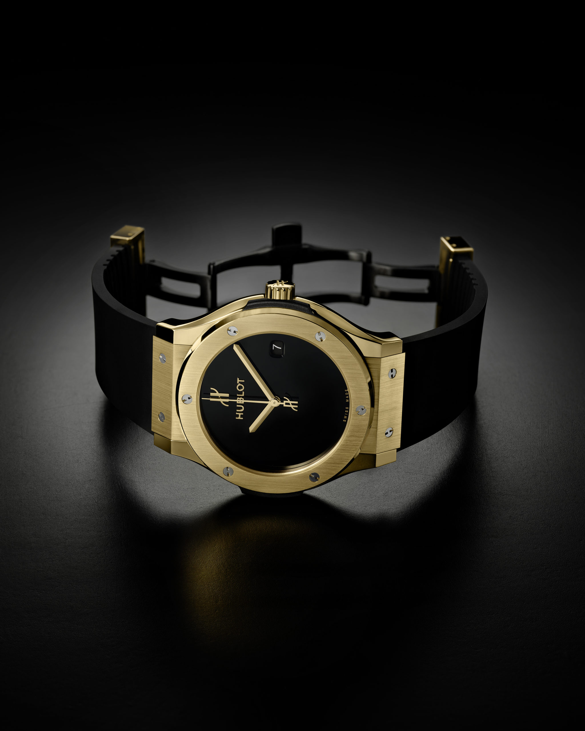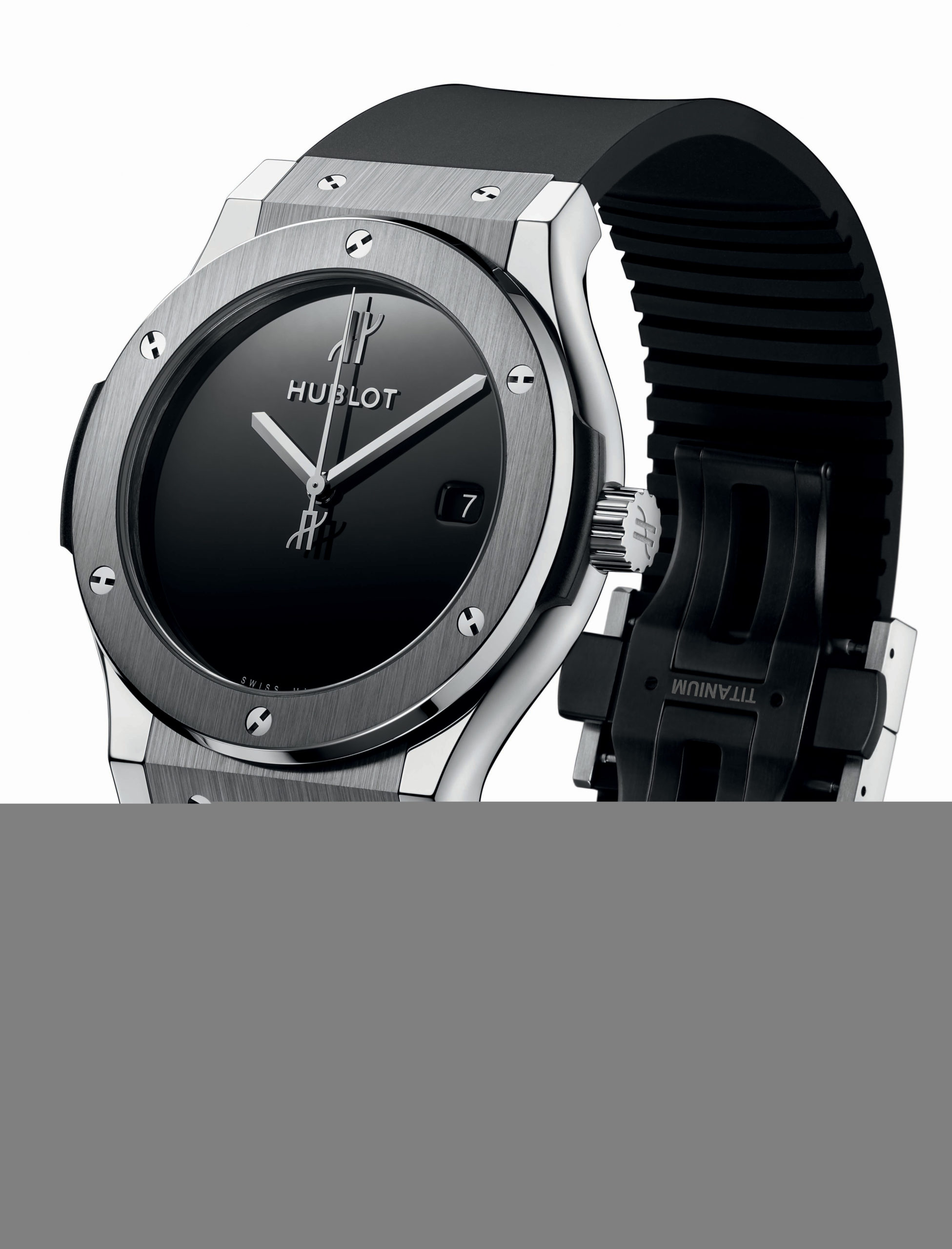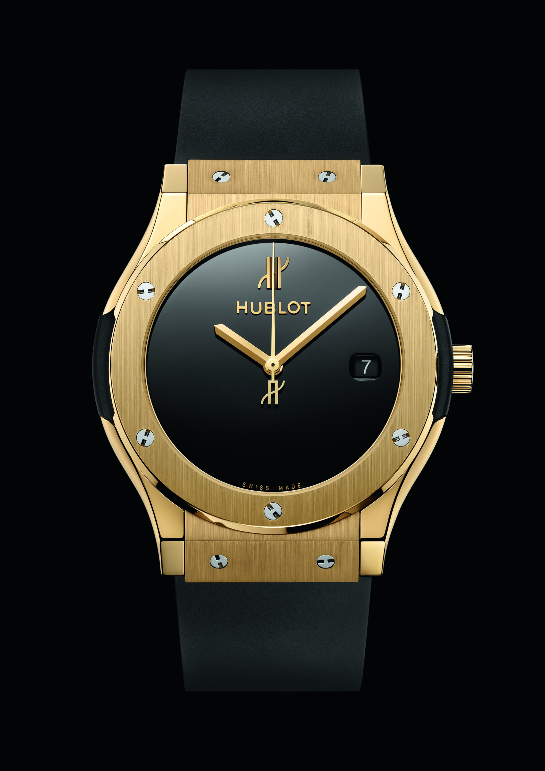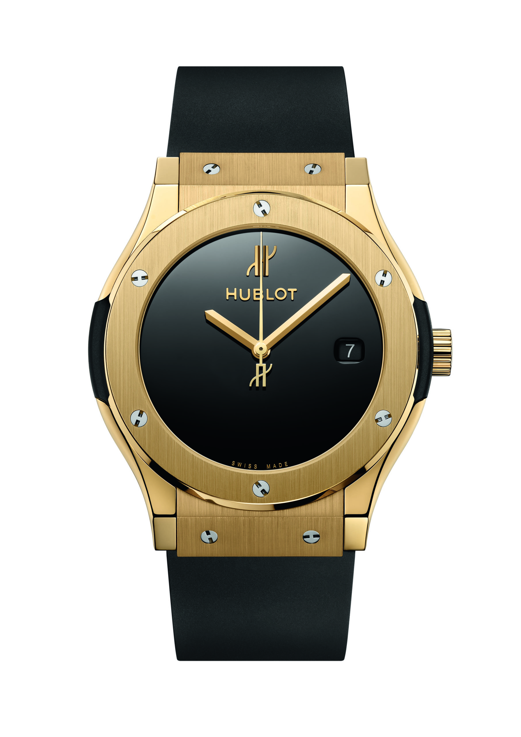 The new Classic Fusion watches express the timeless elegance and refinement of the 1980 Classic Original and the modernity of forty years of unceasing exploration and innovation. The polished lacquered black dial is ultra-sober, distracted only by the presence of faceted hands and the applied H and Hublot logo. The 45 mm case in yellow gold, titanium or black ceramic is crossed by the famous screws on the bezel and features a sapphire crystal back, all worn on the unchanging rubber strap that is easily adjustable to the wrist and comfortable to wear thanks to the triple folding clasp. These signature details bring the first Hublot watch up to date, and suggest that these timepieces will stand the test of time with just as much character.