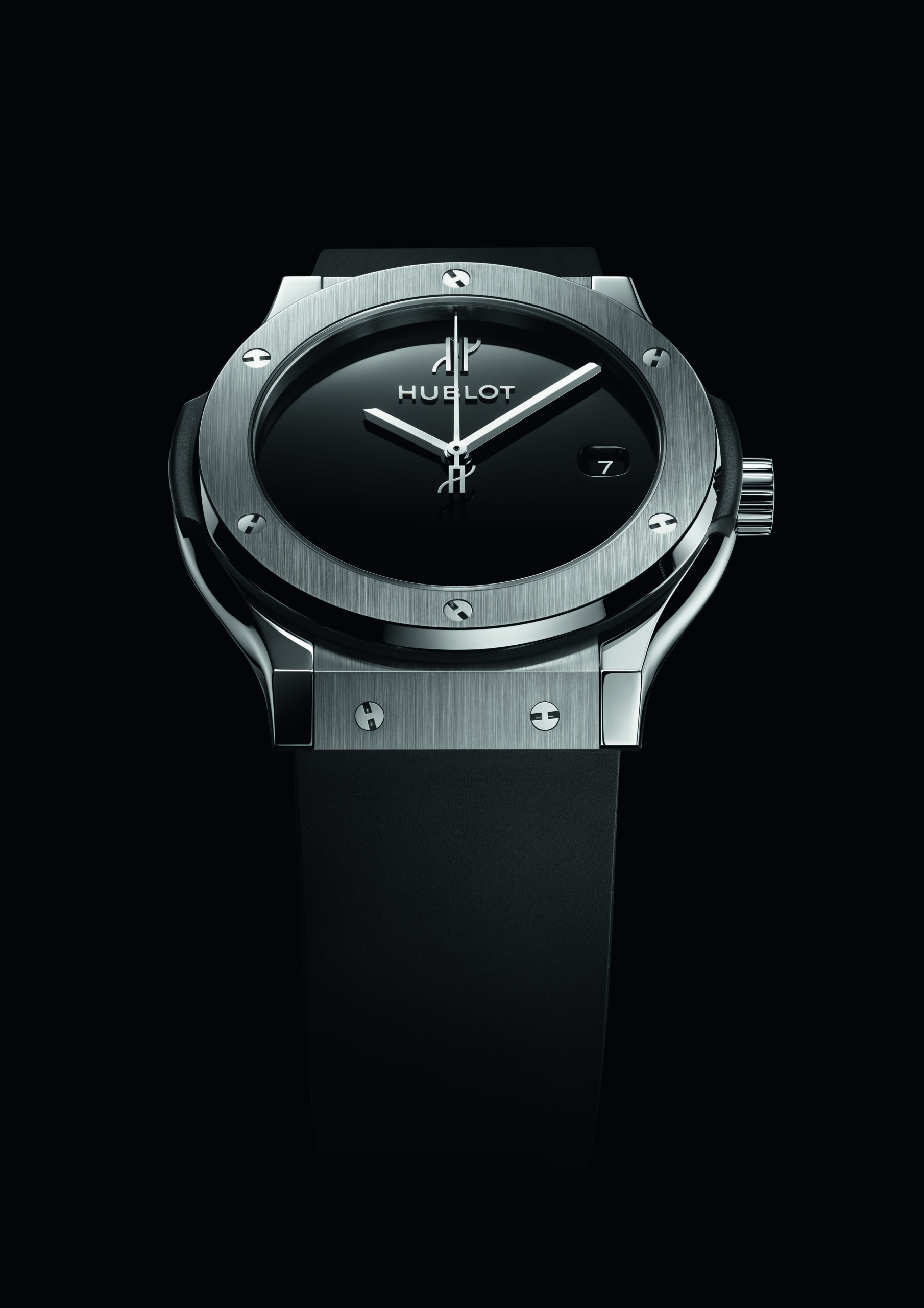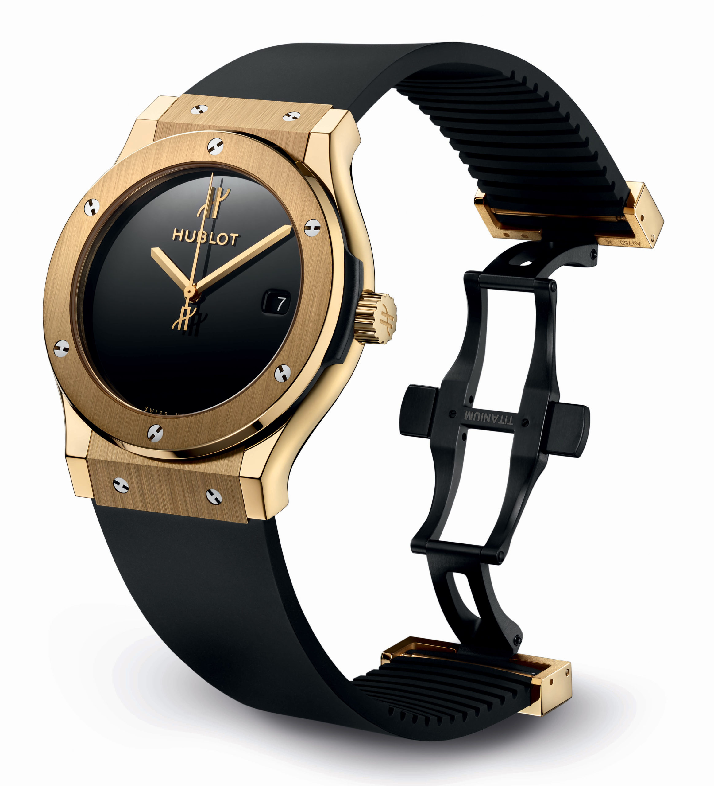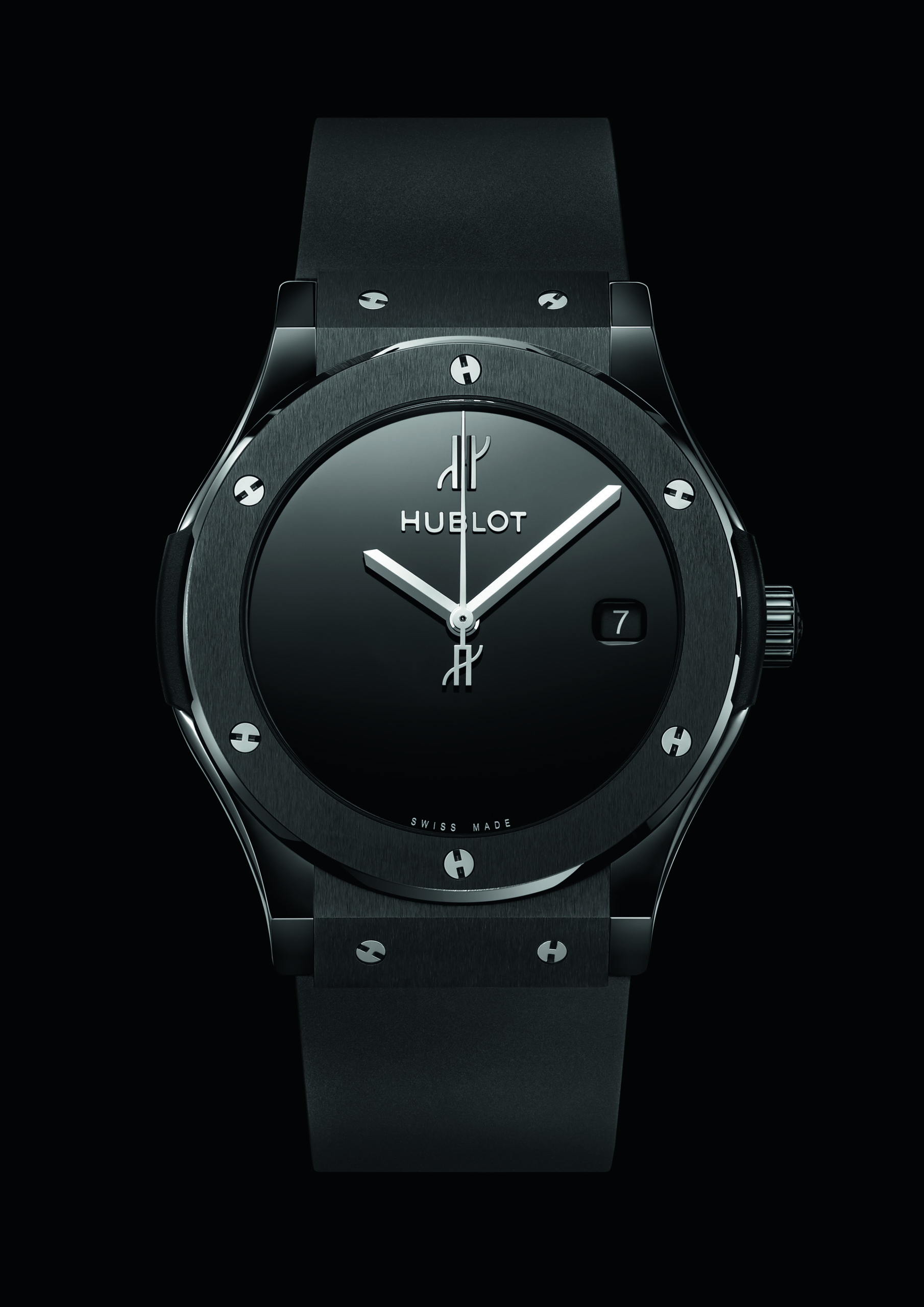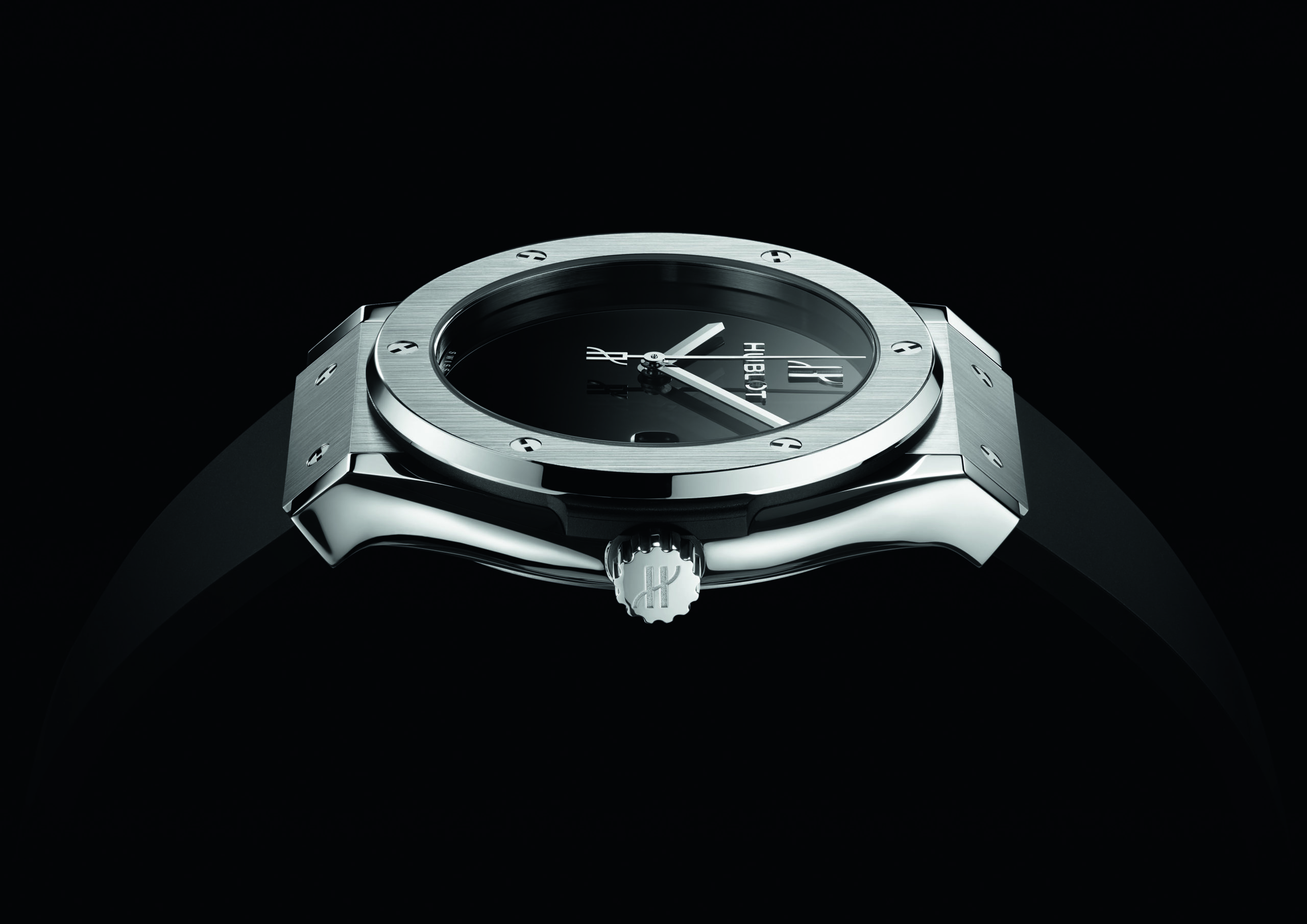 The new Classic Fusion watches express the timeless elegance and refinement of the 1980 Classic Original and the modernity of forty years of unceasing exploration and innovation. The polished lacquered black dial is ultra-sober, distracted only by the presence of faceted hands and the applied H and Hublot logo. The 45 mm case in yellow gold, titanium or black ceramic is crossed by the famous screws on the bezel and features a sapphire crystal back, all worn on the unchanging rubber strap that is easily adjustable to the wrist and comfortable to wear thanks to the triple folding clasp. These signature details bring the first Hublot watch up to date, and suggest that these timepieces will stand the test of time with just as much character.