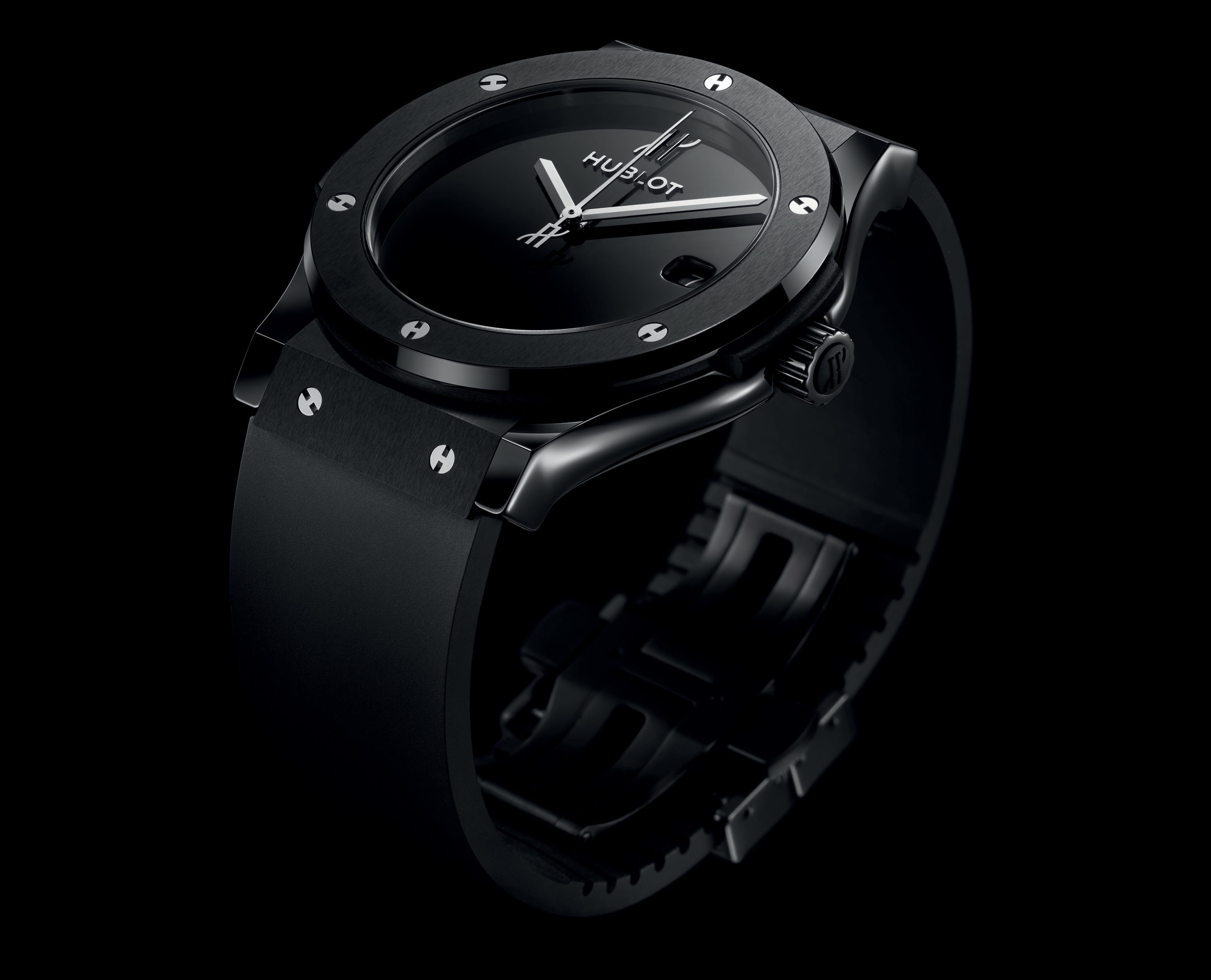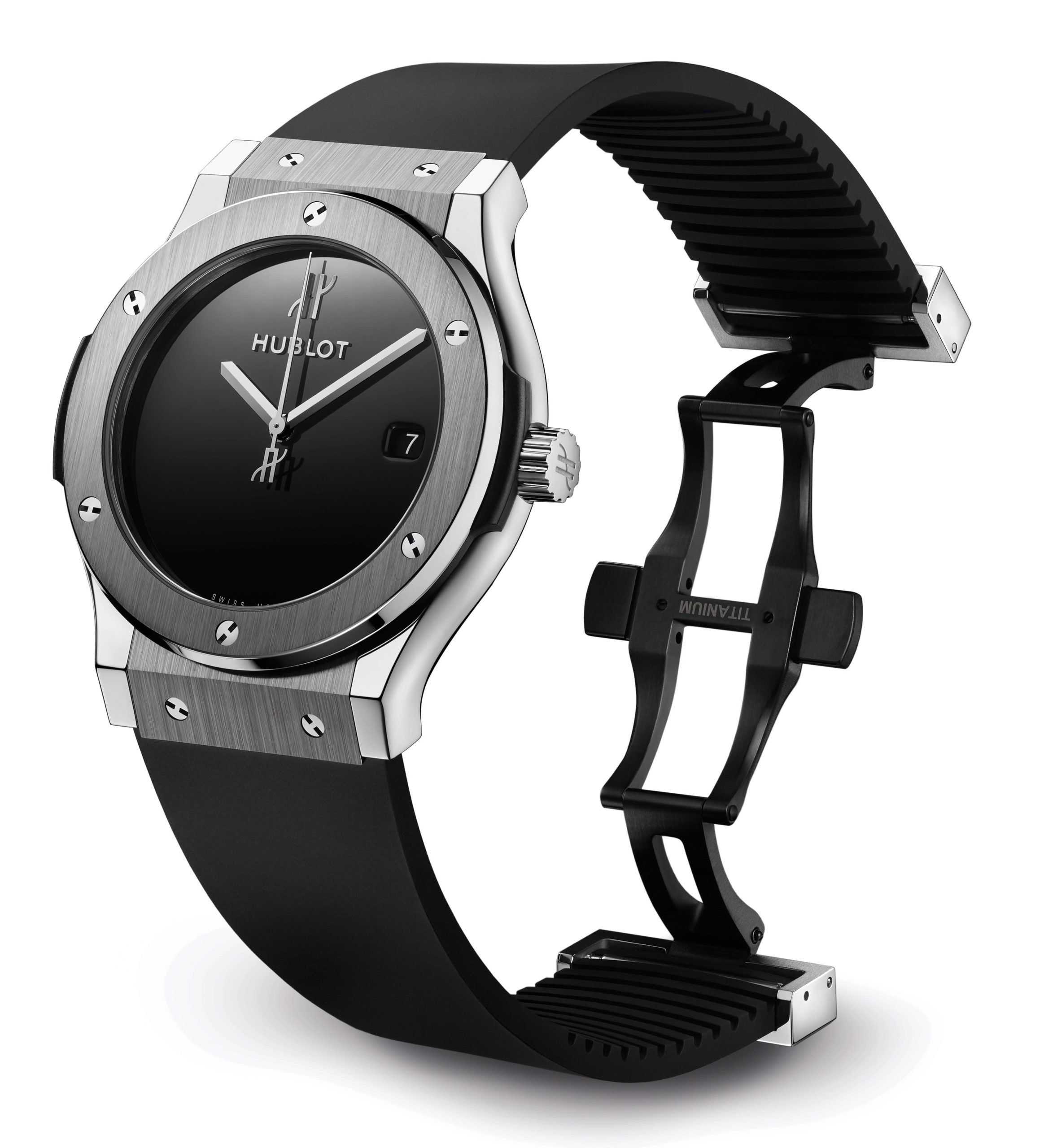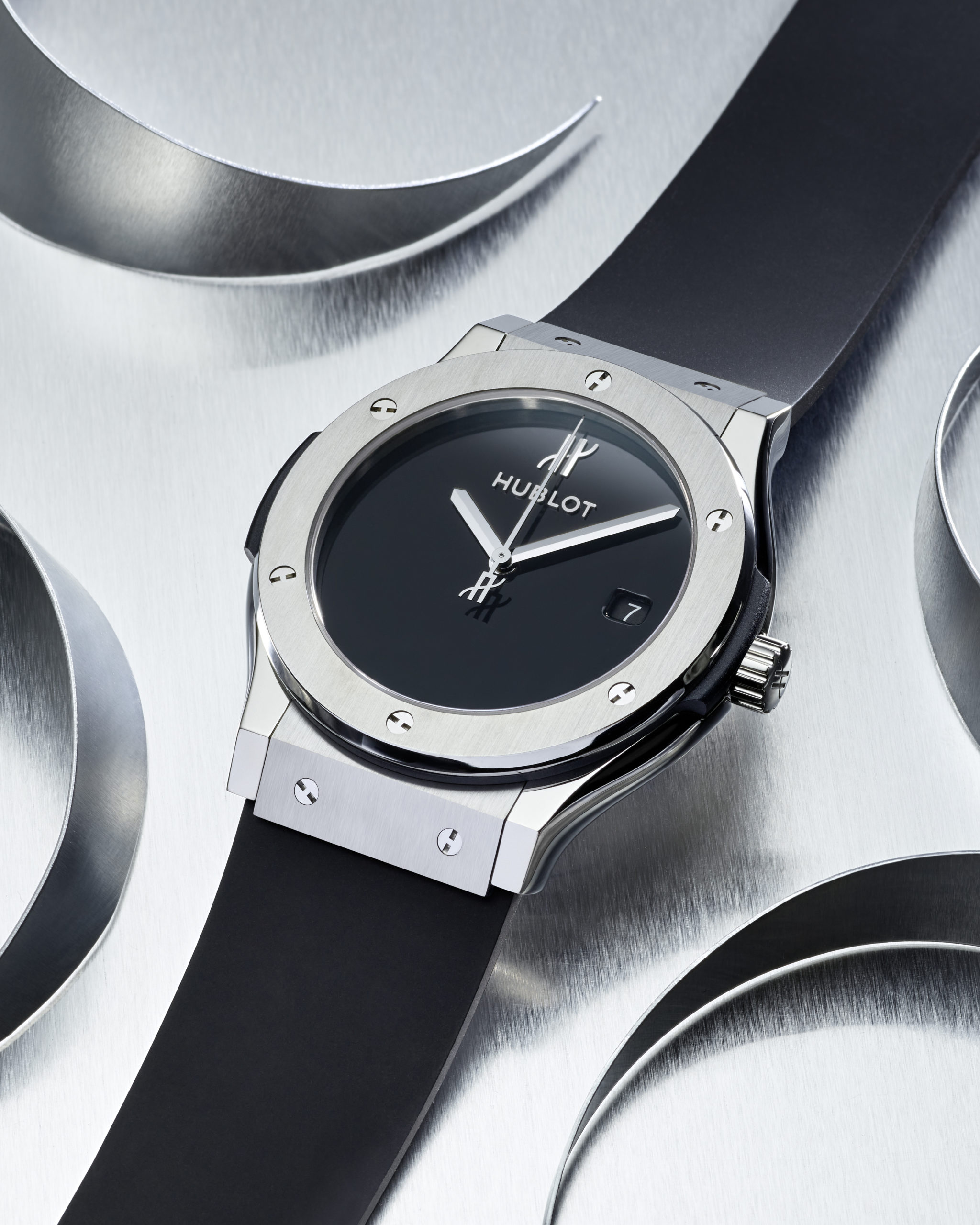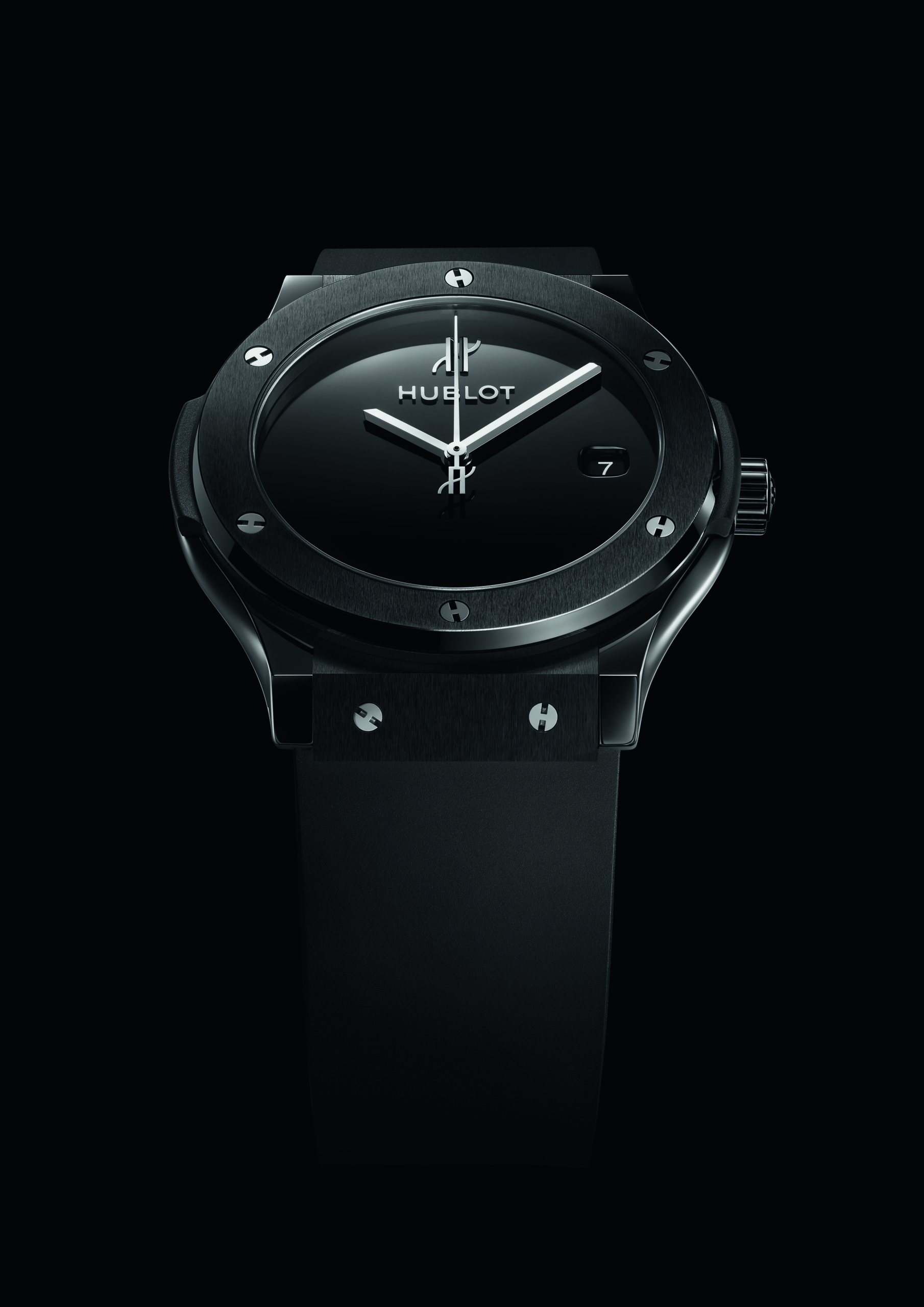 The new Classic Fusion watches express the timeless elegance and refinement of the 1980 Classic Original and the modernity of forty years of unceasing exploration and innovation. The polished lacquered black dial is ultra-sober, distracted only by the presence of faceted hands and the applied H and Hublot logo. The 45 mm case in yellow gold, titanium or black ceramic is crossed by the famous screws on the bezel and features a sapphire crystal back, all worn on the unchanging rubber strap that is easily adjustable to the wrist and comfortable to wear thanks to the triple folding clasp. These signature details bring the first Hublot watch up to date, and suggest that these timepieces will stand the test of time with just as much character.