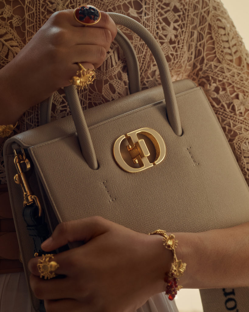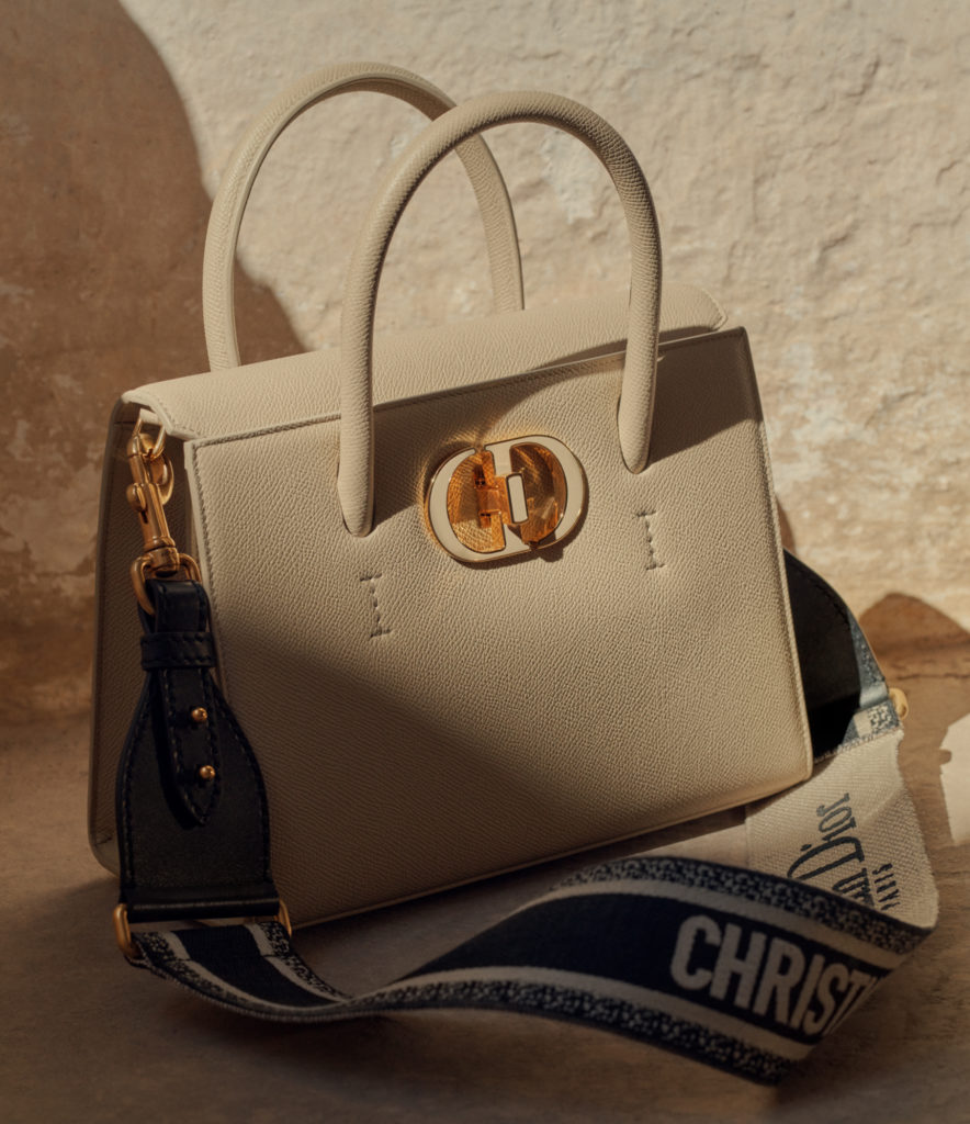 A new must-have imagined by Maria Grazia Chiuri, this original tote named Dior St Honoré – in homage to the emblematic address of the Dior boutique – displays timeless elegance. Highlighted by sleek, graphic curves, adorned with the eternal “CD” signature and a delicate swivel clasp, it is dressed in box leather or grained leather, precious materials sublimated by shades of blue, black, latte and rope. This essential can be combined with a removable shoulder strap for a refined mix & match effect. A medium model features Christian Dior’s initials in a tone-on-tone enamelled version for a look that’s more contemporary than ever.