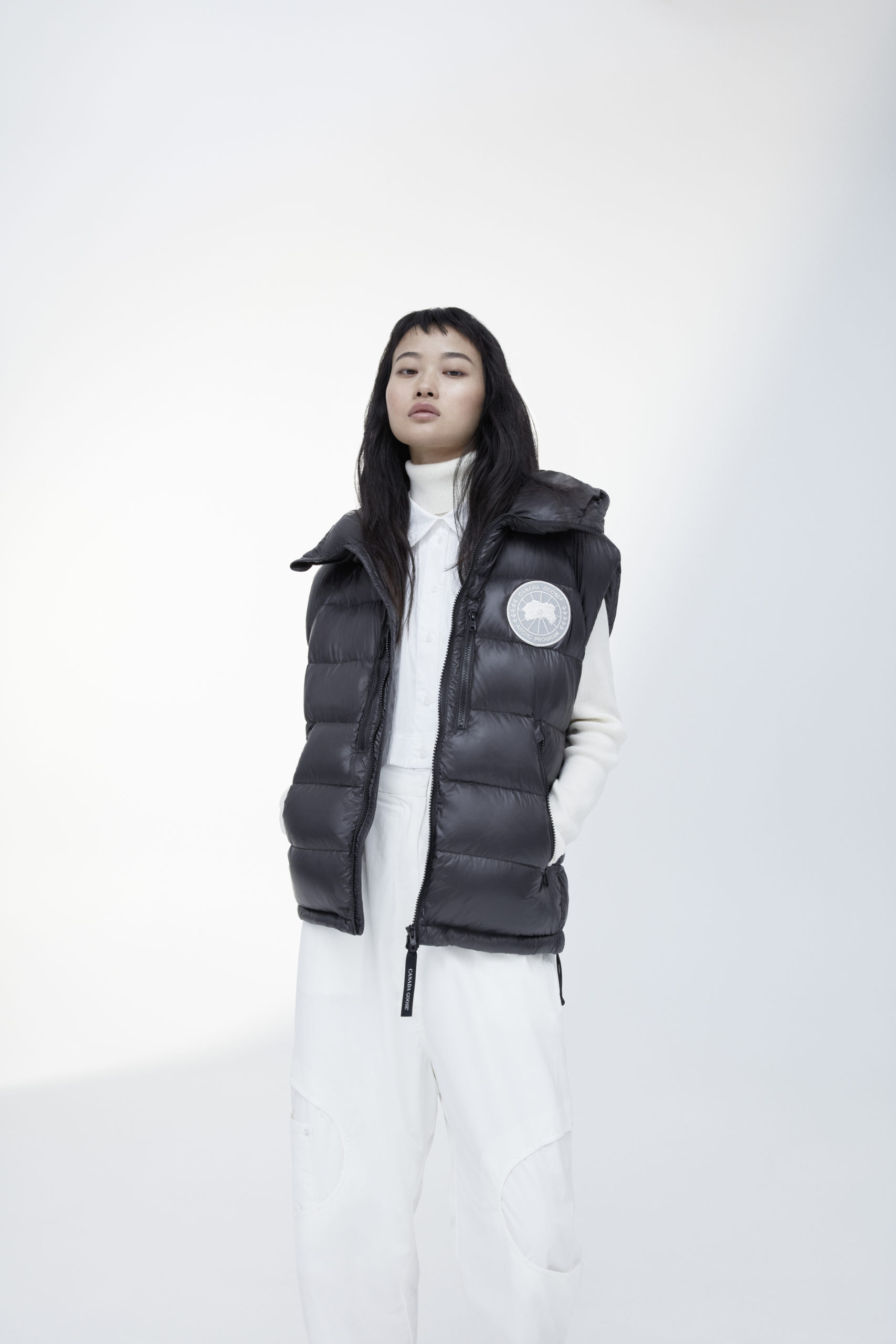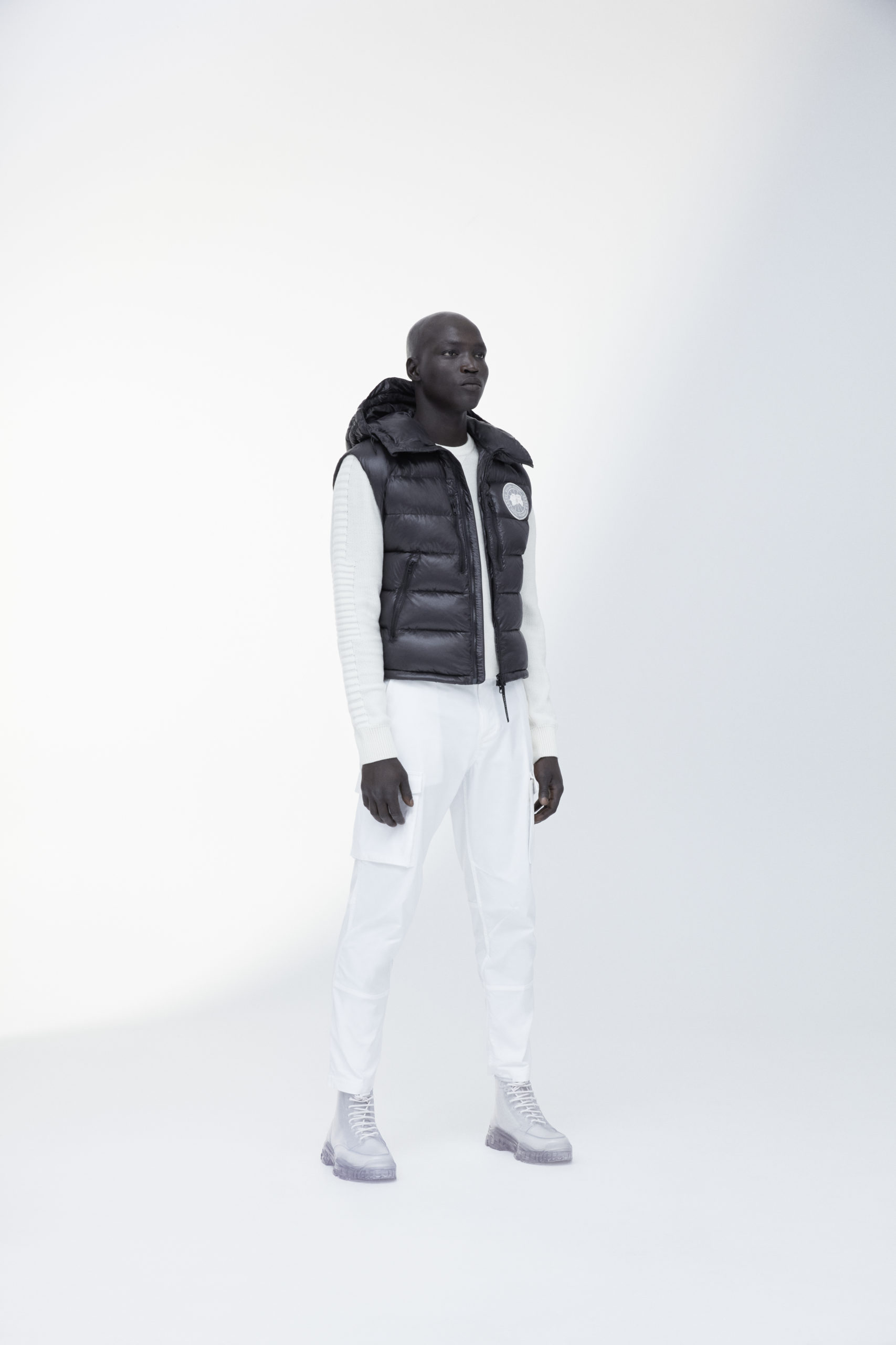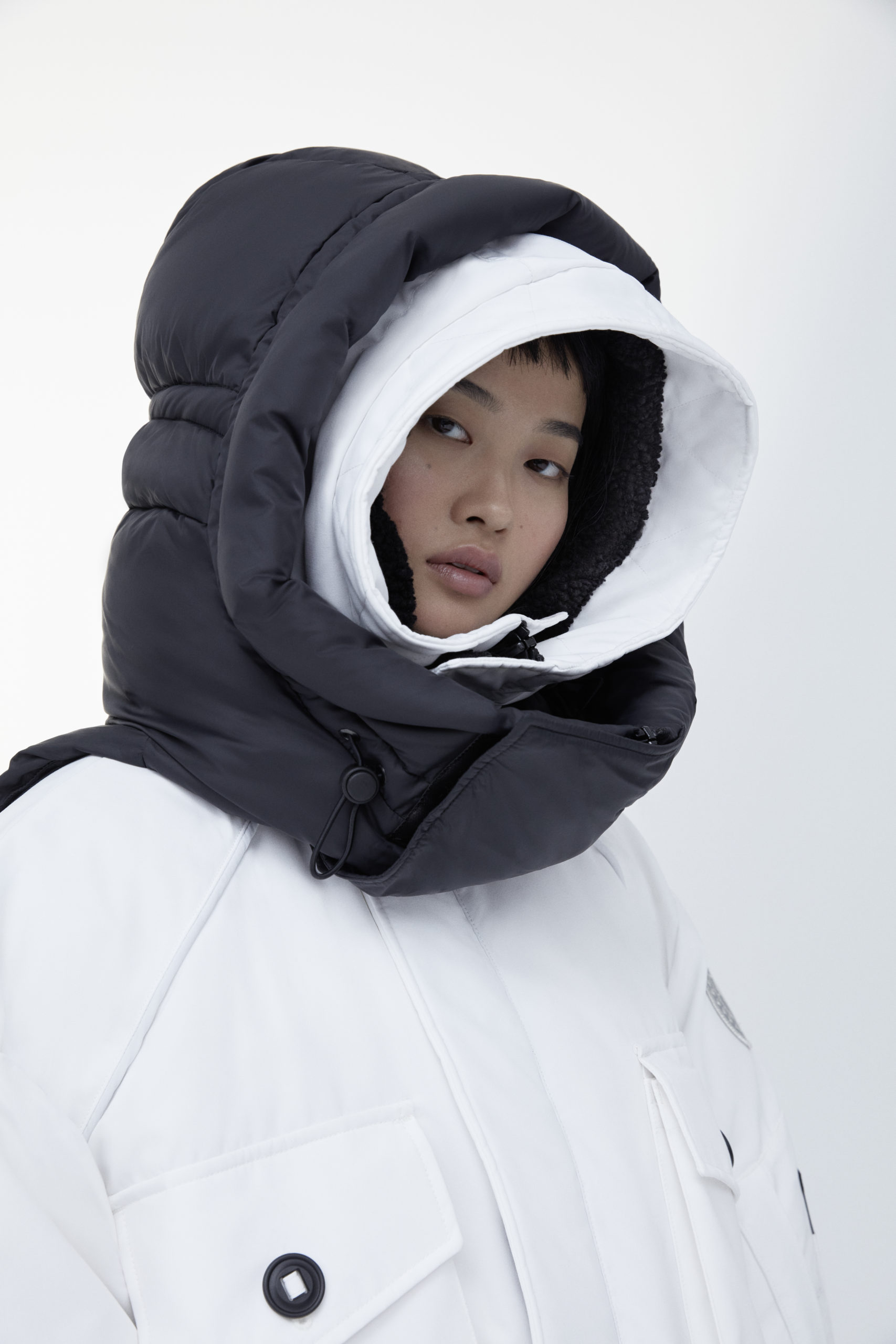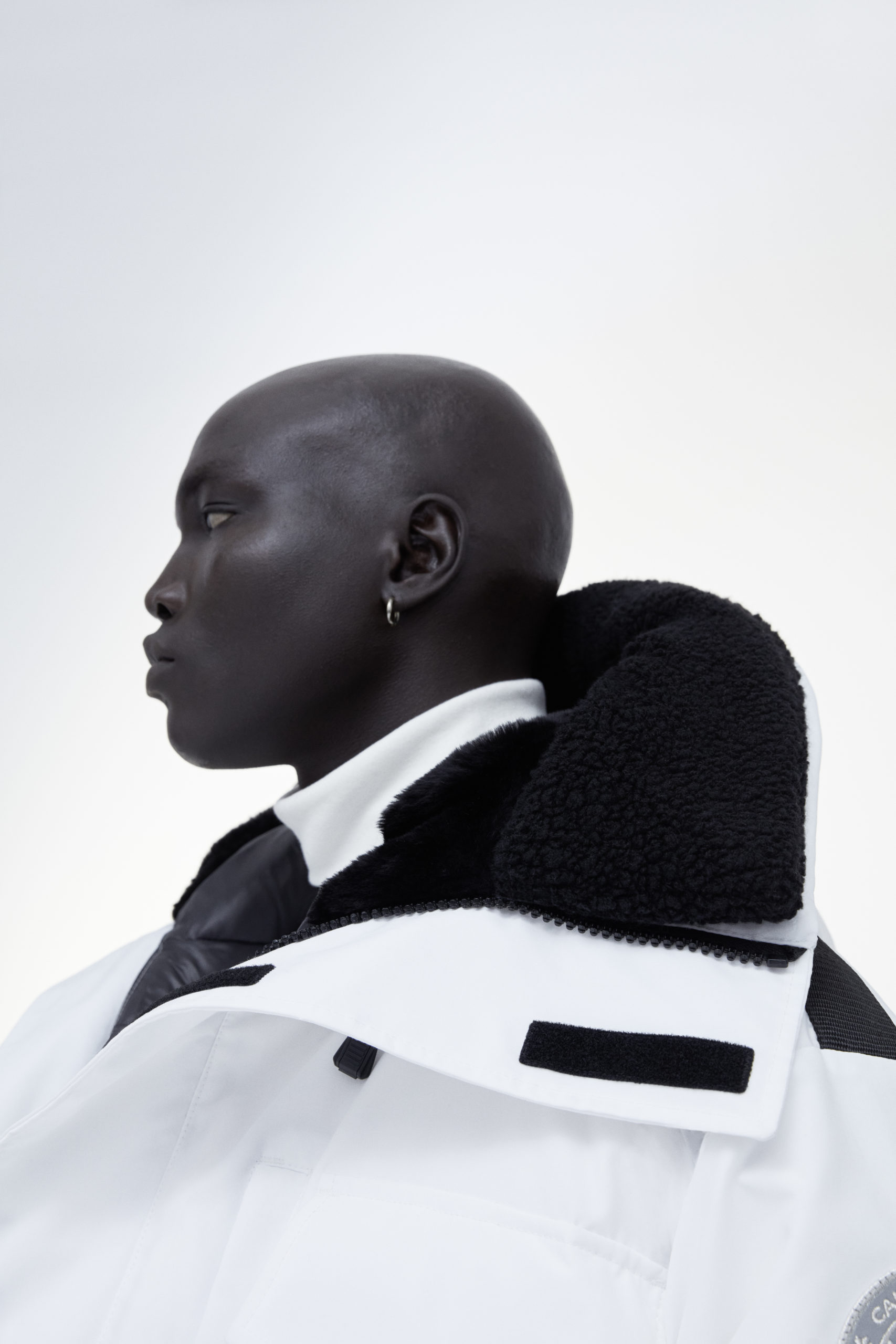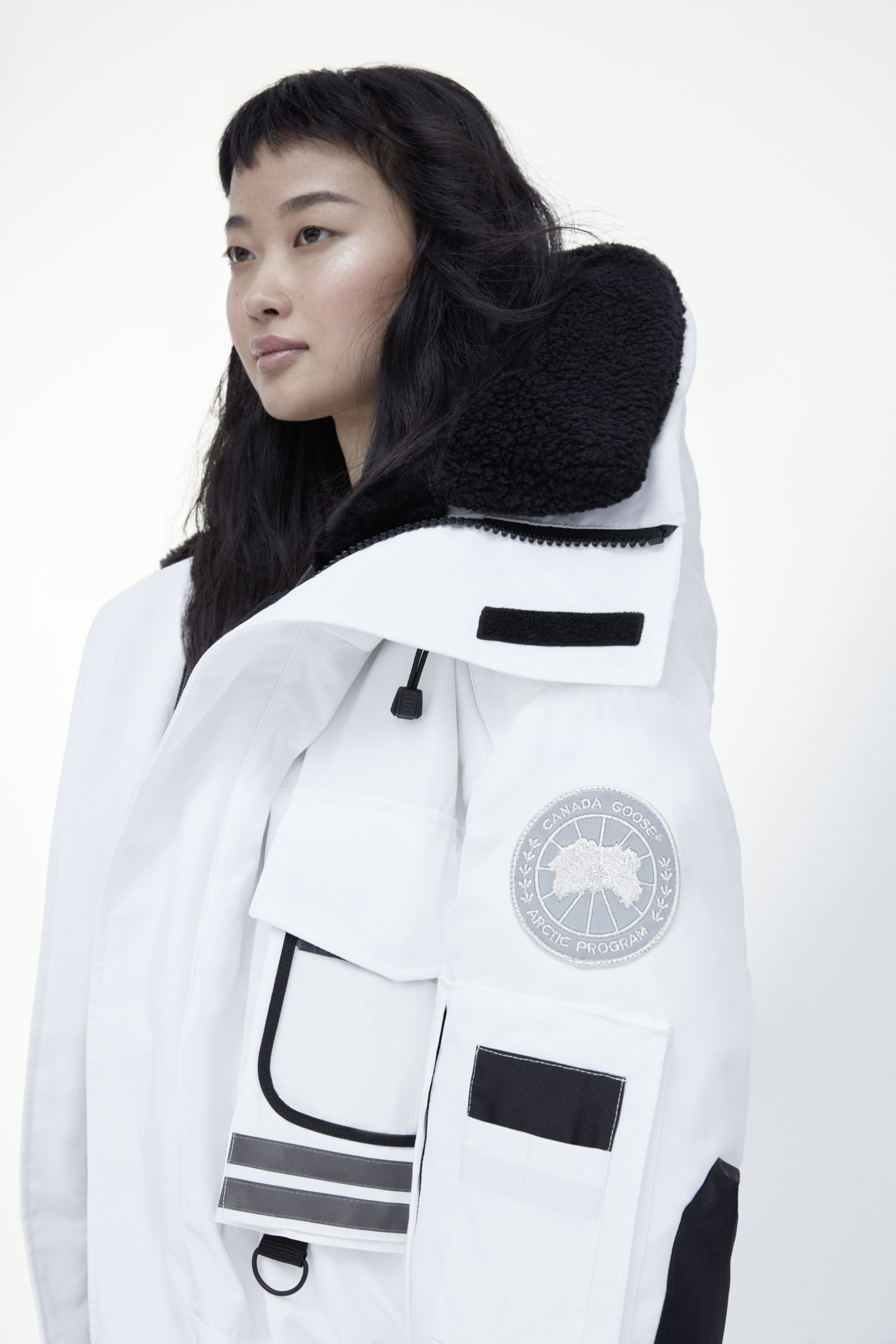 Unpredictability and originality are exactly what this collaboration is all about, from its oversized proportions, to the contrasting reflective details and Canada Goose silver disc, the white color of this new collection has been designed for maximum impact.