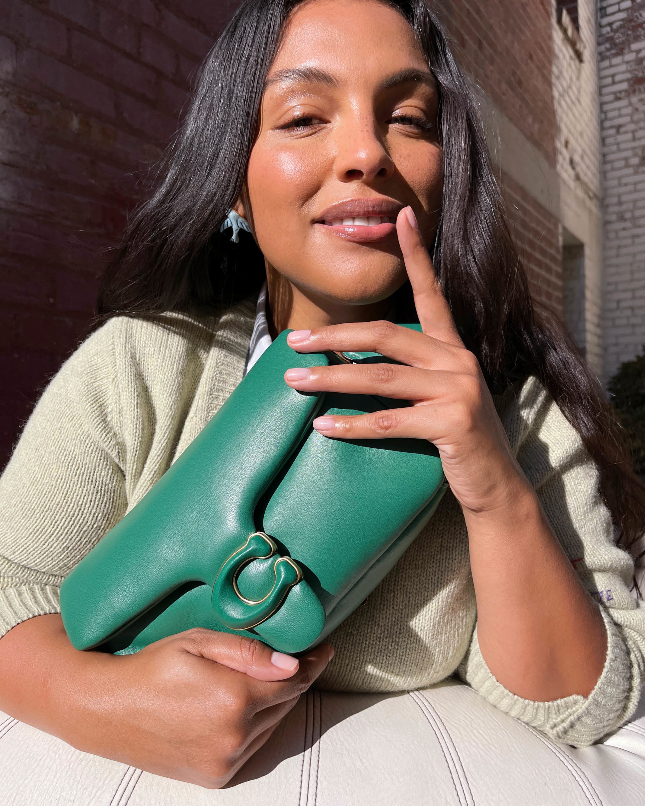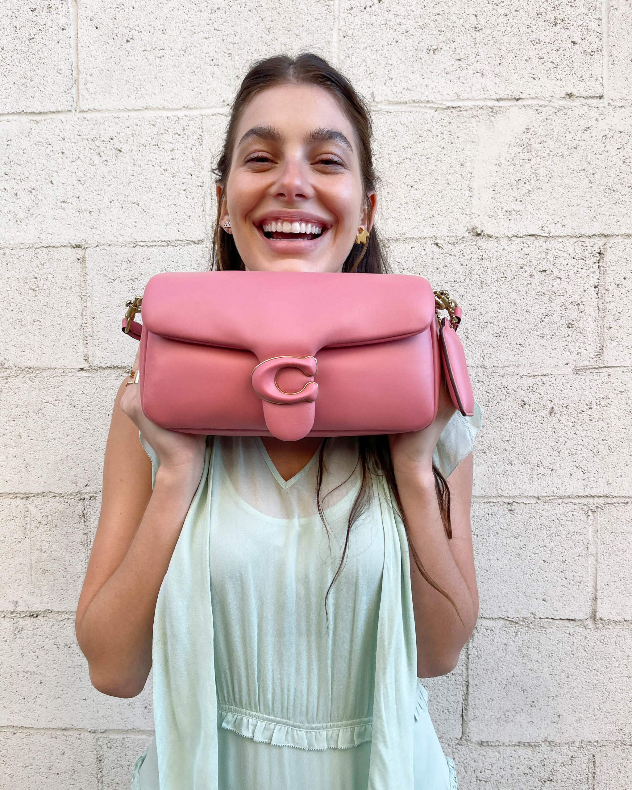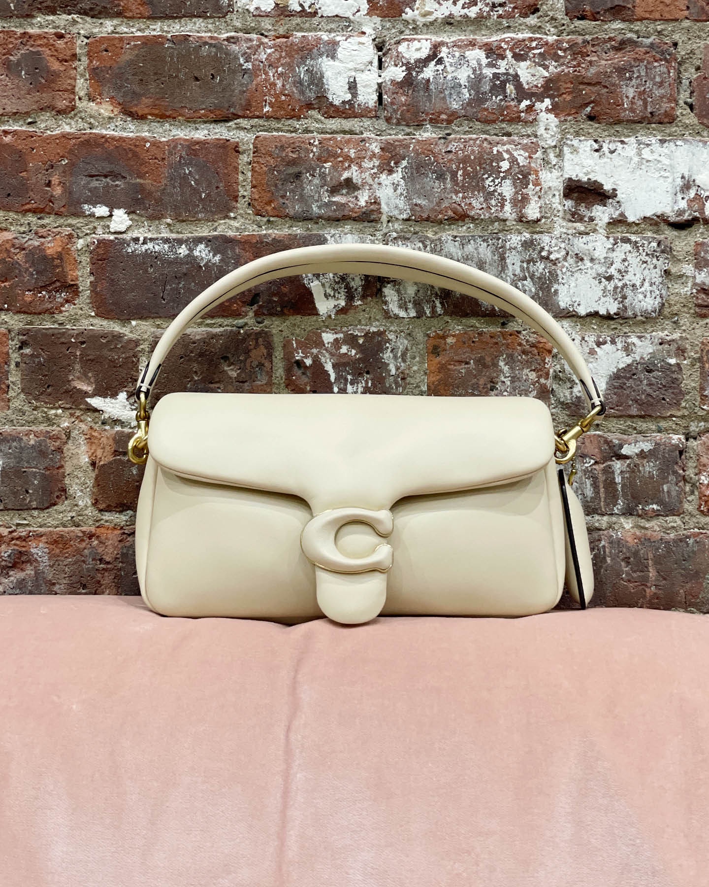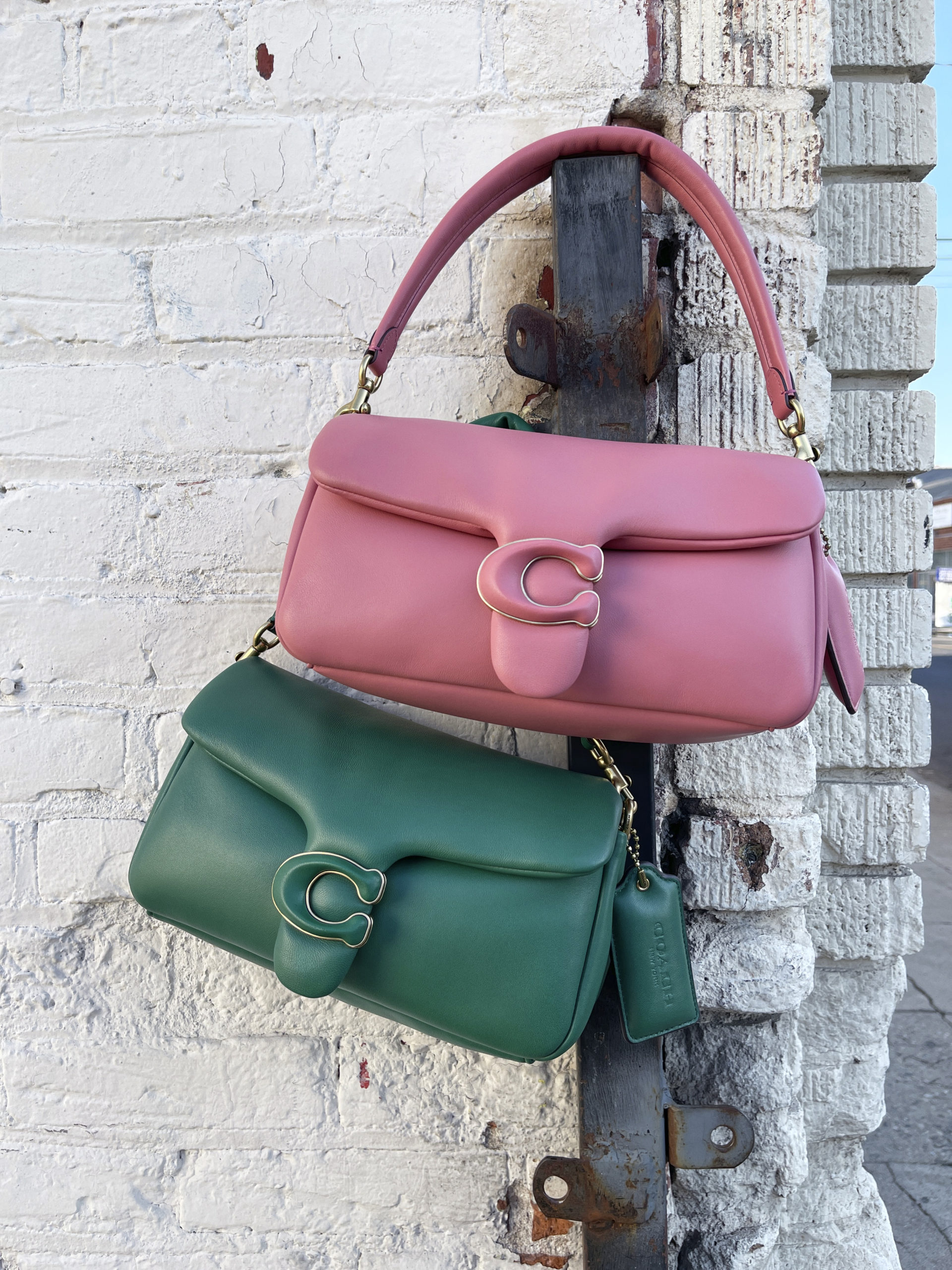 Crafted in soft Napa leather in a range of bold hues from pink to chalk, the Pillow Tabby is a plush reimagination of Coach’s recent icon the Tabby, a modern take on an archival 1970s design.