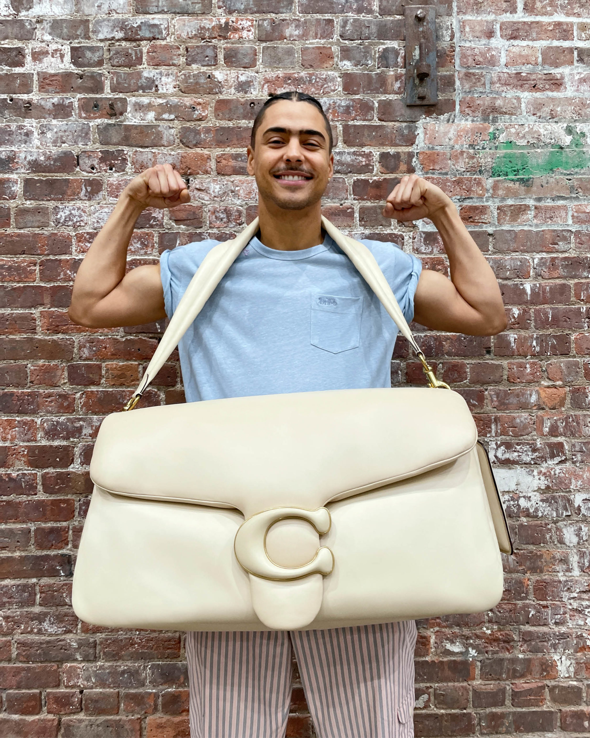 Inspired by the house’s playful approach to authentic American heritage, the campaign emphasizes the sensual appeal of the Pillow Tabby, a new take on Coach’s beloved shoulder bag named after its plush, pillow-like silhouette and soft Napa leather fabrication. Featuring the new bag, as well as unexpectedly oversized Pillow Tabbies that were custom-made for the campaign, the images capture the Coach Family hugging, squeezing and embracing the bag in intimate and affectionate ways. In true Teller and Coach style, the campaign spotlights the individuality and character of the cast and the bag, as well as the house’s lighthearted approach to fashion.