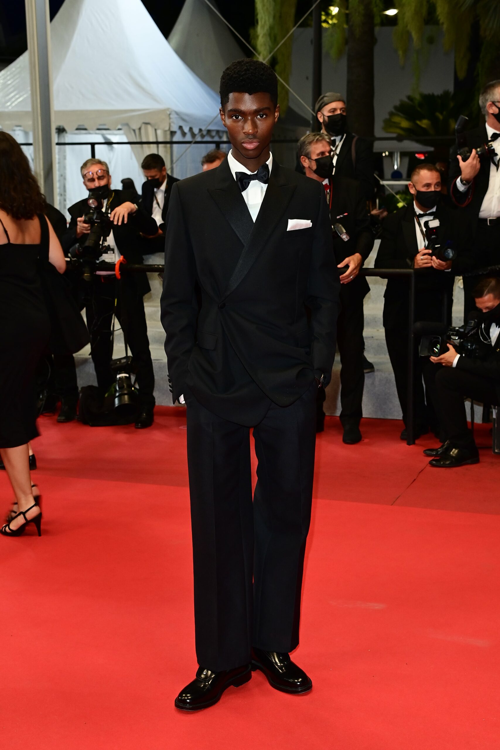 - ALTON MASON IS DRESSED BY DIOR HE WORE A BLACK MOHAIR WOOL PEAK LAPEL OBLIQUE TUXEDO, WHITE SILK SHIRT, BLACK SILK BOW-TIE AND A PAIR OF BLACK LEATHER DERBIES WITH SADDLE DETAIL