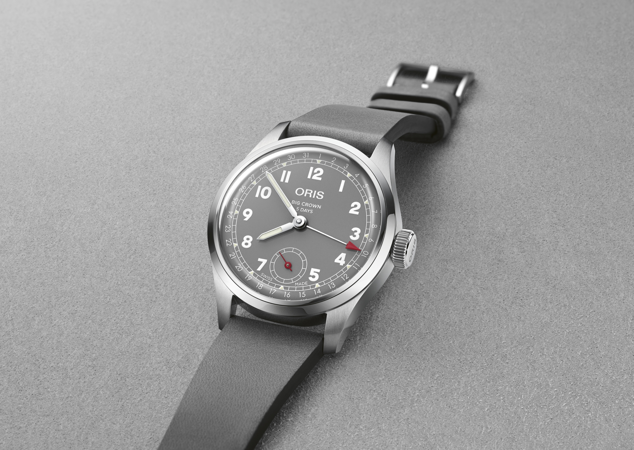 This new model features a flat bezel, with tauter, cleaner lines. The palette of greys reflects the industrial methods pioneered by Oris in the first half of the 20th century, while the new numbering is based on references from the Oris archives.