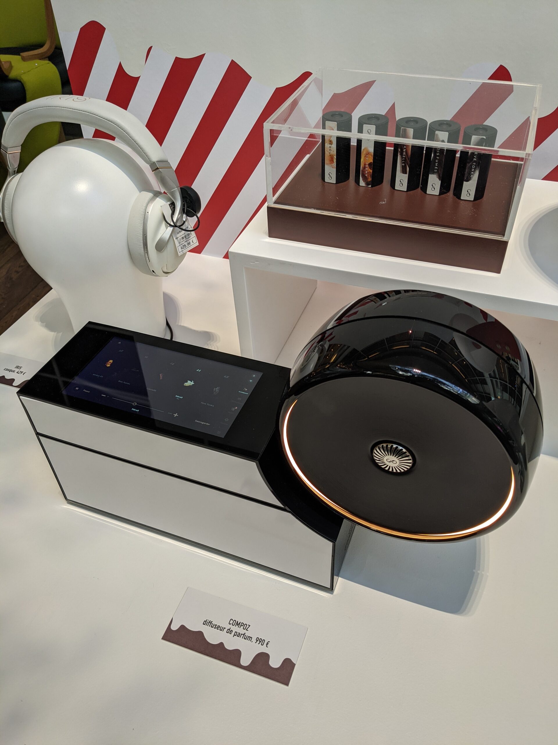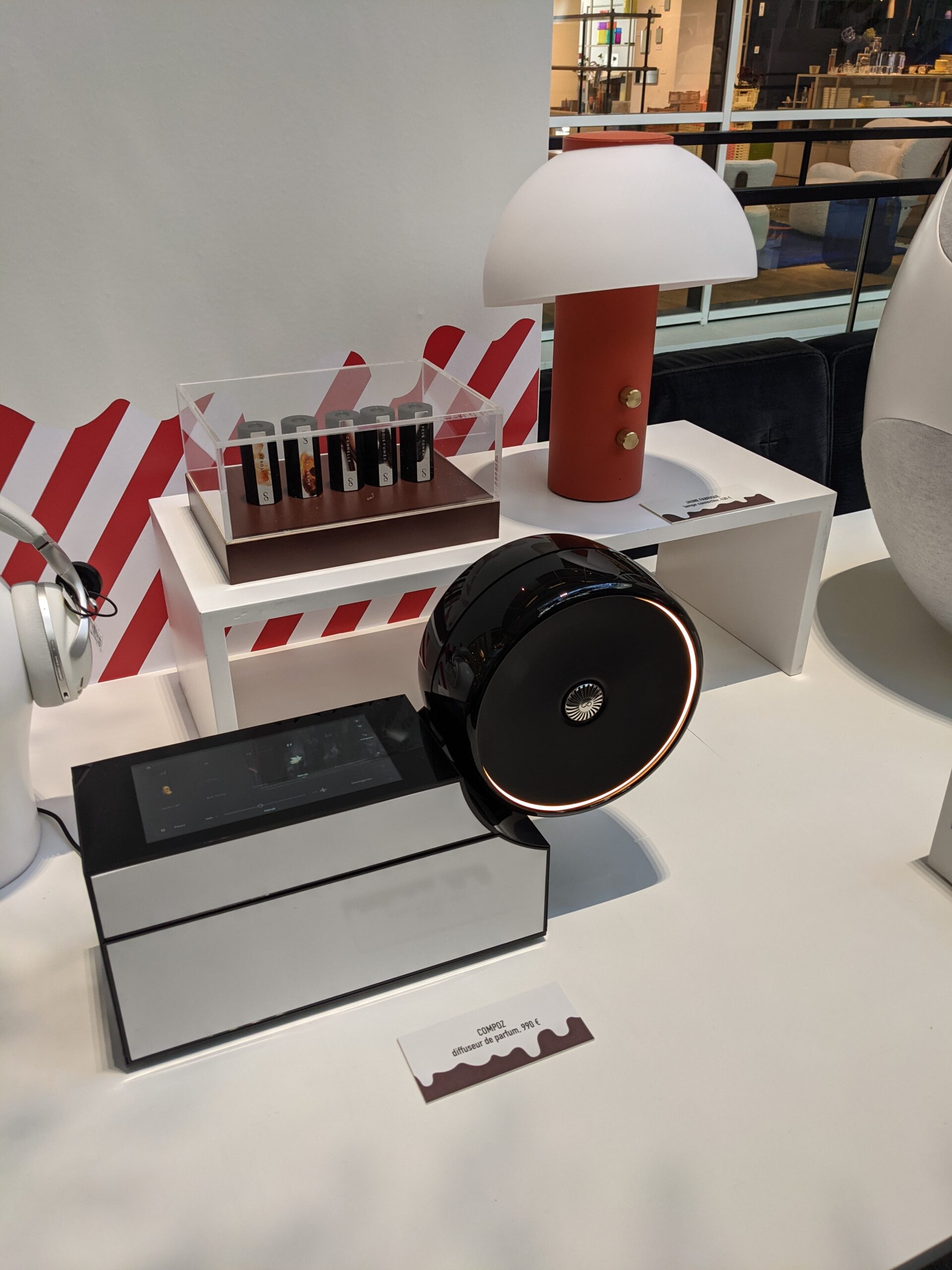 From left to right, top to bottom: Marie Lichtenberg necklace, Carron vase, Caroline de Benoist plates, Jaune Fabrique connected lamp, Transparent speaker, The Art of Ping Pong table, Bam Karaoke microphone, Caroline de Benoist pyjamas, Call it by your Name tote bag, Persee earrings, Hector Saxe chess set, Destrëe necklace.