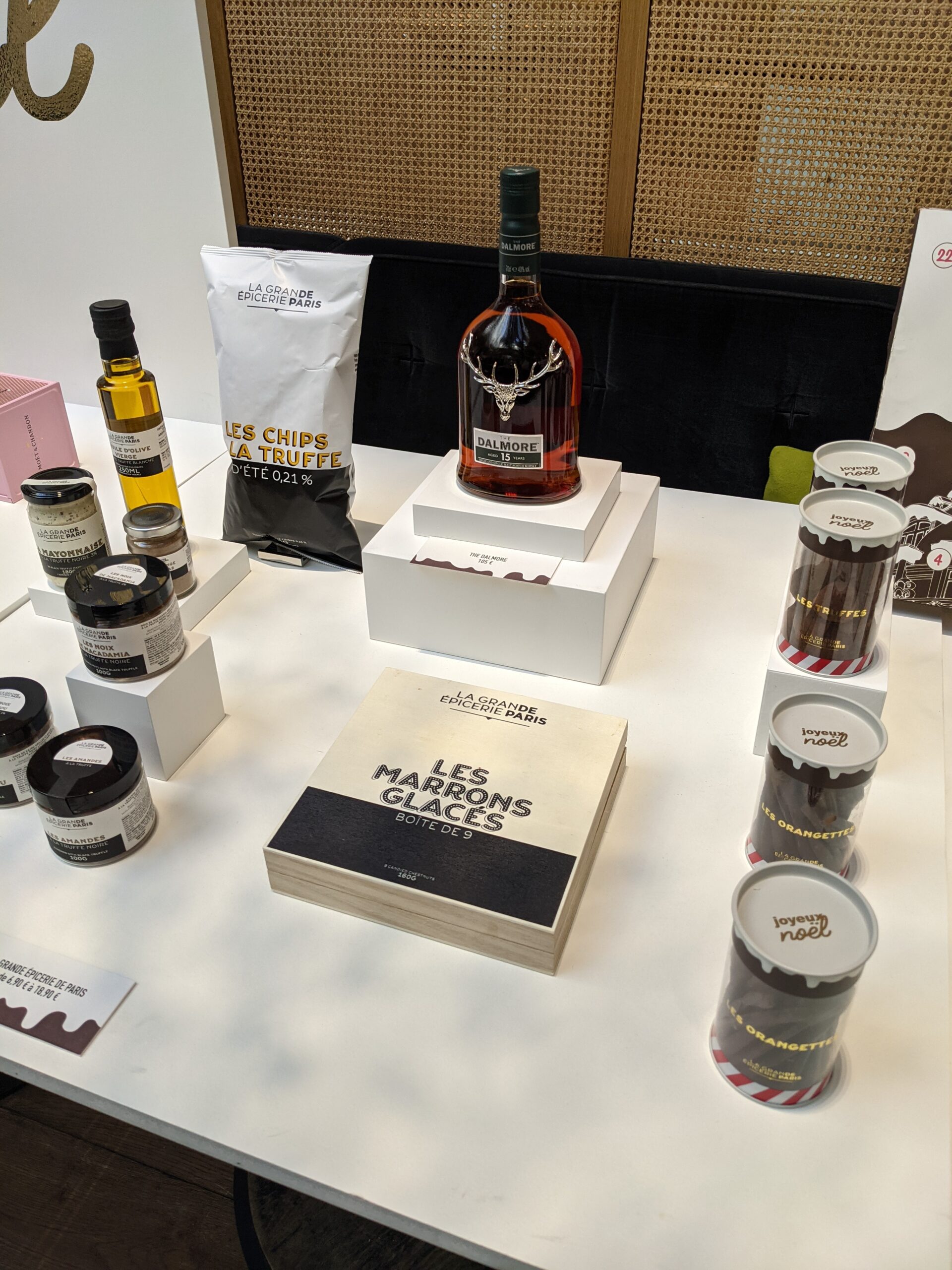 This year, Le Bon Marché Rive Gauche is taking the phrase “Merry Christmas” literally, sprinkling each space with an infectiously cheerful treat. Aristide, the gingerbread man, takes care of this, as do the candy canes whose red and white swirls appear on every floor, cheerfully coloring the department store and its famous windows. To celebrate the festive season in every sense of the word, La Grande Epicerie de Paris teams went to the four corners of Europe to unearth an avalanche of exotic offerings. At Bon Marché, the multiplicity of exclusivities is matched only by a host of customization offers, each more cutting-edge than the last. Just like the Christmas gifts area, with its extraordinary selection designed for the “Magic Family” and lovers of leisure and travel. Lulled by the certainty of pleasing those you wish to pamper, gift-giving becomes a delightful stroll. This can begin on the 2nd floor, in the Christmas decorations area, where four gigantic Christmas trees are displayed. The first tells the story of a country Christmas, when Santa Claus makes his delivery by tractor, accompanied by farm animals, including a rooster, and woodland animals, including a fawn and an owl. A second tree stands beside him, covered in gingerbread men, candy canes and baskets filled with goodies. A third tree, like a world map decorated with panels bearing the names of the world’s metropolises, evokes Santa’s magical journey. Flying from one continent to another, he adopts its customs, in the Buddha position, ready to perform tricks on his snowboard, or abandoning his traditional sleigh for a yellow New York cab. Draped in shimmering colorful balls, a fourth tree transports us to a fairytale garden where the spirit of Fabergé eggs meets that of Indian motifs. This enchanting setting hosts a wide range of personalization options, from wreaths to socks and bags emblazoned with the first names or initials of their recipients. The chefs at La Grande Épicerie de Paris are particularly keen to make the festive season unforgettable. Cakes and Yule logs compete in textures and flavours, as does the galette des Rois. La Grande Épicerie de Paris’s collection of twenty Christmas products guarantees successful gift-giving. This ambition is shared by La Cave, which offers personalized gift boxes and bottles of champagne and whisky.
