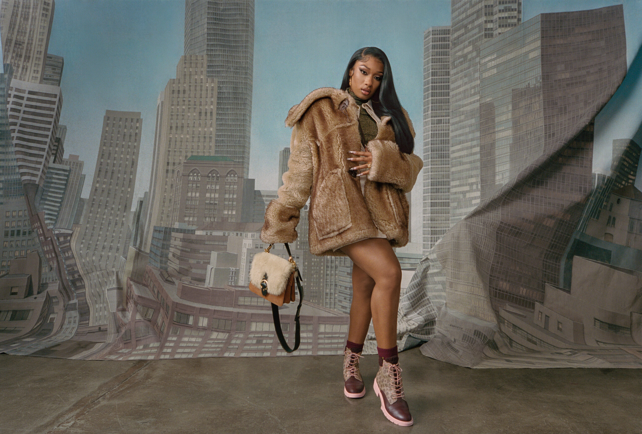 The collection includes cozy, oversized outerwear in the shape of luxe coats and beautifully worn aviator jackets-bags, heels and slides in plush shearling styles. To bring the collection to life, Coach worked with Megan Thee Stallion and her friends on a story inspired by the street style of New York City in the late 70s and early 80s.The result is a celebration of past and present with a distinctly New York spirit.