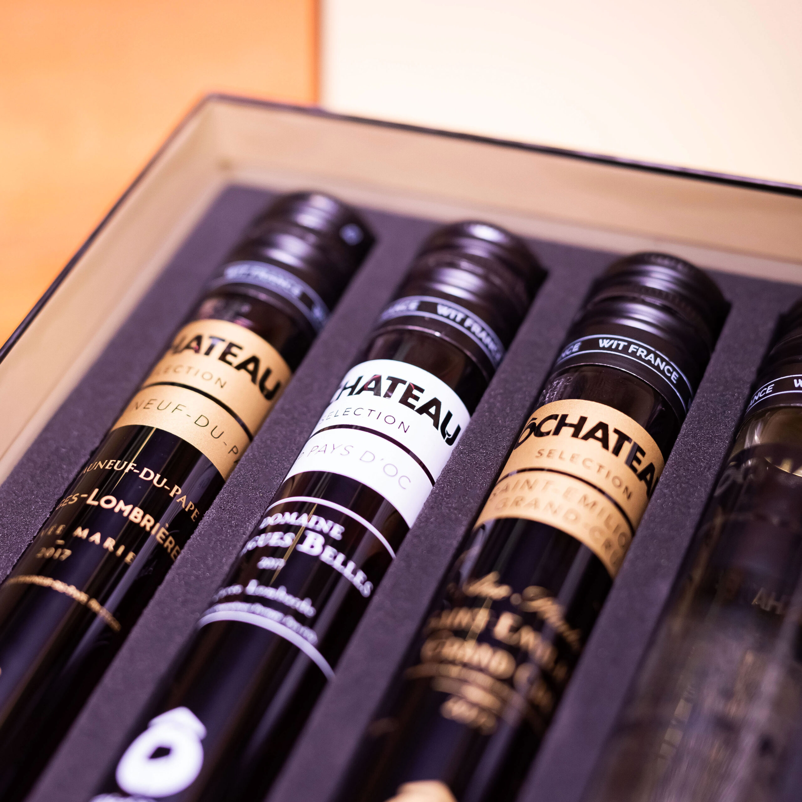 The result: six 6cl tasting bottles, access to an online tasting – from the comfort of your sofa – hosted live by a sommelier or via a digital support to accompany the tasting.
