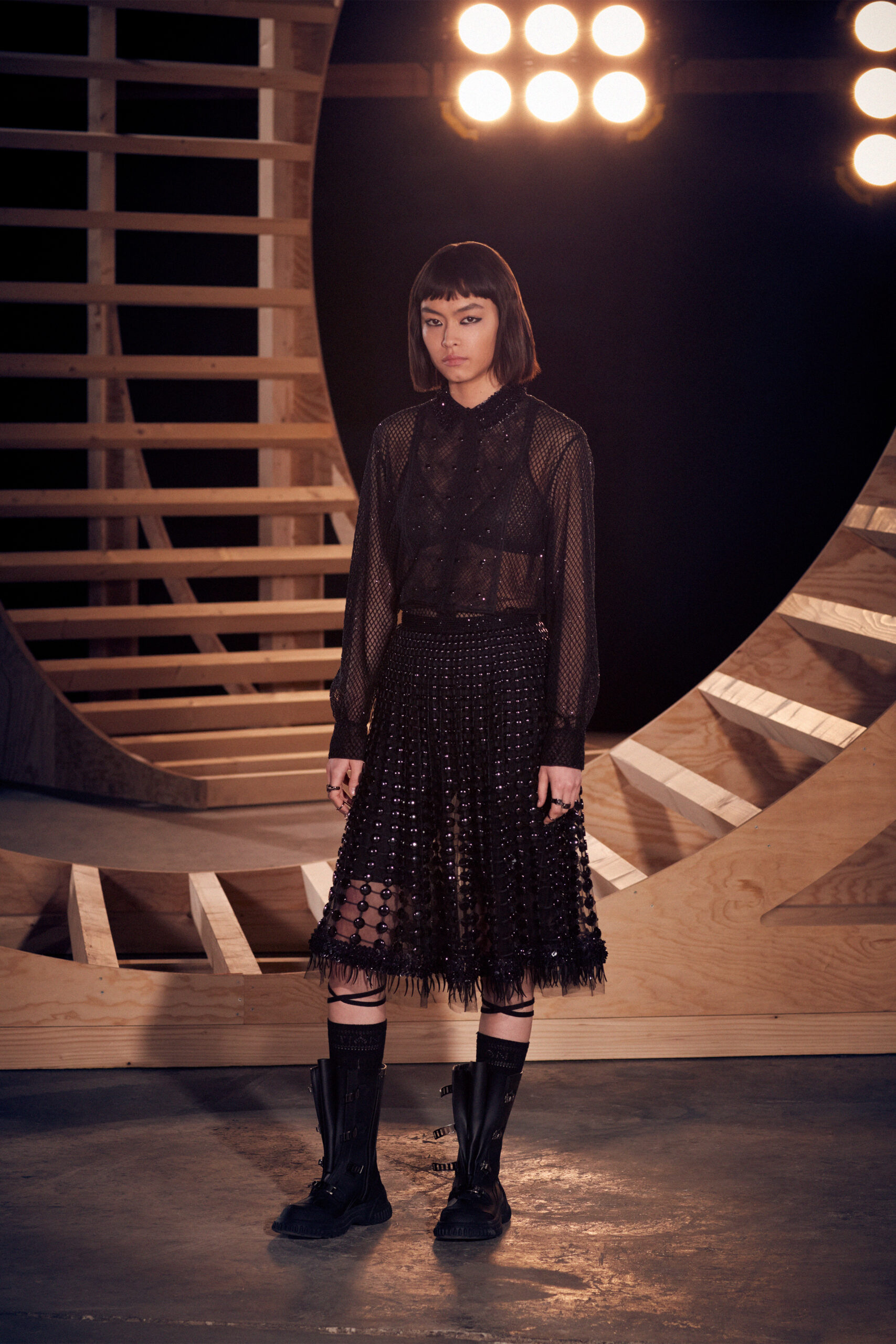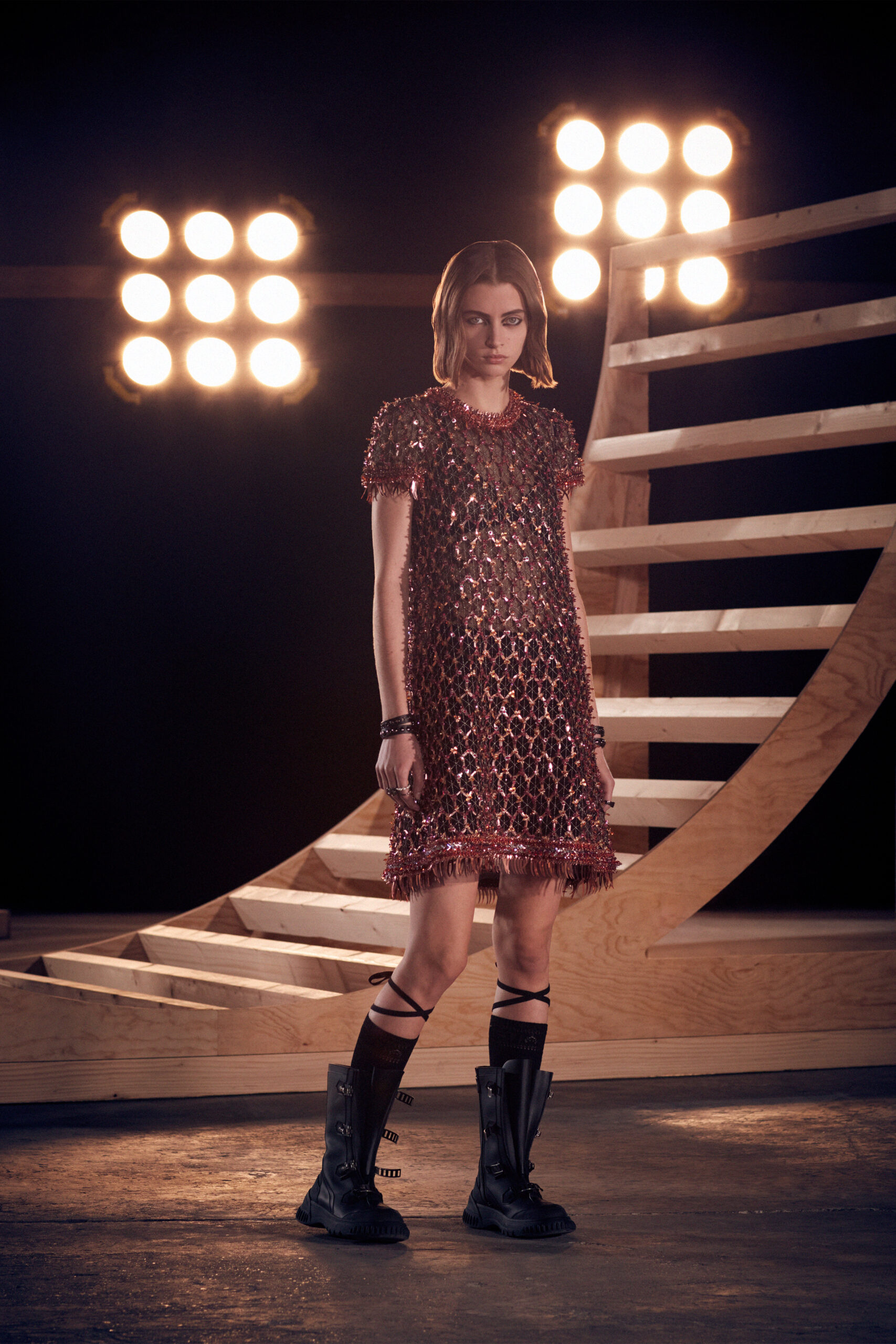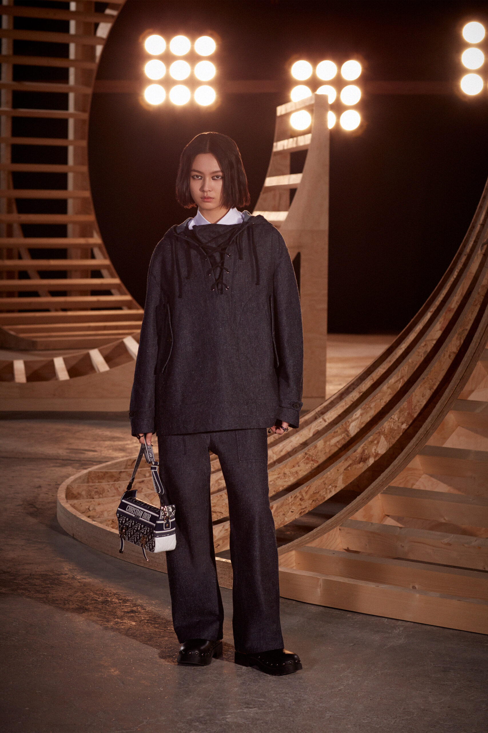 Maria Grazia Chiuri has transformed the emblematic jute bags of the Dior family business into a symbol of a new sisterhood: that of the House of Dior, whose motto is L’union fait la force. The maxim of this Dior Fall 2022 line pays homage to the participative dimension at the heart of the Artistic Director’s inventive process, and underlines the major inspiration of the show: uniforms. These outfits allow us to integrate into a group, by erasing differences, but also to stand out through their personalization and detour(s). These bold silhouettes express strong concepts such as communion and sharing.