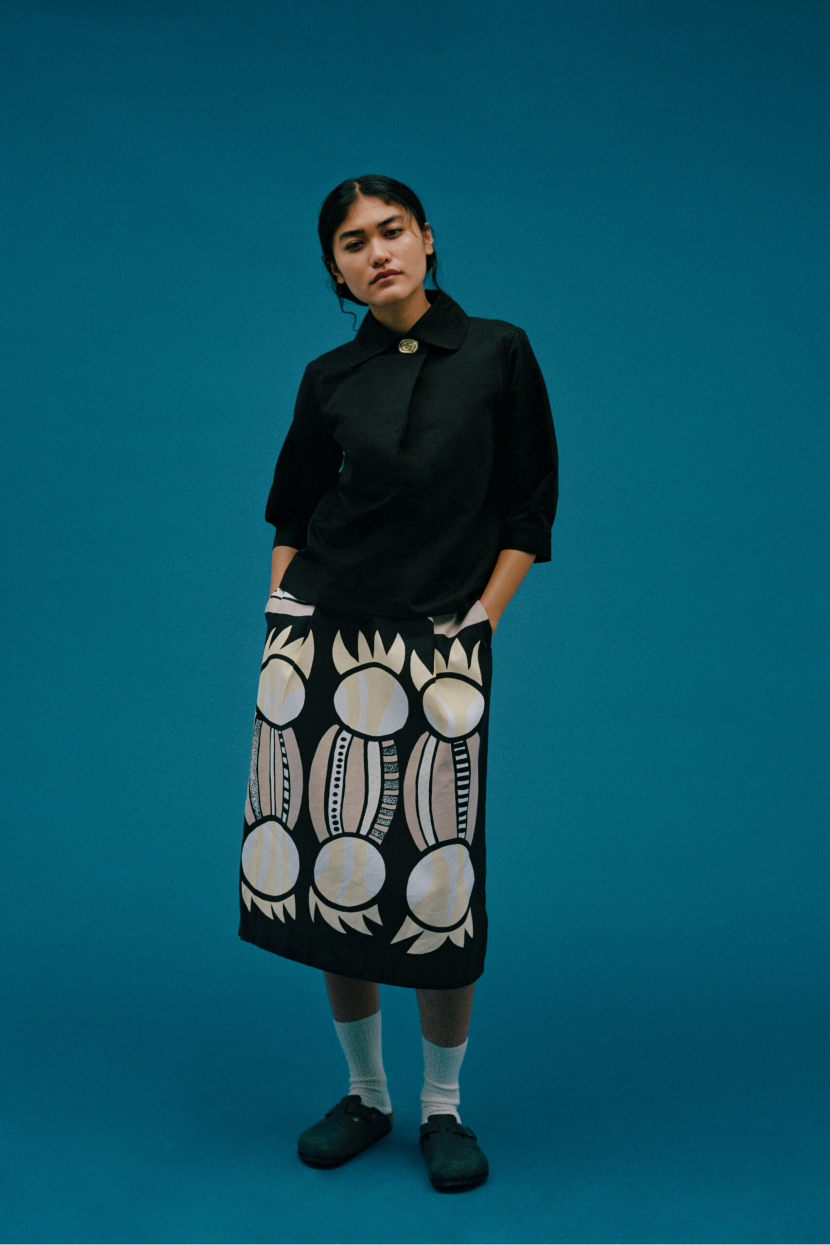 Throughout 2022, each Marimekko collection has, in its own way, explored the similarities between folk wear around the globe. The final collection of the year called New Folk – New Traditions proposes a fresh take on tailoring: classic tailoring traditions, cuts and techniques are translated into softer, more comfortable pieces perfect for everyday wear. The season’s captivating play of prints, silhouettes, proportions, layers, and jewelry-like details offer an intriguing dialogue between old and new ways of dressing.
