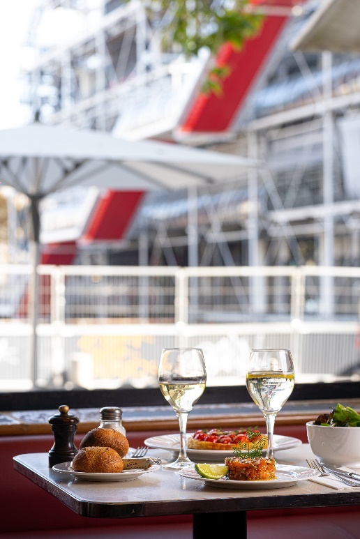 Facing the bustling Place du Centre Pompidou from morning to night, Café Beaubourg offers the conviviality of a literary café, a business meeting or a privileged observatory of Parisian life at any hour of the day or night. Timeless, the Café Beaubourg is a place to live, with vast spaces and architecture by Christian de Portzamparc. Artists know this, and many have left their mark here, from Daniel Buren to Jean-Michel Othoniel. At Café Beaubourg, you can sunbathe on the terrace and observe Paris and its energy, sit on the mezzanine for a quiet lunch, or enjoy a French brasserie menu in the restaurant’s lively dining room.