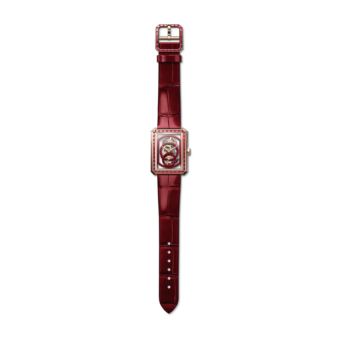 ÉDITION ROUGE CHANEL presents its Red Edition Haute Horlogerie capsule, one of the five emblematic colors of the House along with white, black, beige and gold. “If you are sad, if you have a heartache, put on makeup, treat yourself, put on lipstick and attack (…).” Gabrielle Chanel loved the power of the color red, like a punctuation mark. Red to gain self-confidence, to assert oneself. Red as a detail to highlight the structure of a jacket, an element to illuminate the lining of a 2.55 bag. In 2022, red is the exceptional sign of CHANEL Time. “This figure of speech is applied to three Haute Horlogerie creations. I like the audacity of a movement covered in red make-up, the sensuality of the marriage of beige gold and ruby, the authority of a red bracelet varnished on the wrist. The red does not doubt! It is an uncompromising elegance,” says Arnaud Chastaingt, Director of the CHANEL Watchmaking Creation Studio.