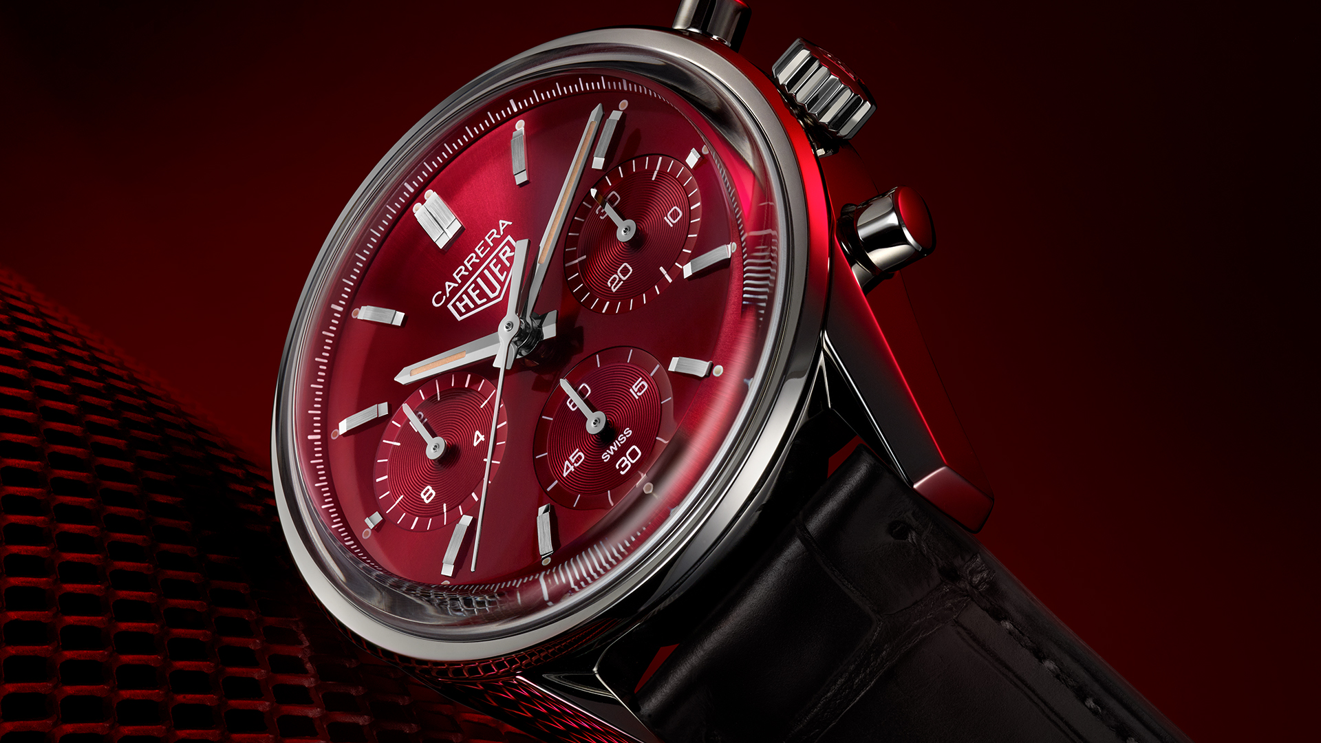 With this scarlet look, TAG Heuer breathes new energy into the traditional lines of the TAG Heuer Carrera. The TAG Heuer Carrera Red Dial Limited Edition is inspired by the same pure, sober and legible aesthetic that has made the Heuer Carrera one of the most popular watches among racing drivers, both on and off the track. The silhouette of the original Heuer Carrera reference 2447 remains unchanged, right down to the iconic lugs and pushers, whose size has only been adjusted to suit the contemporary 39 mm case.