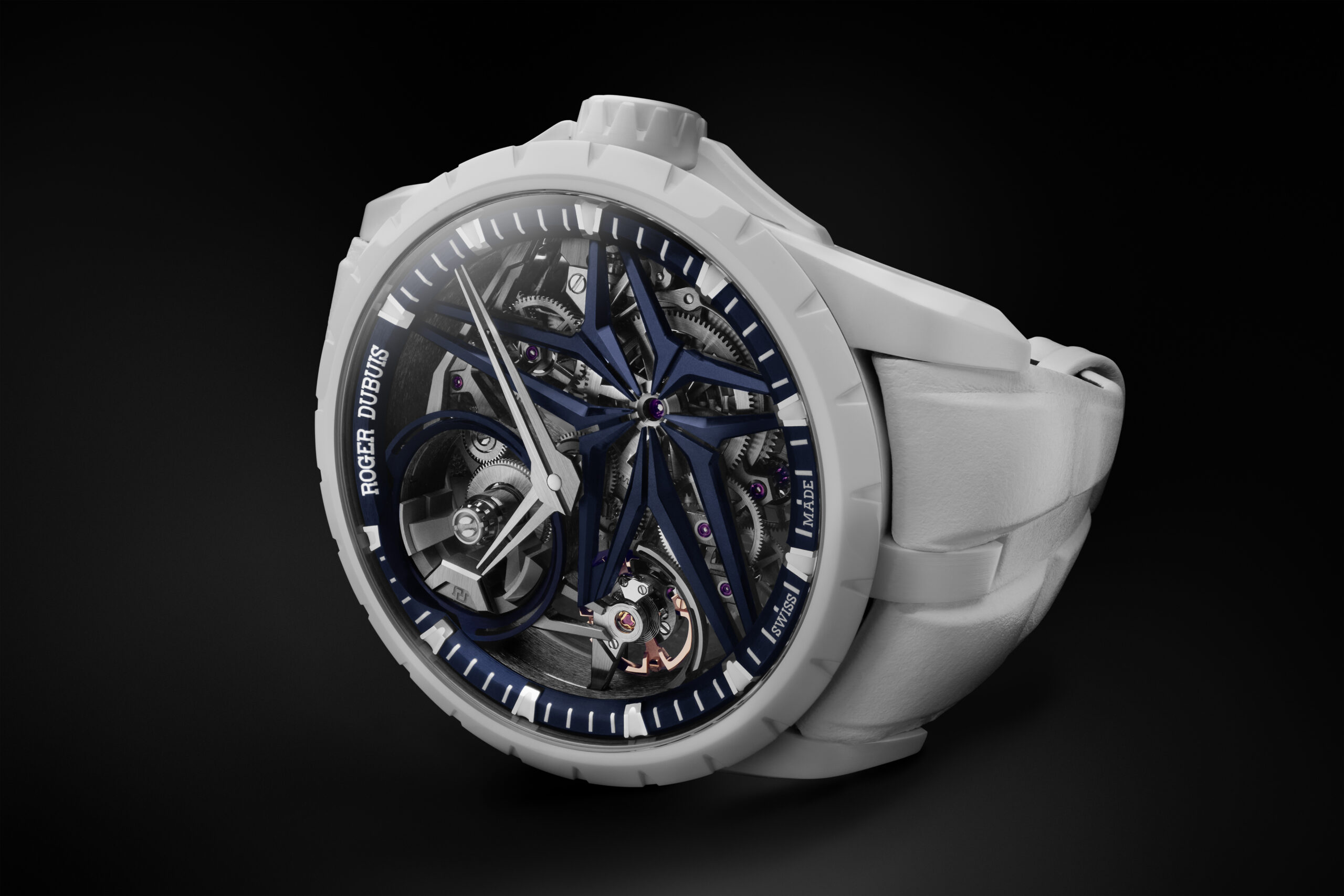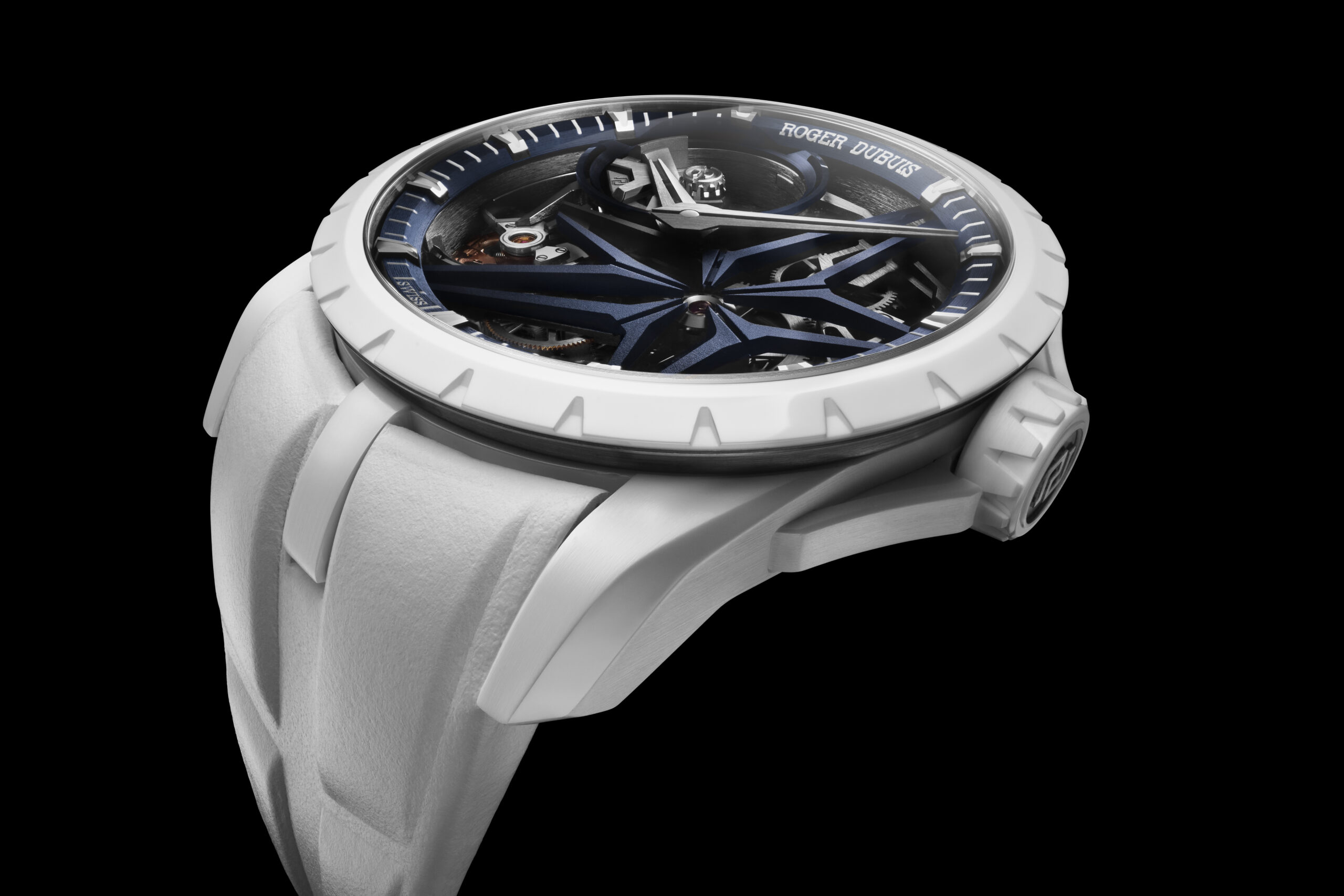 Bien que la céramique soit déjà répandue dans le monde de l’horlogerie, les garde-temps en céramique de Roger Dubuis se distinguent par toute une série de prouesses qui répondent à un principe clé : ne faire aucun compromis sur la forme signature de la Maison. Il s’agit là d’une première en horlogerie, les boîtes en céramique étant généralement dessinées pour s’adapter au matériau. Transformer la céramique de matière première en boîte signature requiert un talent exceptionnel de la part de Roger Dubuis, le procédé de transformation étant 15 fois plus long que pour l’or. Seuls les plus audacieux, les plus dévoués et les plus chevronnés osent s’embarquer dans un tel projet. Refusant de se ternir au fil du temps et ultrarésistante aux rayures quotidiennes, la céramique blanche lumineuse de Roger Dubuis incarne la rencontre de l’hyper durabilité et de l’hyper expressivité dans un seul et même garde-temps.