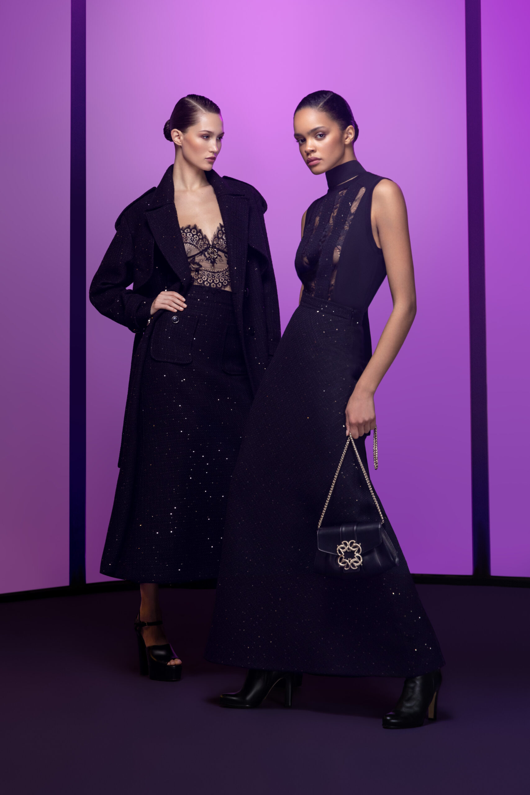 The PREFALL 2023 collection shimmers and sparkles in the dark of night, in the image of the ELIE SAAB woman, daring yet subtly mysterious, forever shining with glamour.