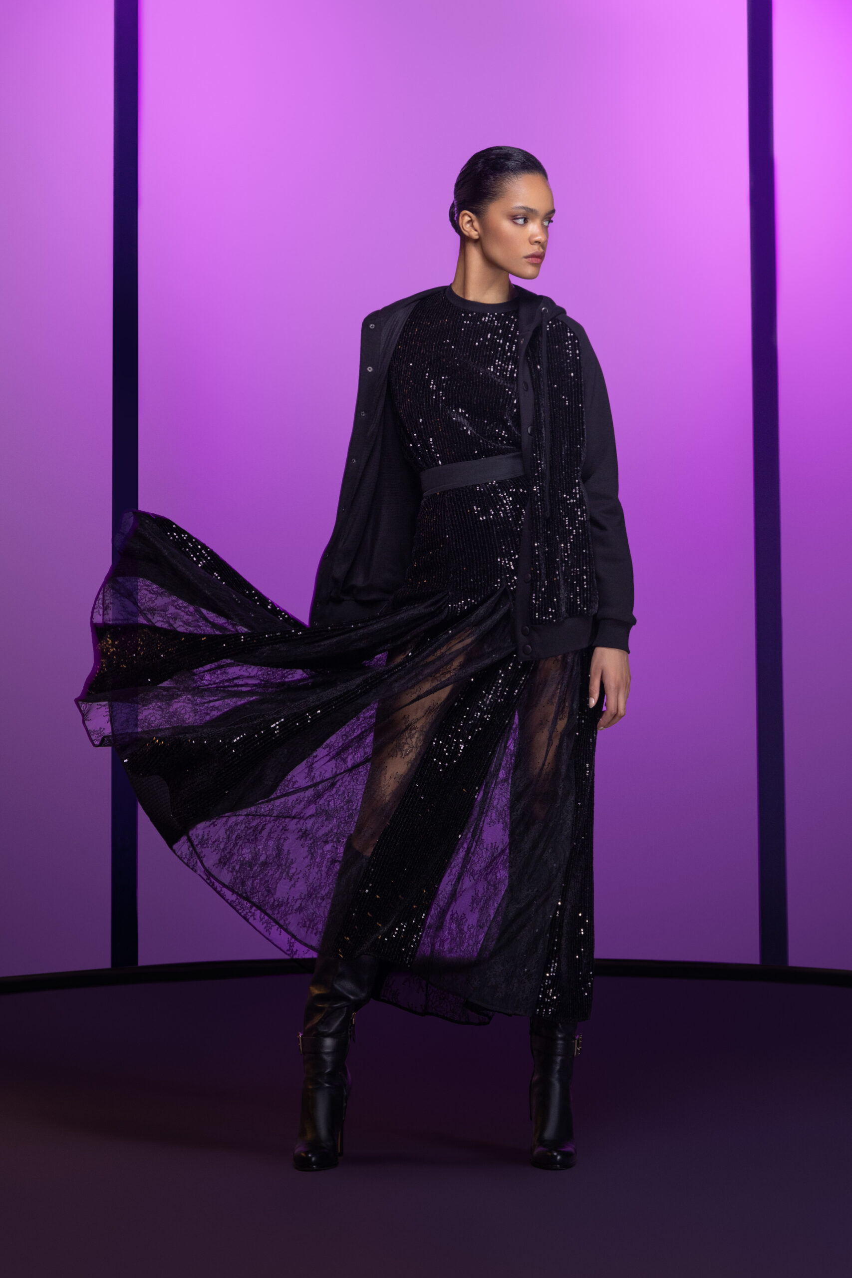 Wrapped in an air of NOIR ET DE NUIT, the ELIE SAAB woman is always in the spotlight of daring glamour and provocative balance. She transforms the feminine enigma into luminescence in ELIE SAAB PREFALL 2023.