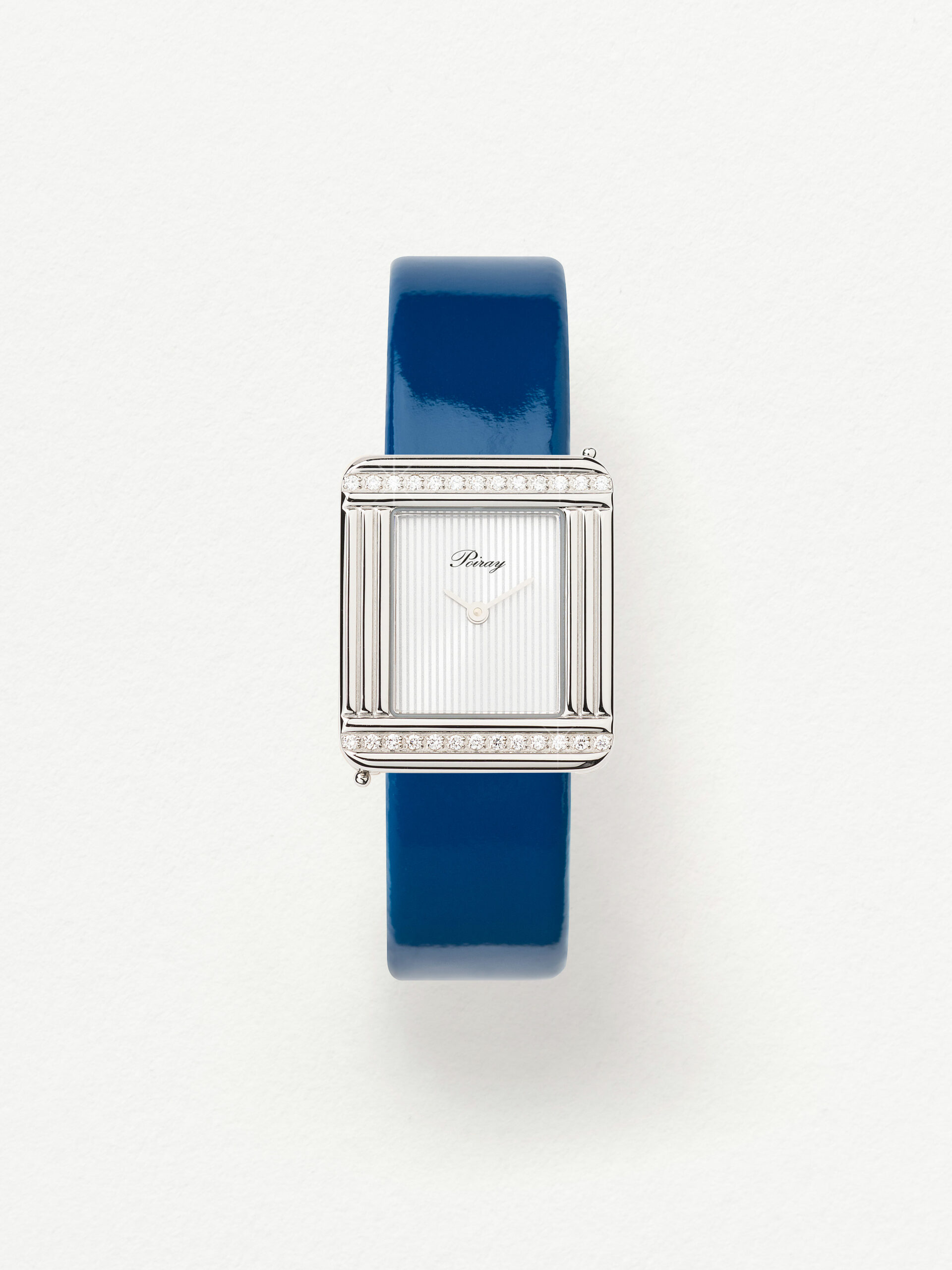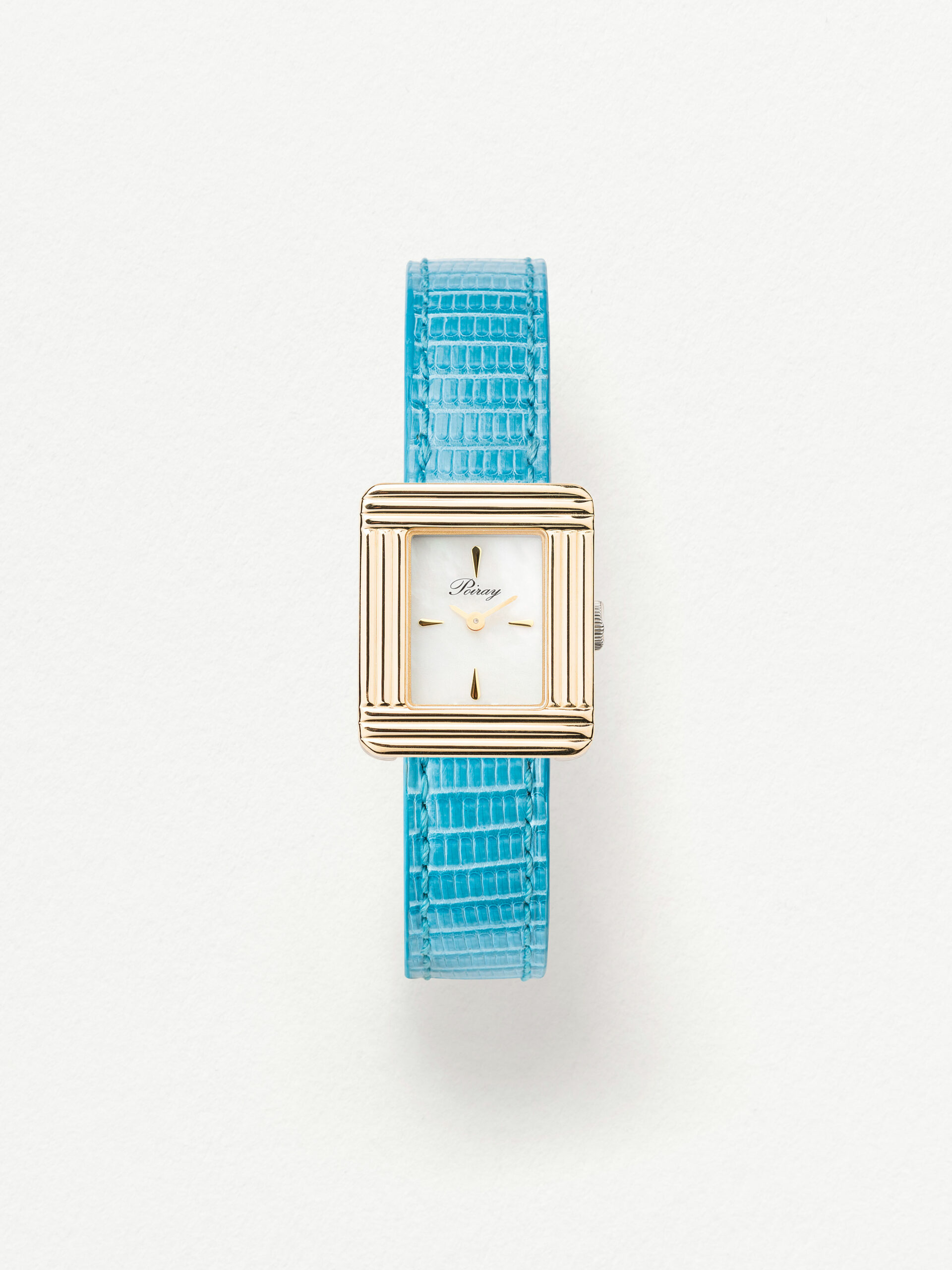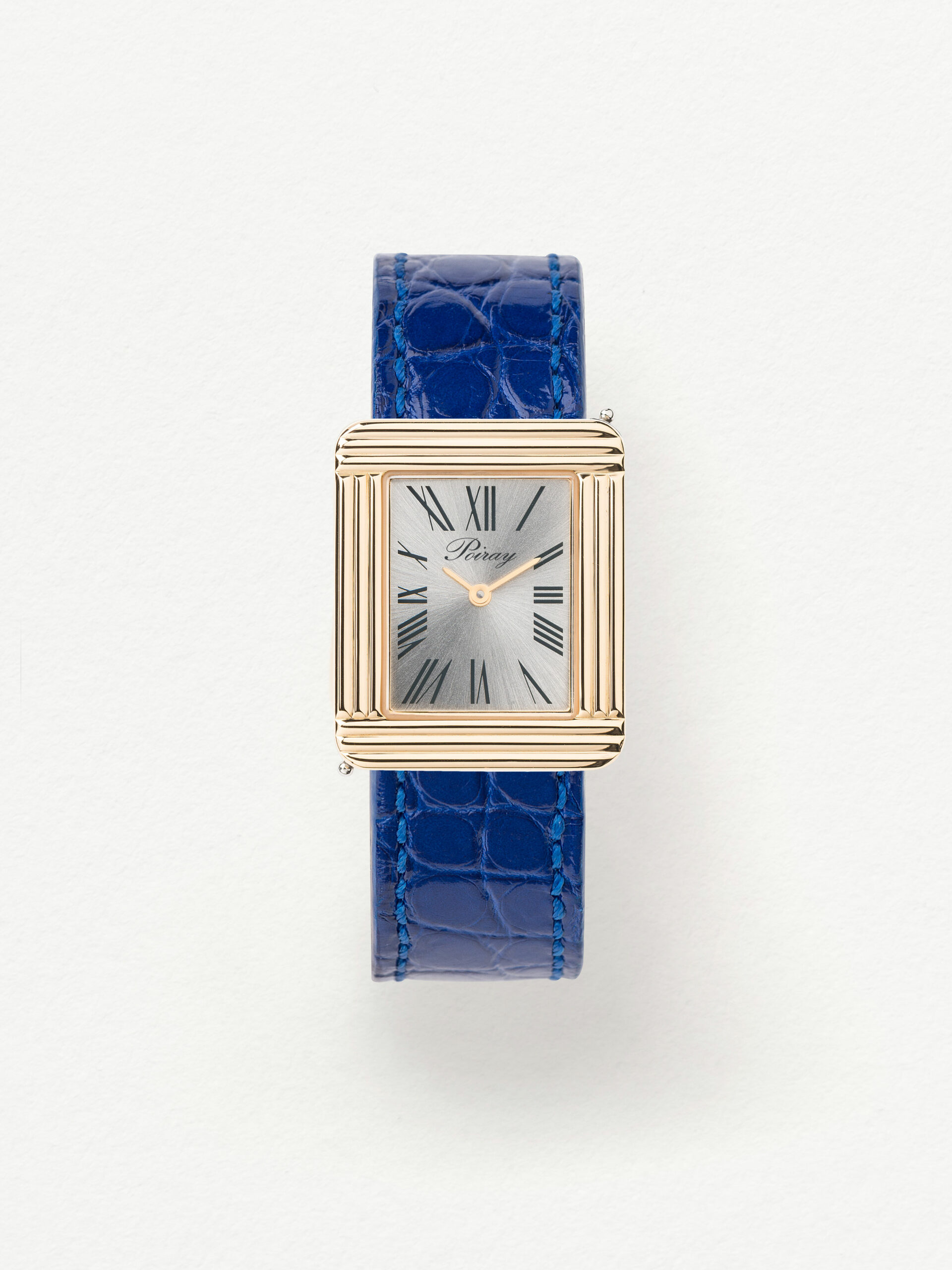 The Poiray watch collection is a masterpiece of refinement and ingenuity. The iconic “Ma Première” watch is a true jewel of technology, with its unique ratchet opening system that allows the wearer to change bracelets as they please. And what a range of choices! From the turquoise lizard bracelet for a touch of exoticism, to the royal blue alligator bracelet for a more royal look, to the azure blue patent calfskin bracelet for a more sophisticated look, there is something for every taste and every occasion.
