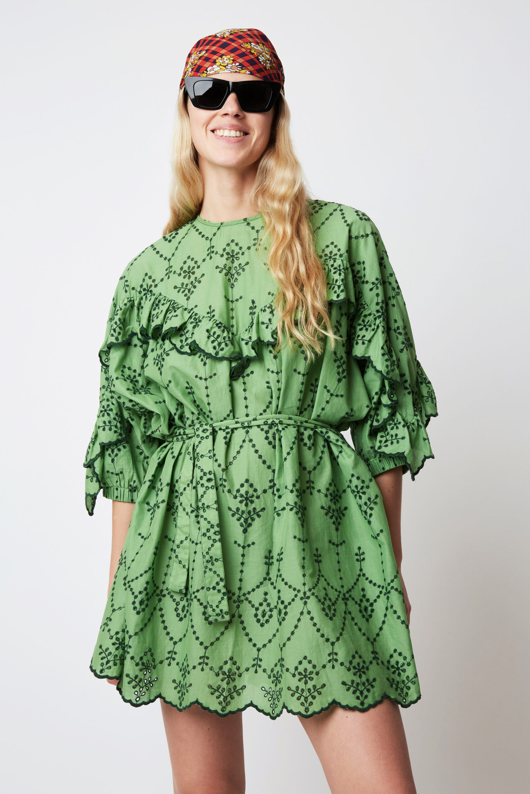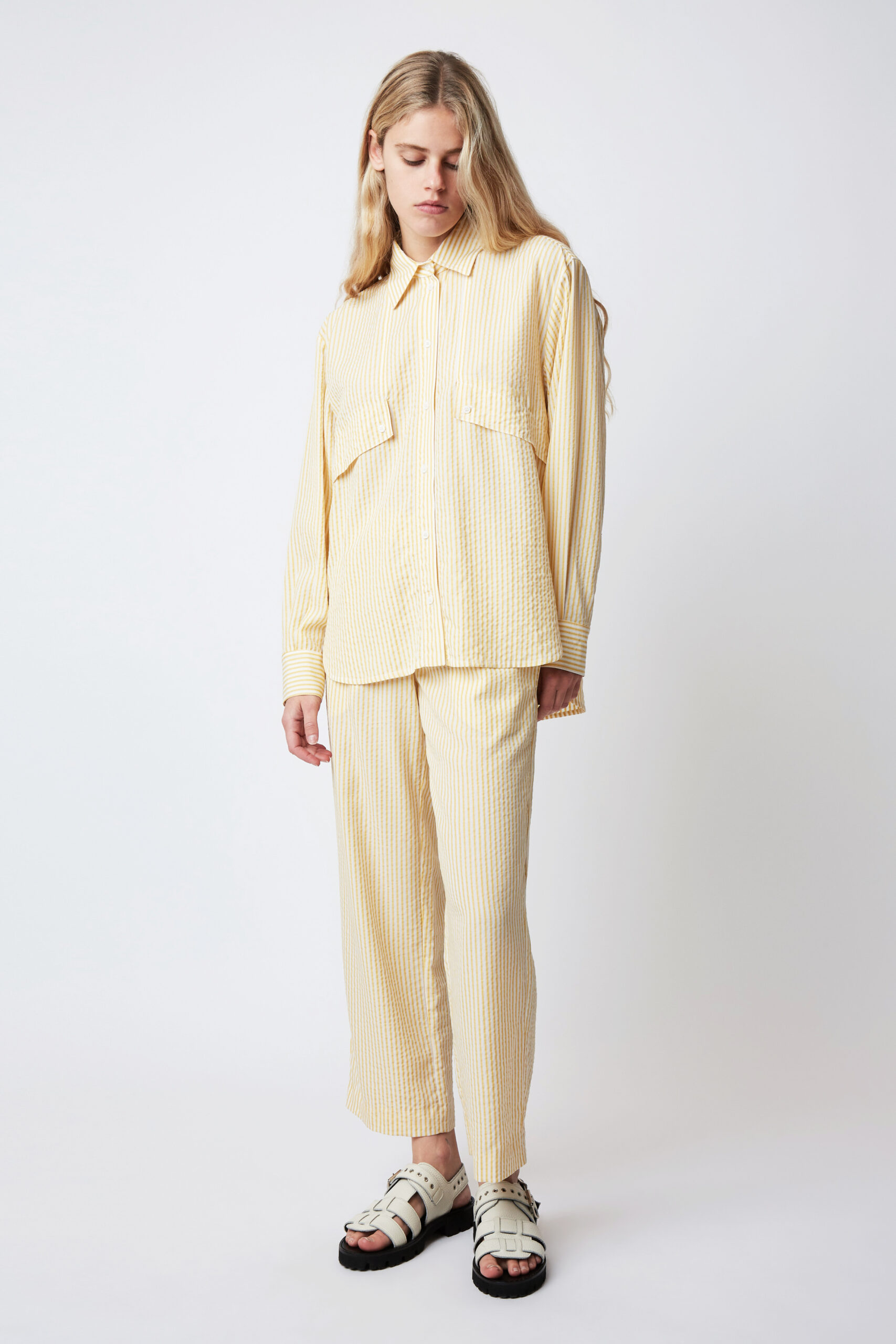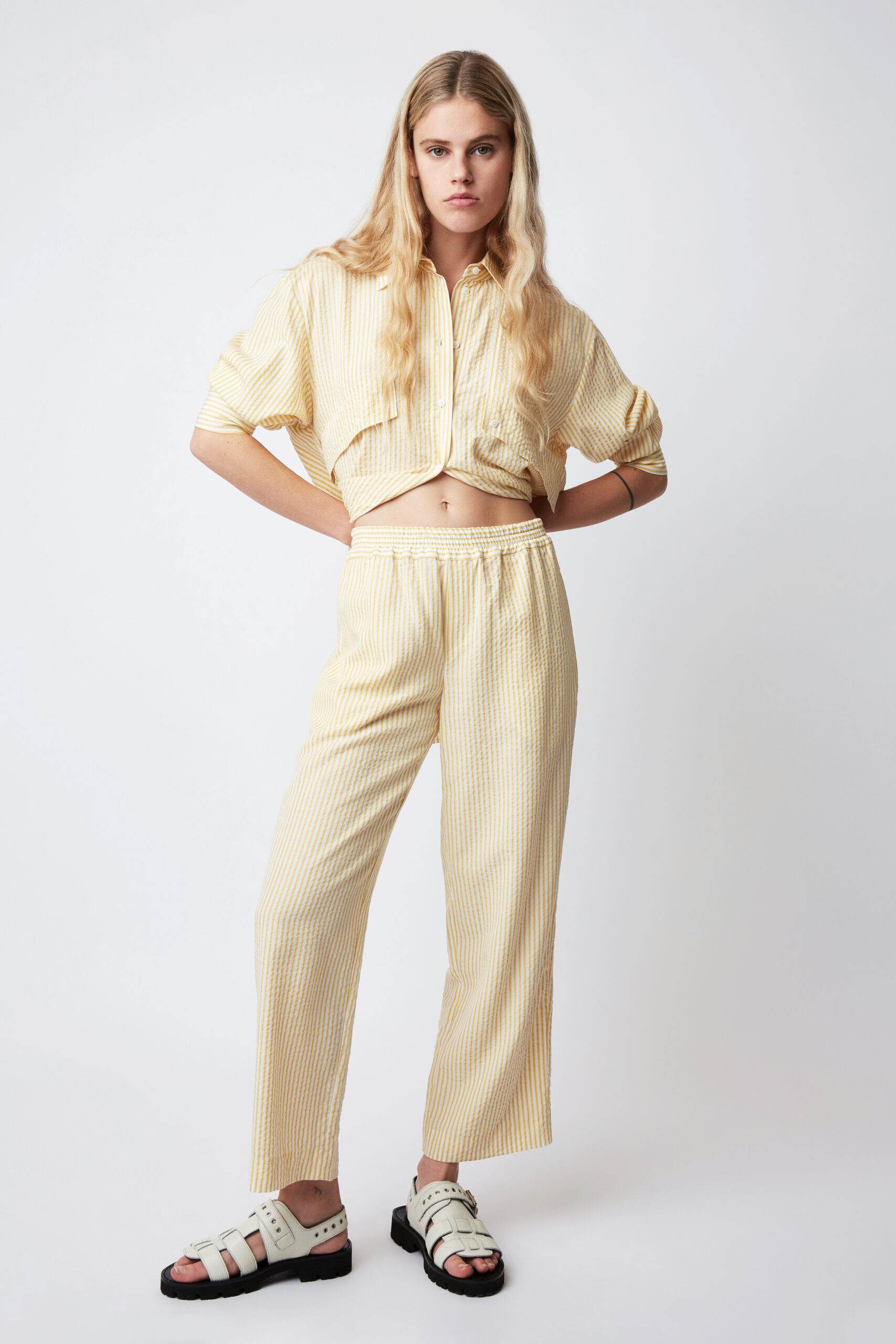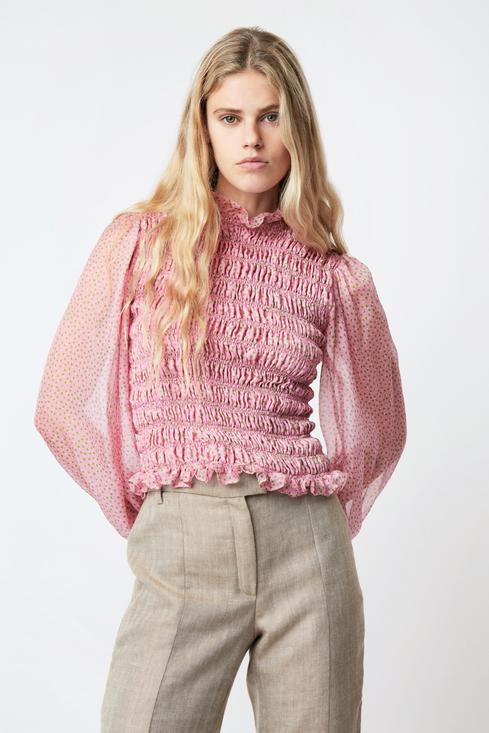 Tart & powdery pink, vanilla, meadow green, banana & imperial yellow combine with classic sea blue, denim, ecru, olive, caramel and a few touches of patent black and technical polka dots.
