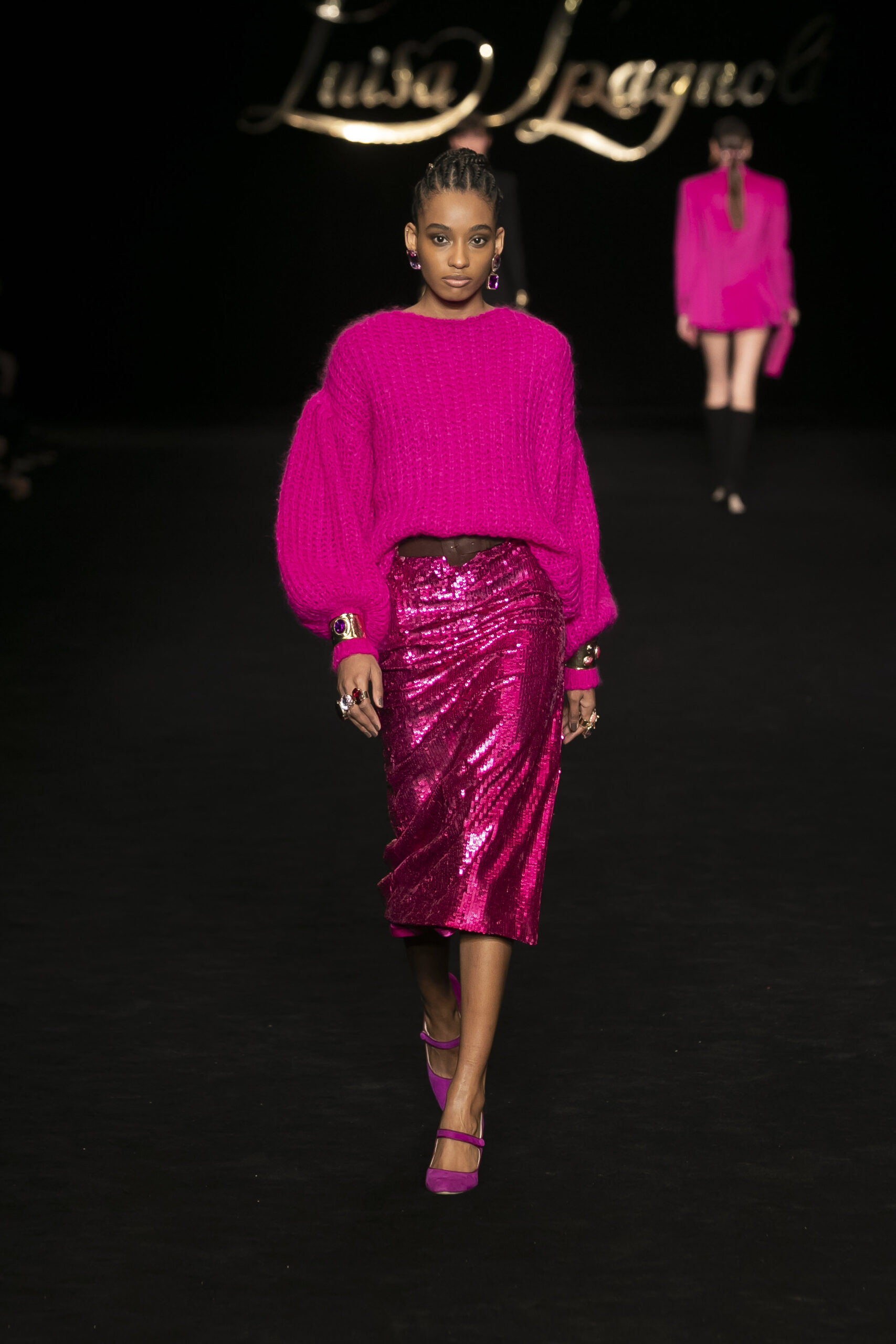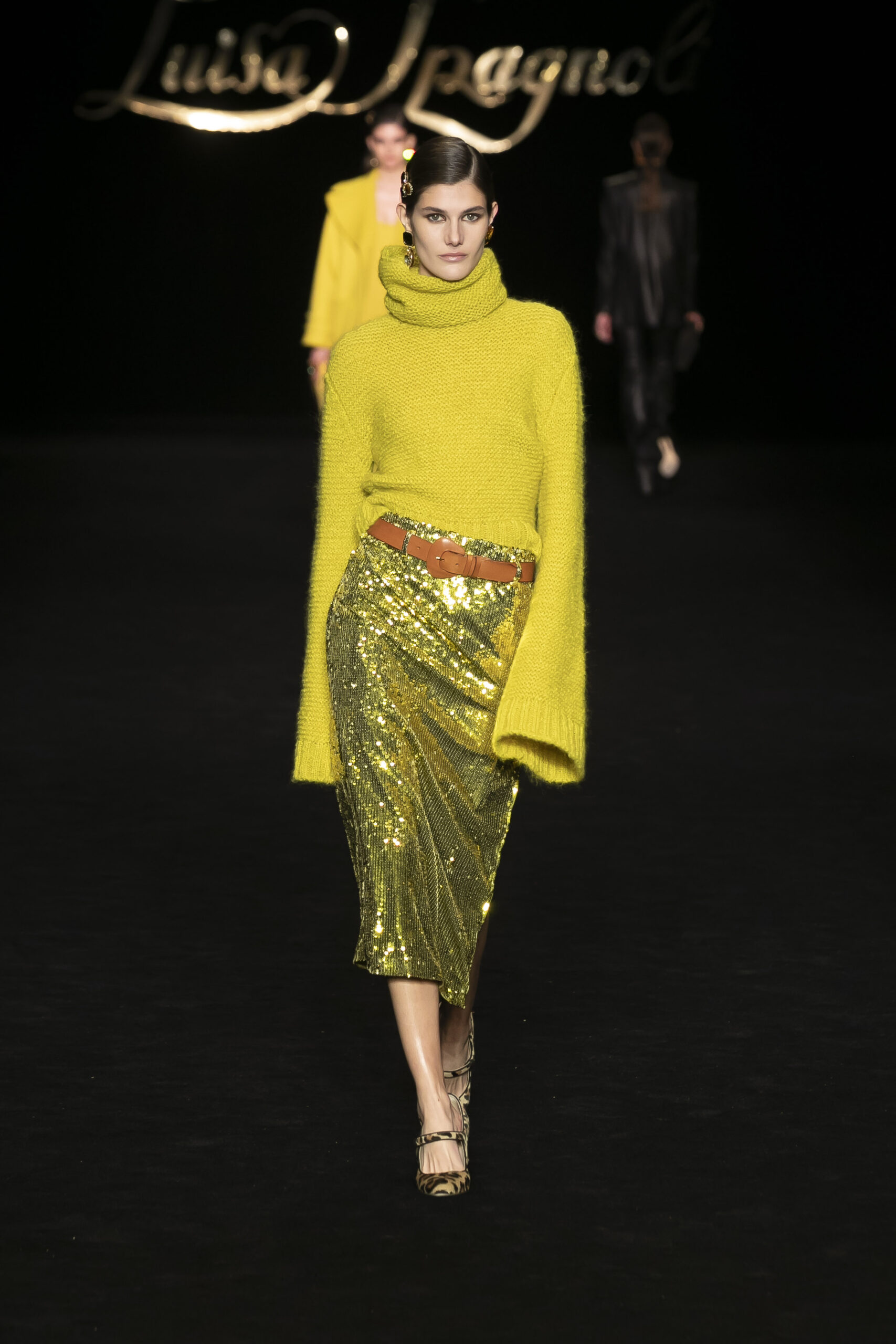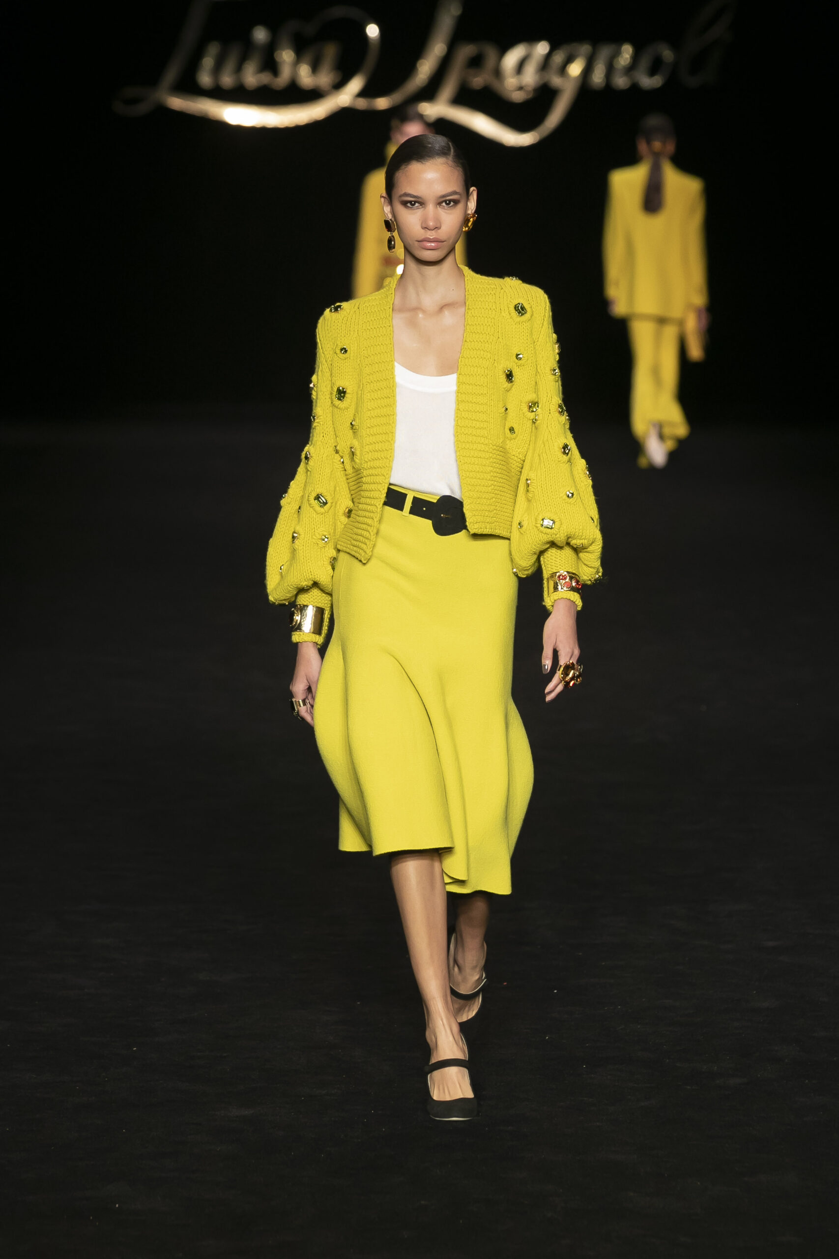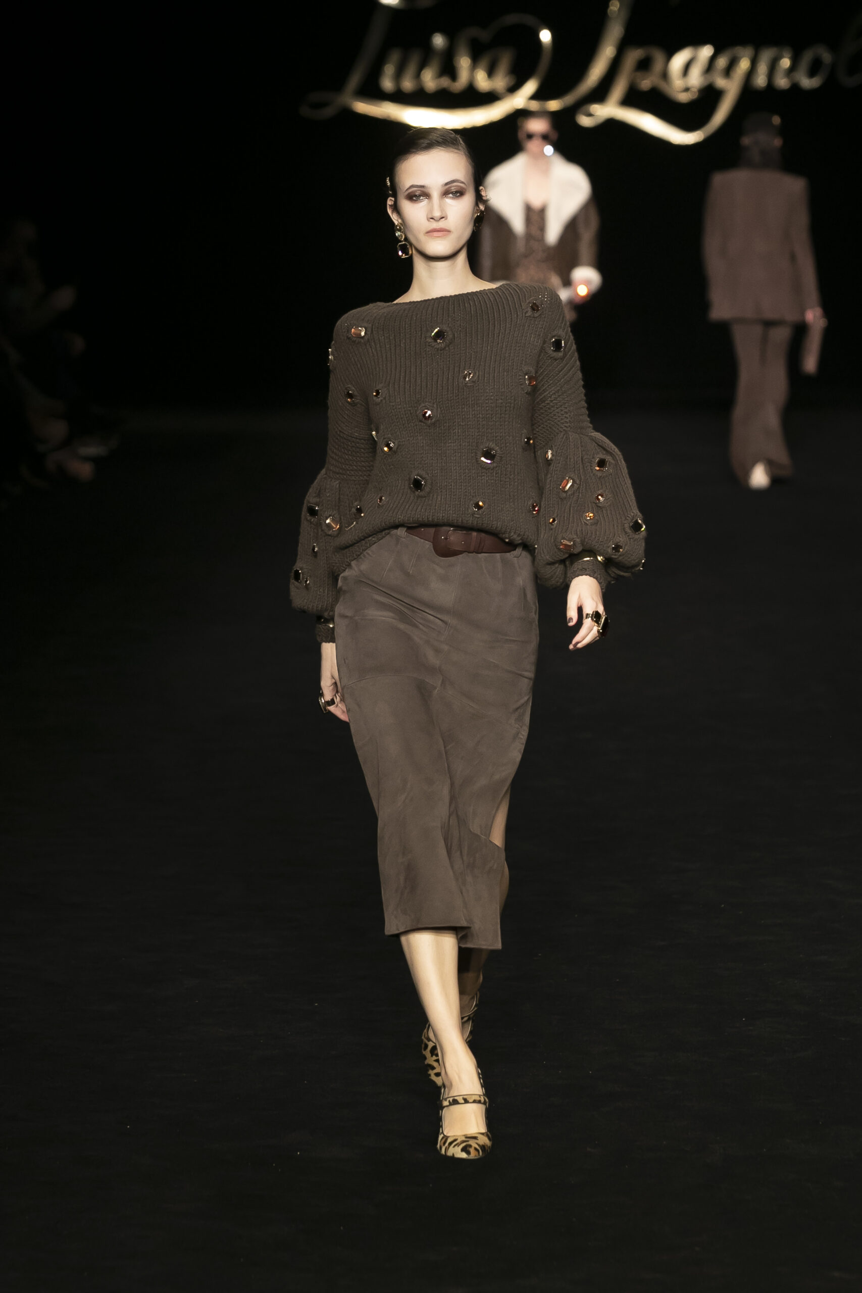 Counterpointing the neat and polished look, knitwear steals the spotlight for its tactile quality, best telegraphing Luisa Spagnoliโs know-how and craftsmanship.