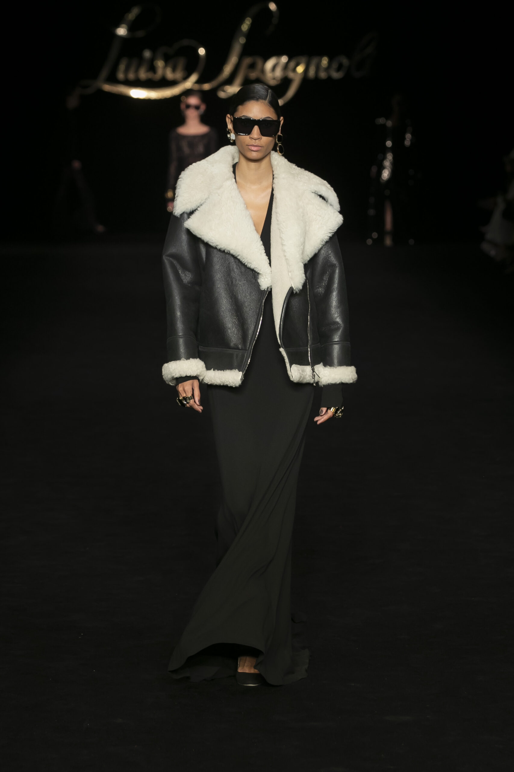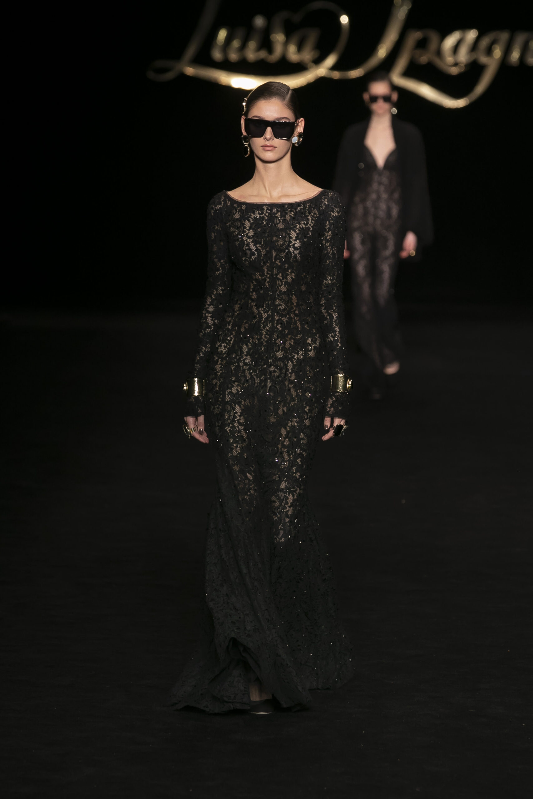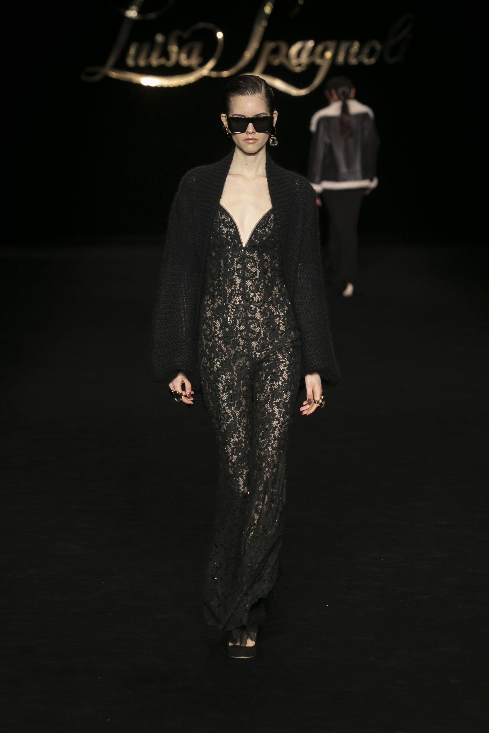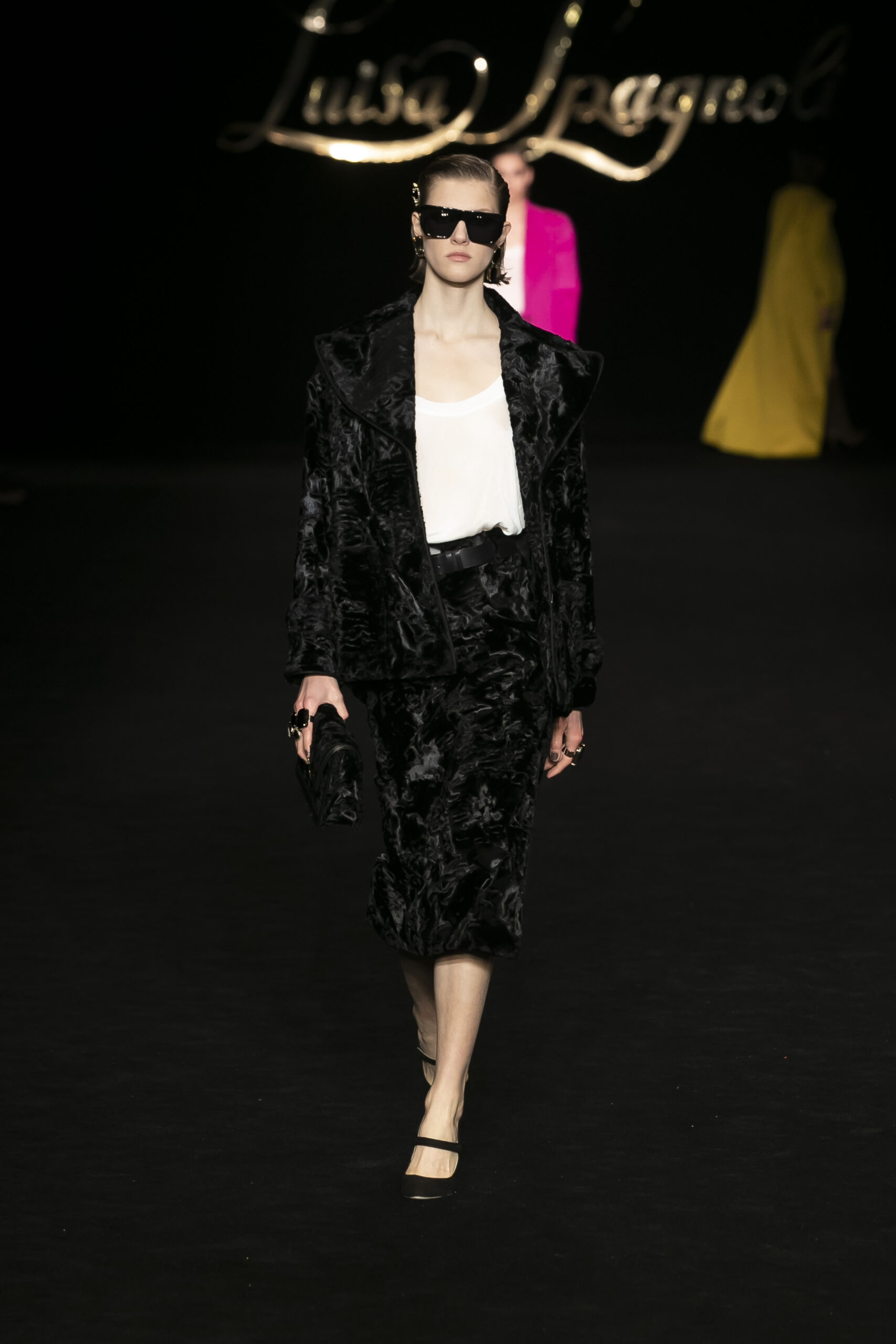 Nocturnal creatures embedding their love for polished dressing into their wardrobes, Luisa Spagnoliโs muses are characterized by a dash of mischievous mystery as they trade the all-black runway at the Scuola Militare Teuliรฉ during Milan Fashion Week.